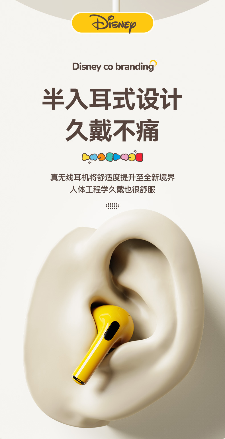 디즈니 만화 블루투스 이어폰 K26 반인이어형 소음 감소 긴 배터리 수명 귀여운 미니 트렌디 IP 콜라보레이션