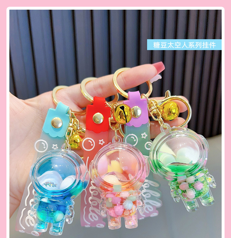 오일 액체 퀵 샌드 병 키 체인 귀여운 젤리 빈 거품 구슬 우주 비행사 자동차 키 펜던트 도매의 조합스토어 가기