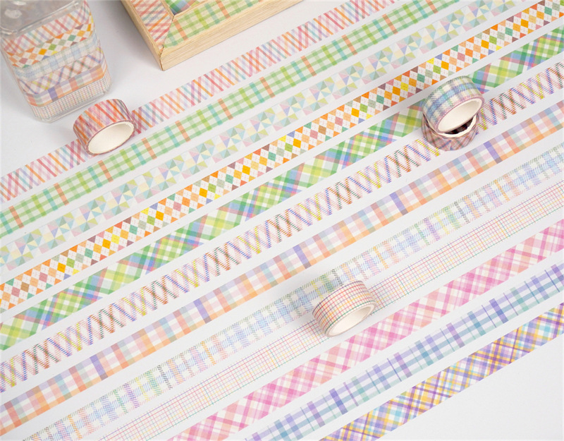 국경 도매 격자 무늬 테이프 12 롤 diy 장식 손 계정 테이프 국경 도매 및 종이 테이프스토어 가기