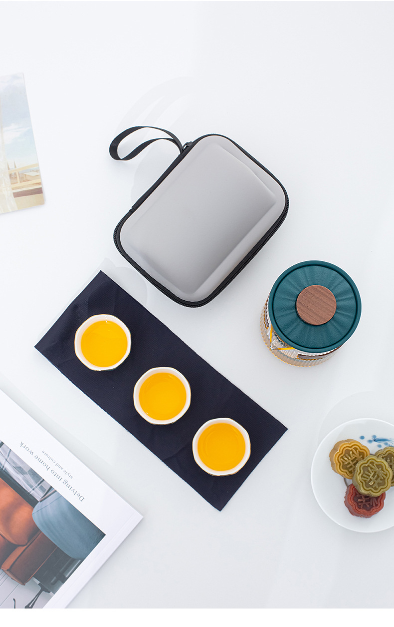 Yuxuan 휴대용 여행 차 세트 픽업 야외 가방 휴대용 쿵푸 주전자 찻잔 간단한 여행 익스프레스 컵