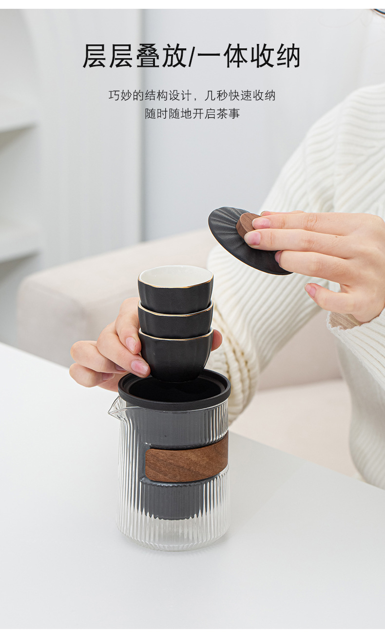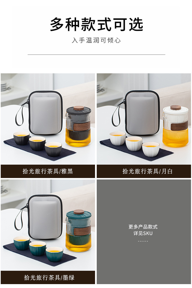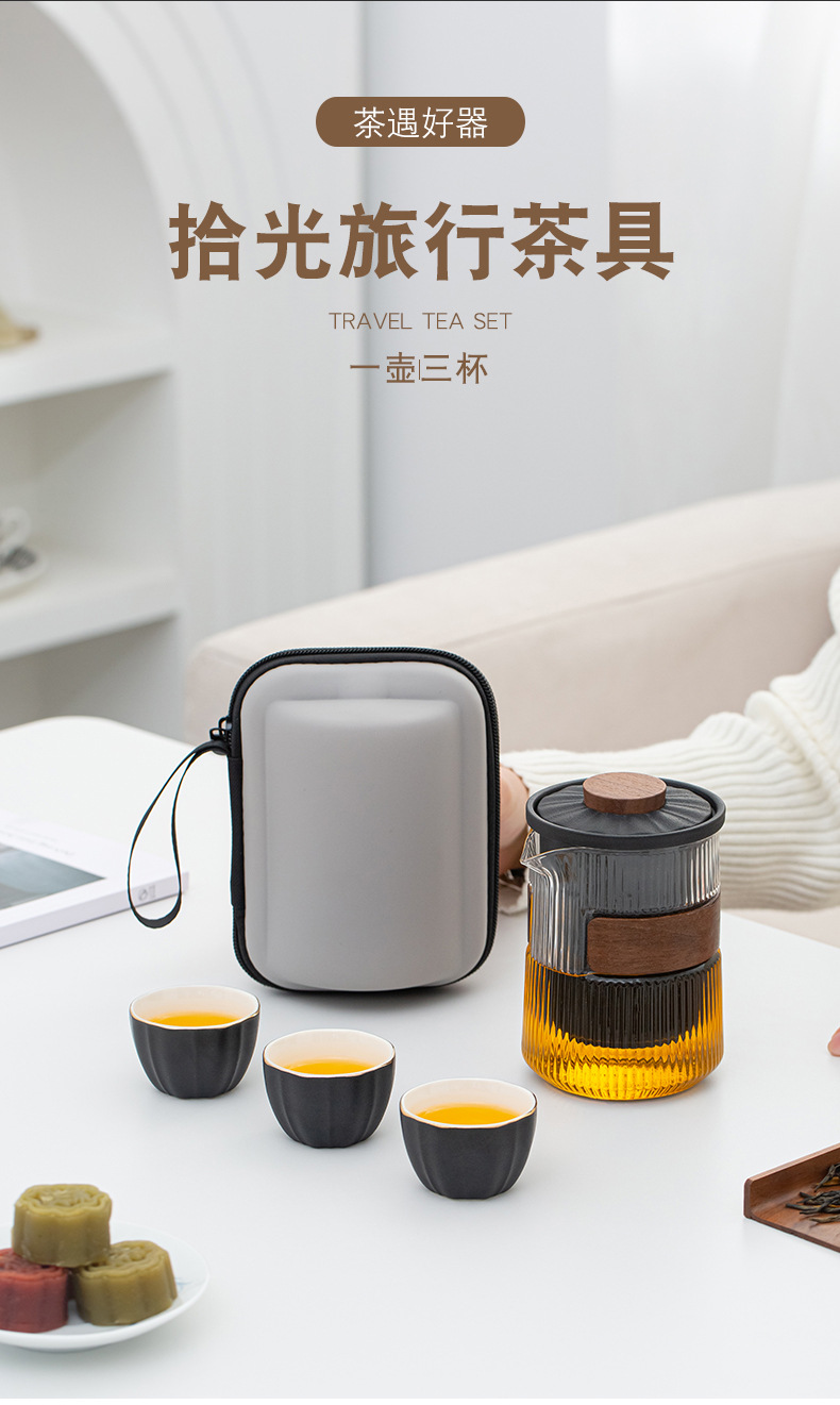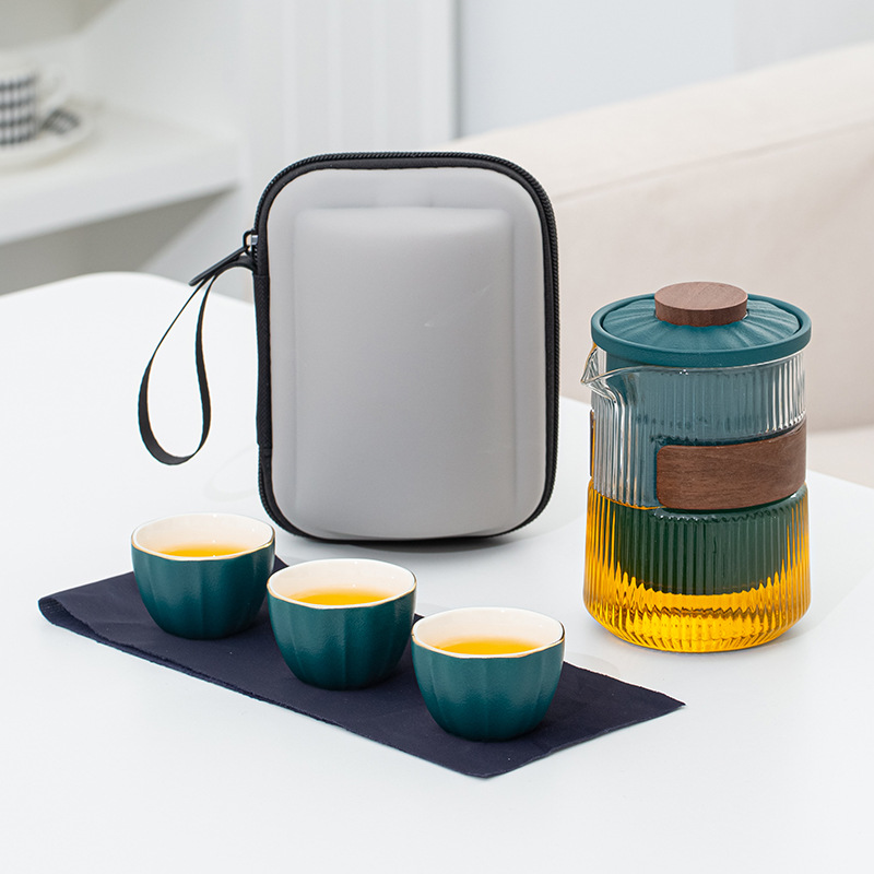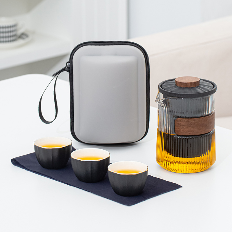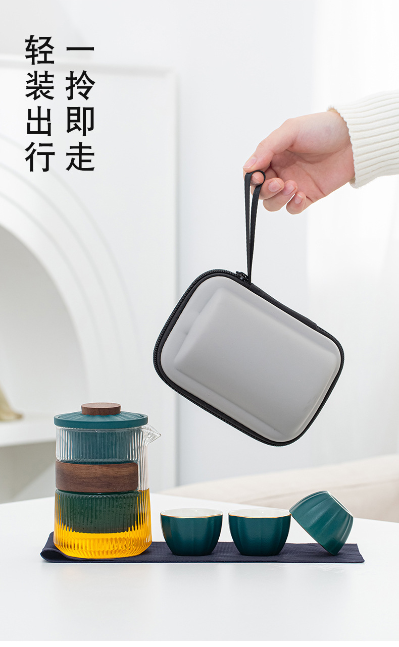 Yuxuan 휴대용 여행 차 세트 픽업 야외 가방 휴대용 쿵푸 주전자 찻잔 간단한 여행 익스프레스 컵스토어 가기