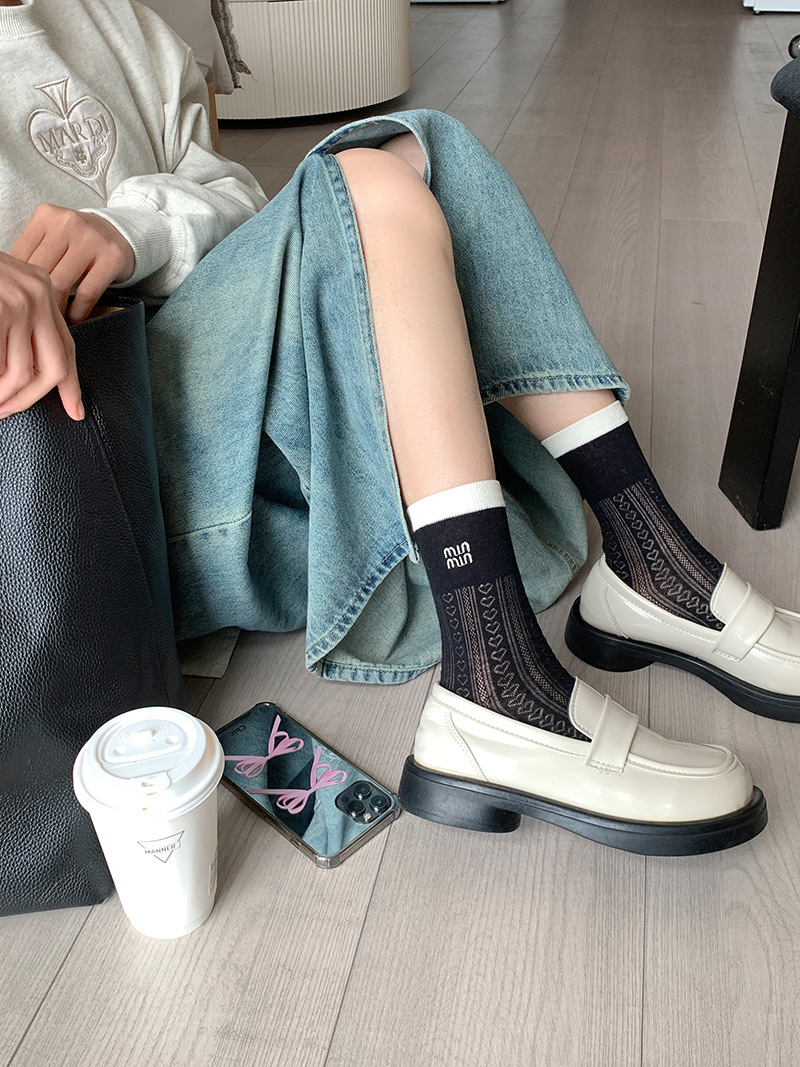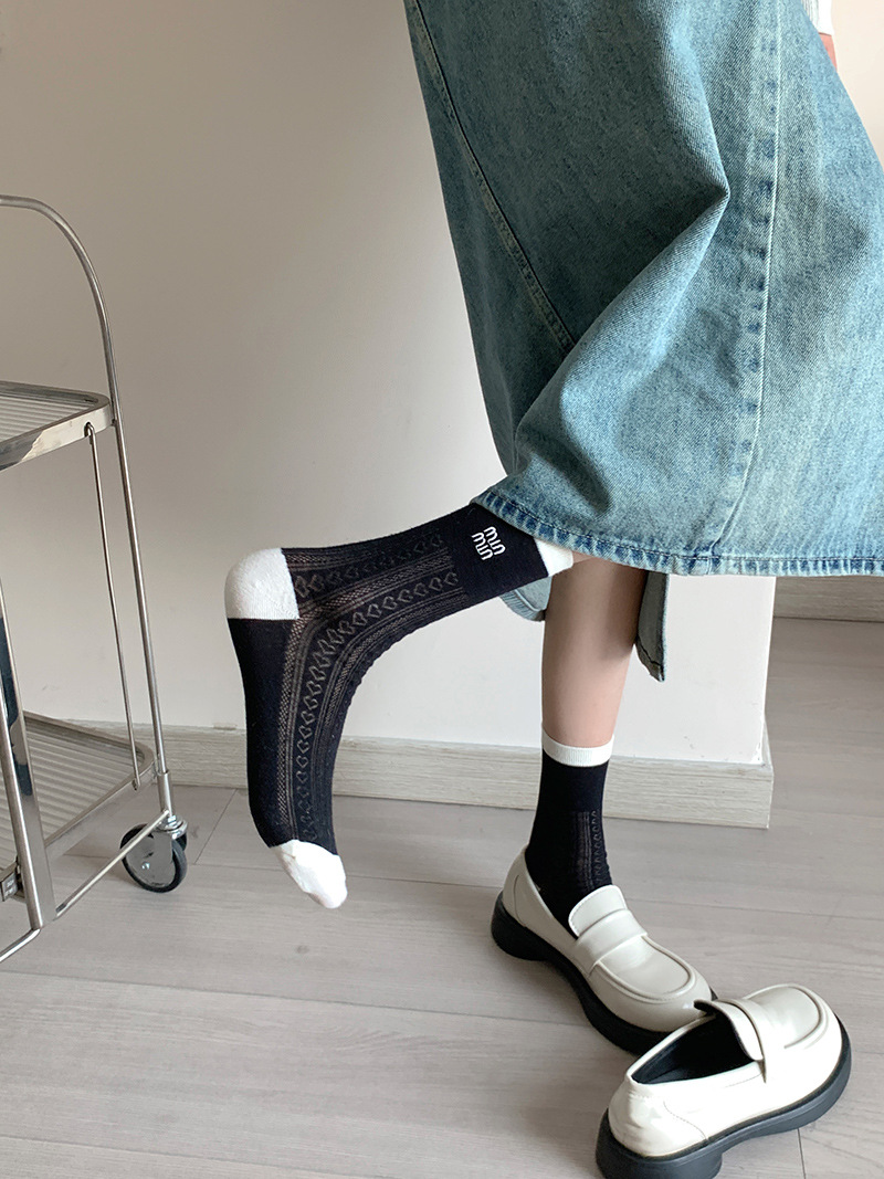 밝은 성숙한 바람 m 수 놓은 얇은 양말 사랑 면 양말 중간 튜브 양말 흑백 대비 컬러 유행 양말 봄과 여름스토어 가기