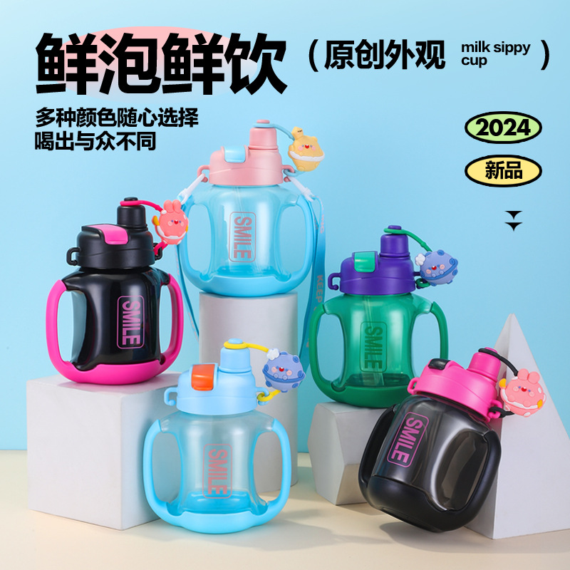 큰 용량 1000ml 스포츠 물병 핸들 물 컵 높은 색상 가치 높은 온도 저항하는 학생 여름 휴대용 주전자스토어 가기