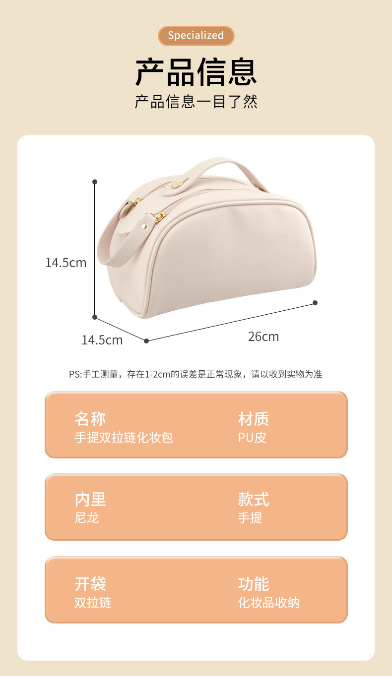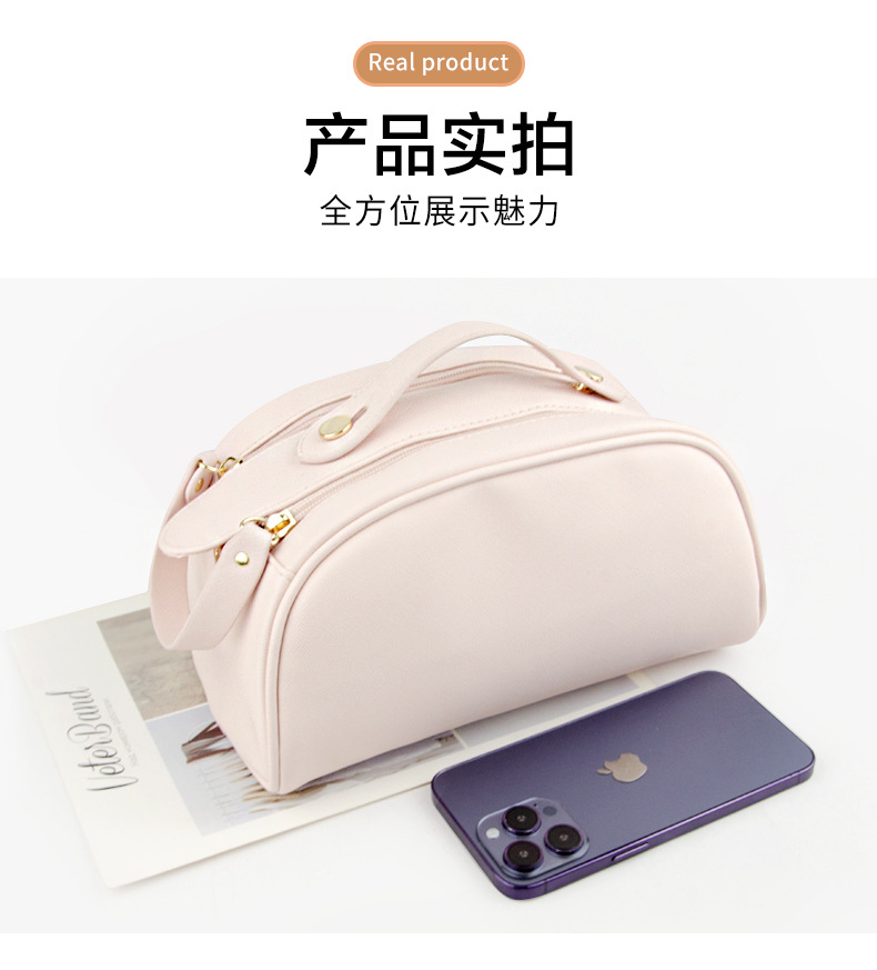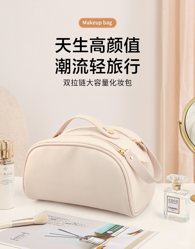 高颜值双拉链枕头化妆包便携防水大容量手提旅行护肤品洗漱收纳包