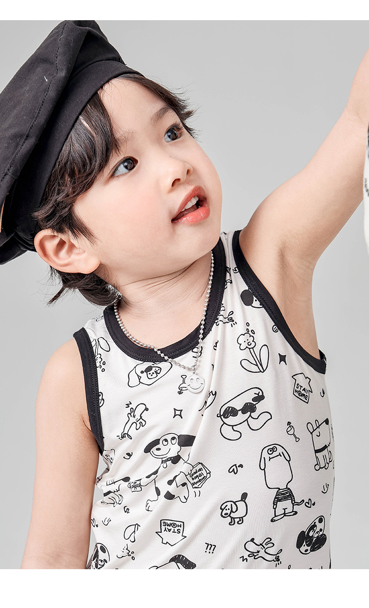 J133 디자이너 여름 야세르 소년 민소매 조끼 만화 개 홈 조끼 클래스 어린이 조끼스토어 가기