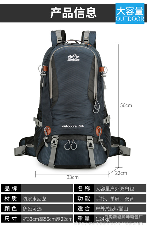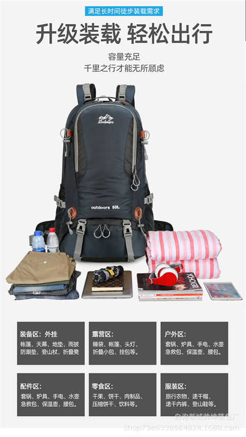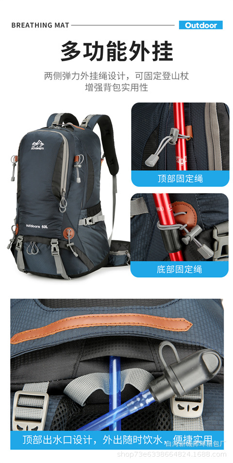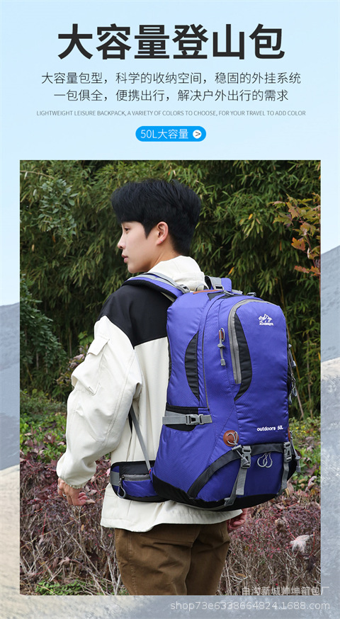 국경 50L 등산 가방 야외 배낭 스포츠 배낭 남성과 여성을위한 대용량 경량 하이킹 여행 가방스토어 가기