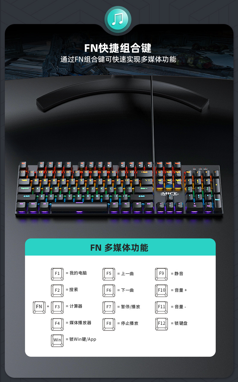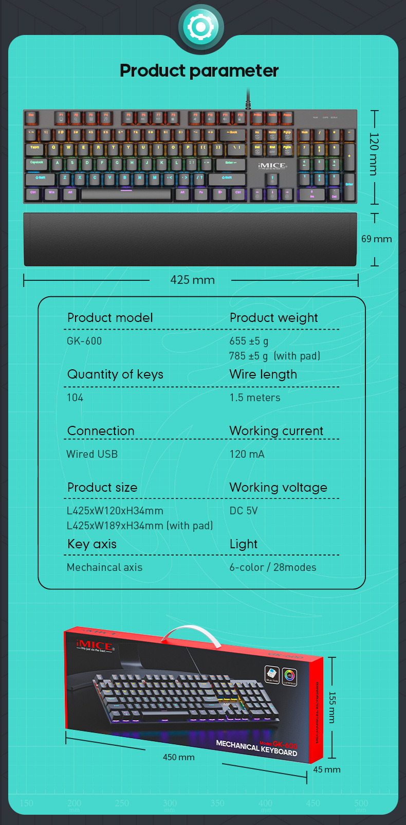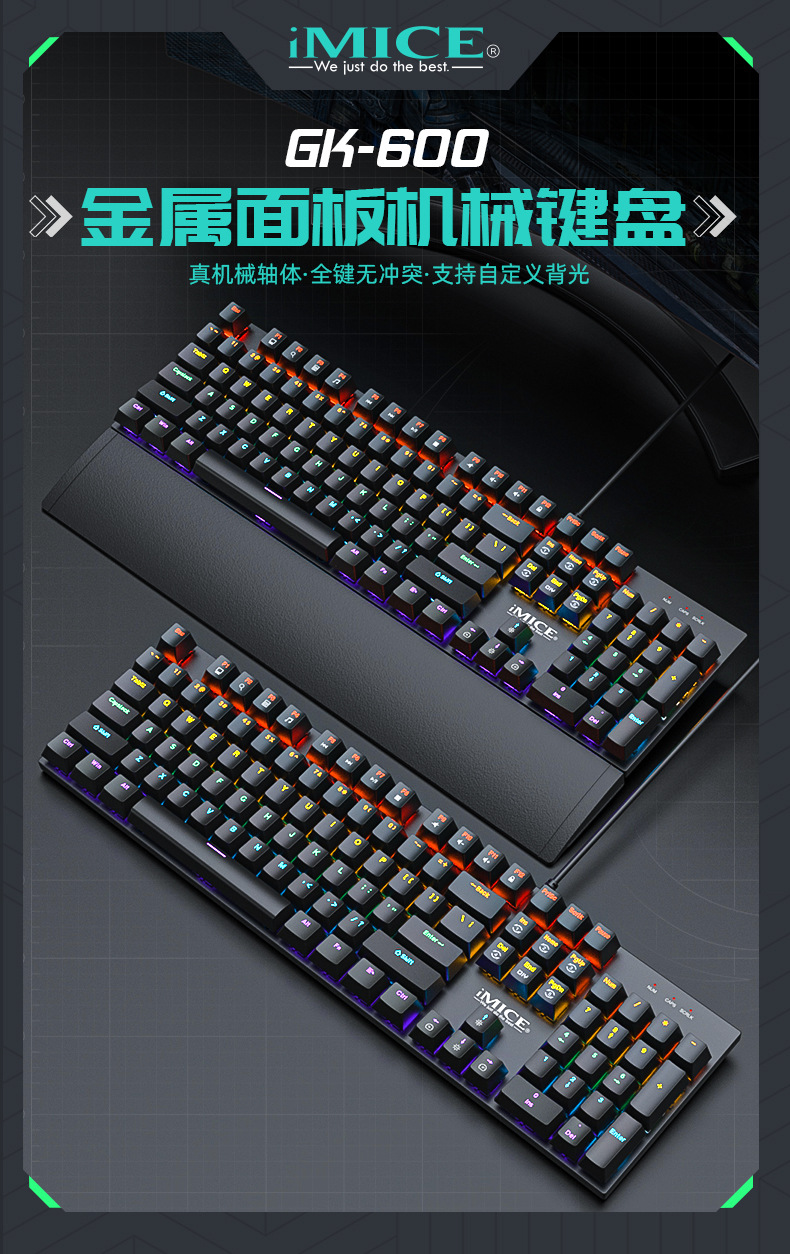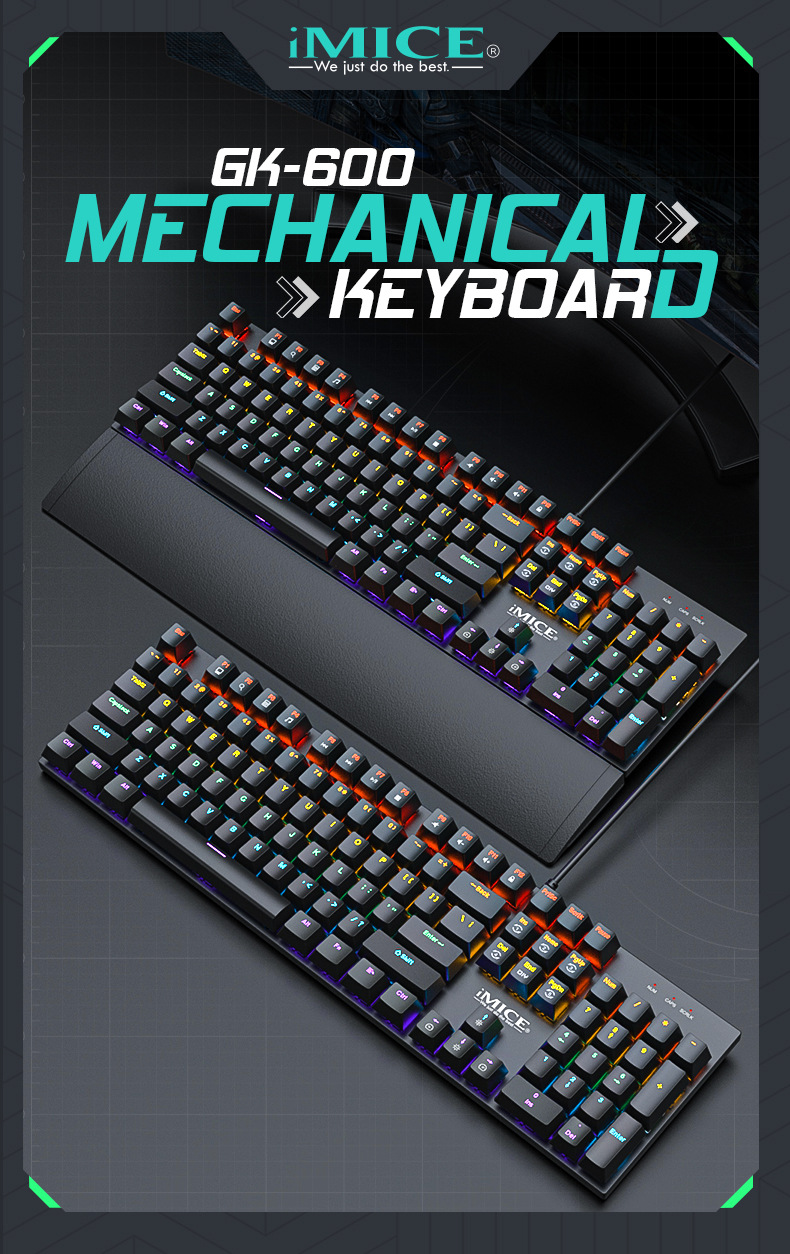 IMICE 브랜드 GK-600 유선 기계식 키보드 다채로운 발광 풀 키 무버버 104 키 105 키 빨간색 축스토어 가기