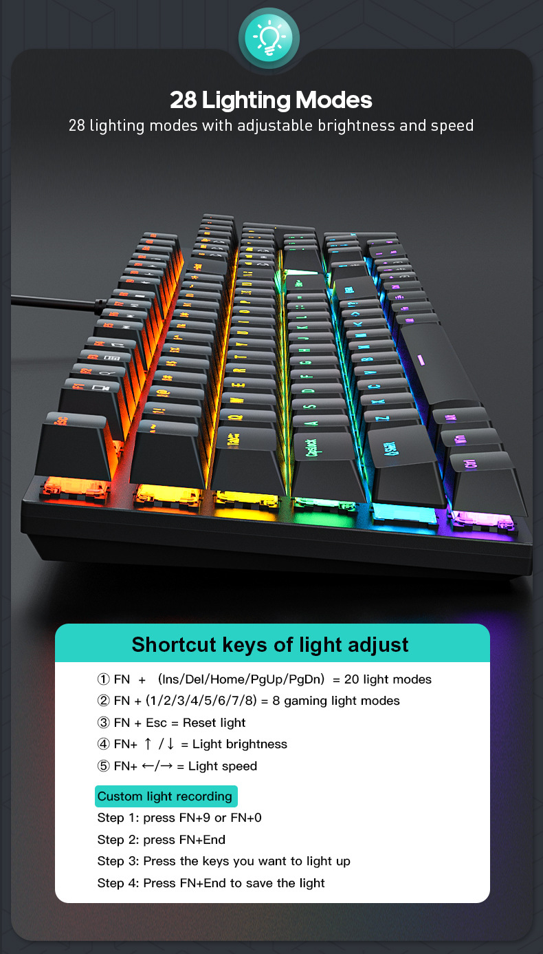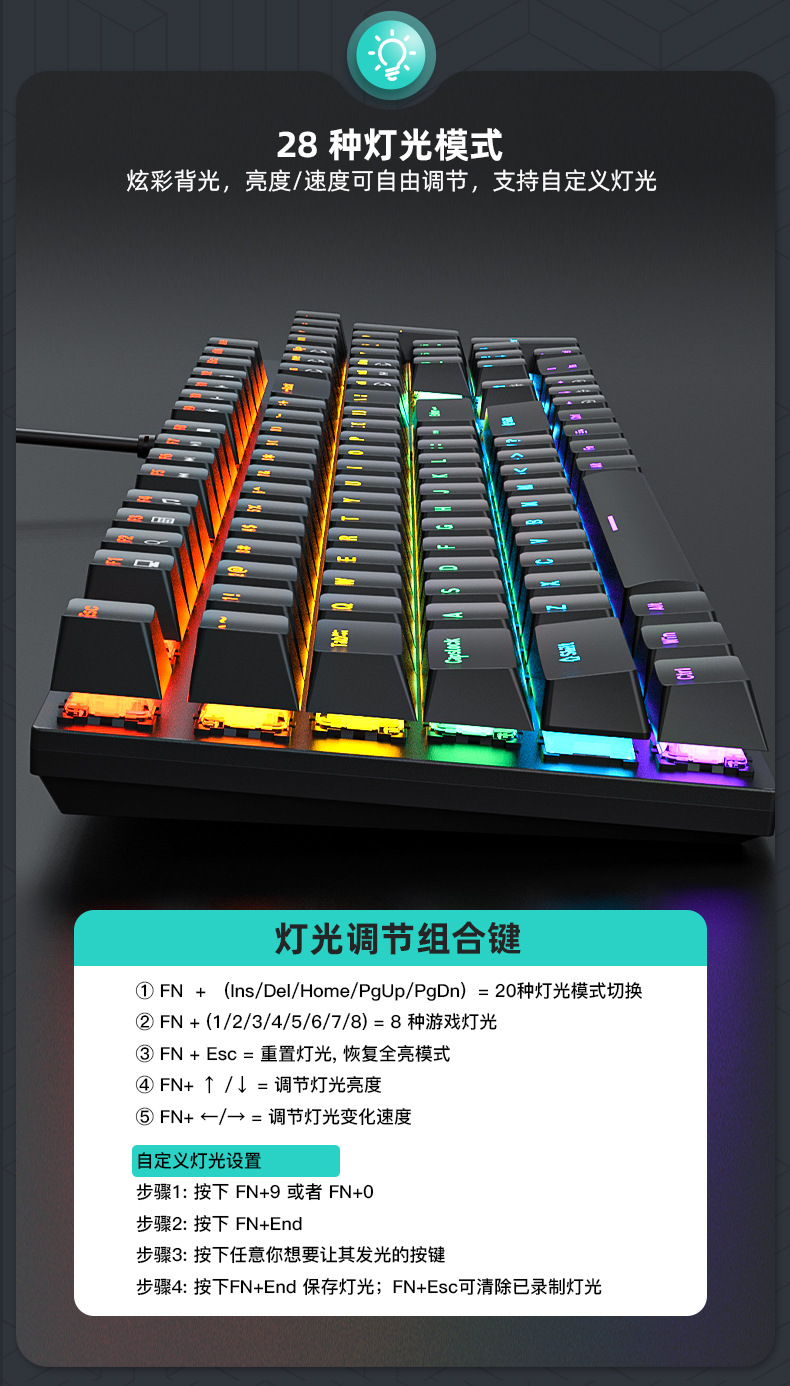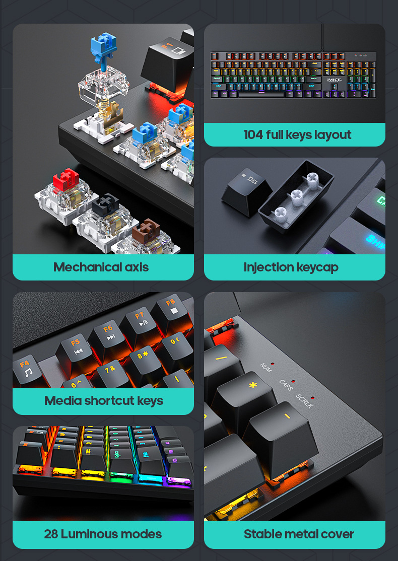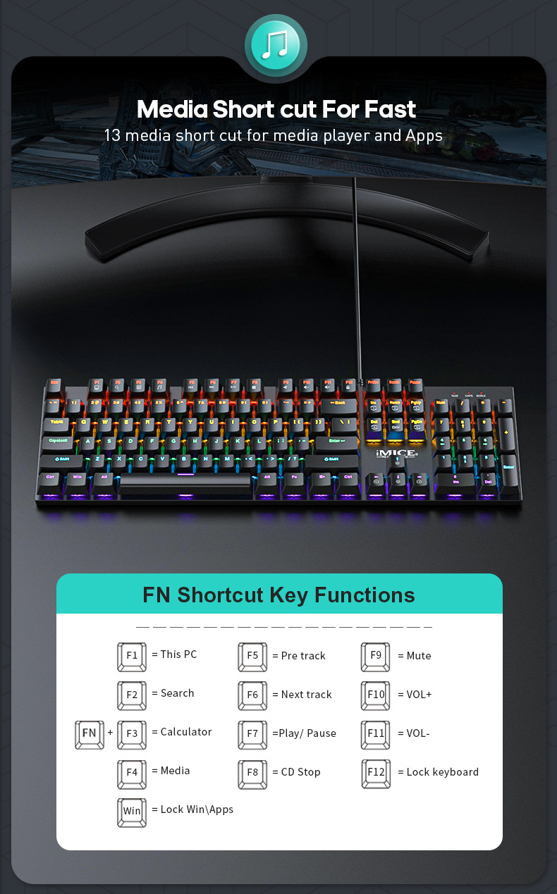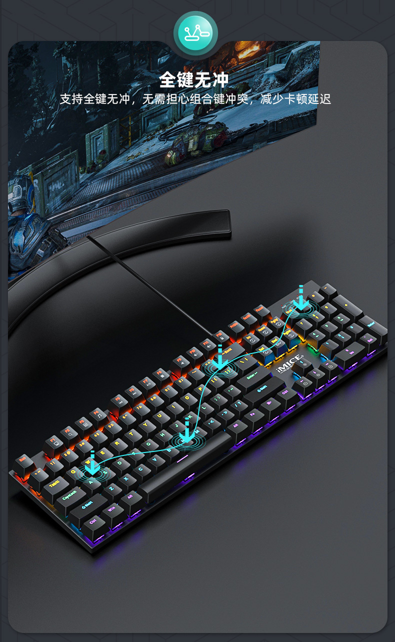 IMICE 브랜드 GK-600 유선 기계식 키보드 다채로운 발광 풀 키 무버버 104 키 105 키 빨간색 축스토어 가기