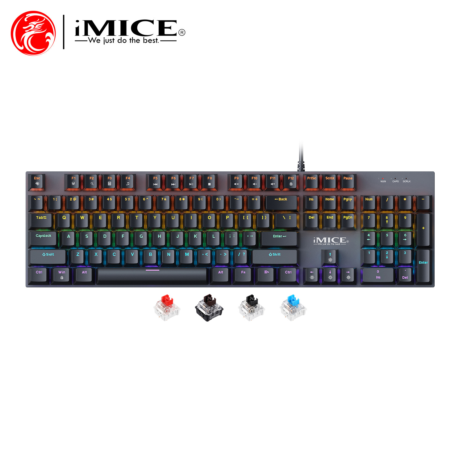 IMICE 브랜드 GK-600 유선 기계식 키보드 다채로운 발광 풀 키 무버버 104 키 105 키 빨간색 축