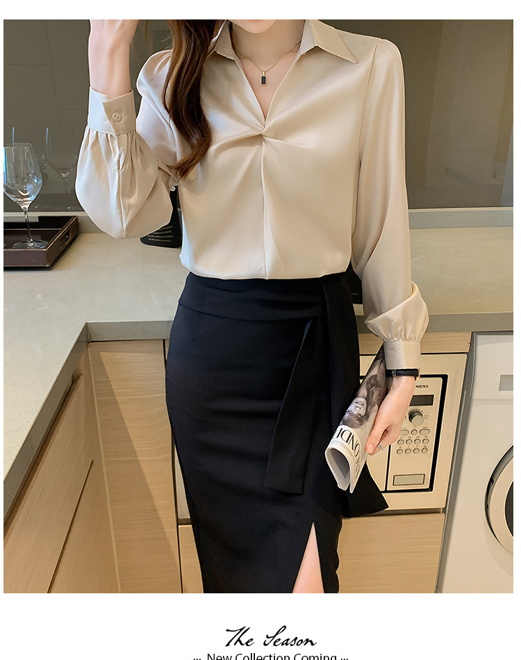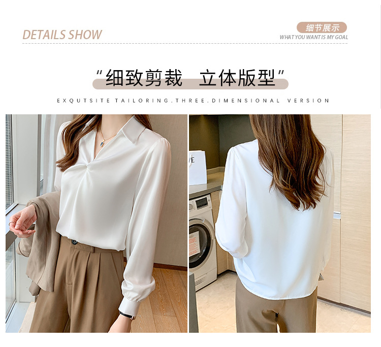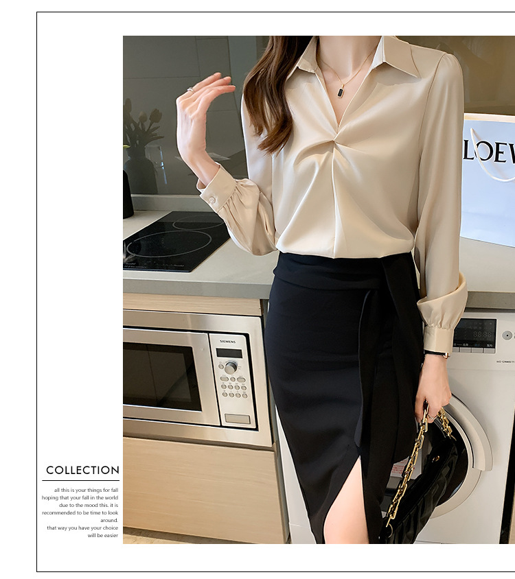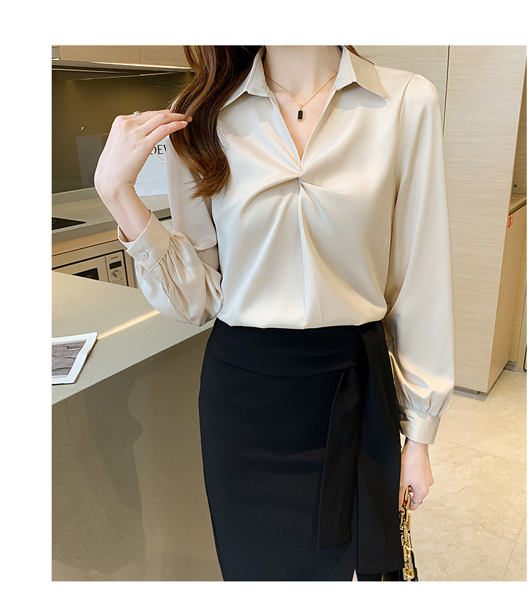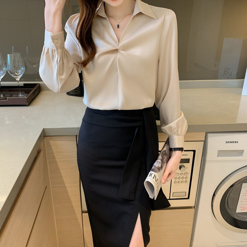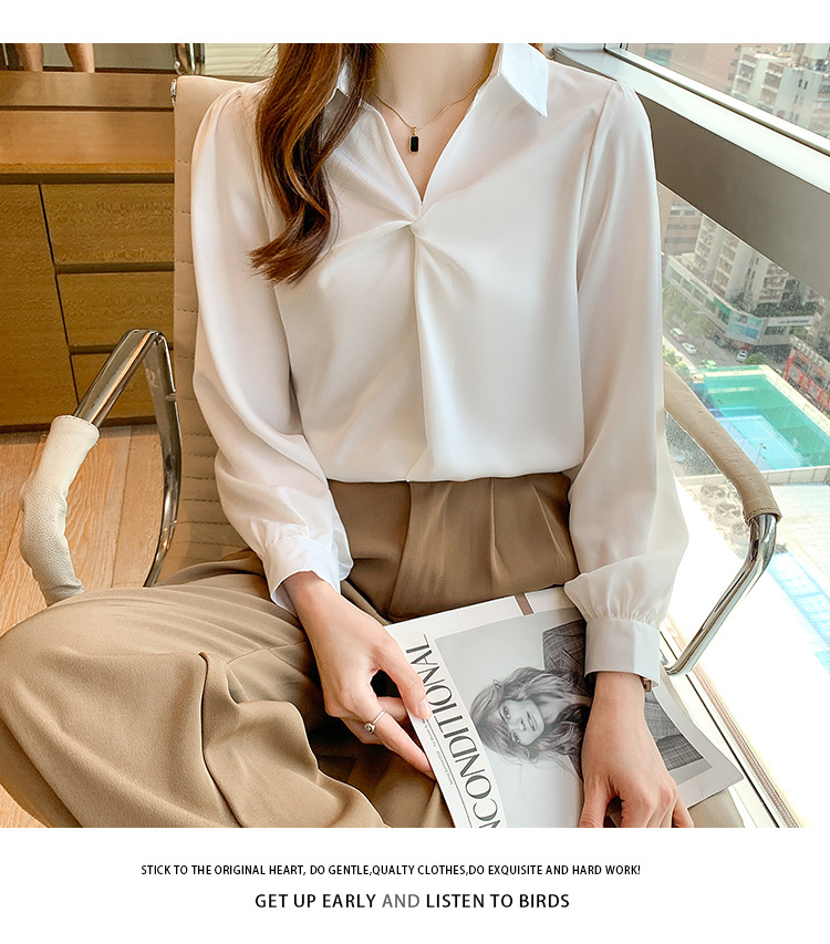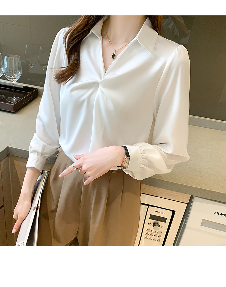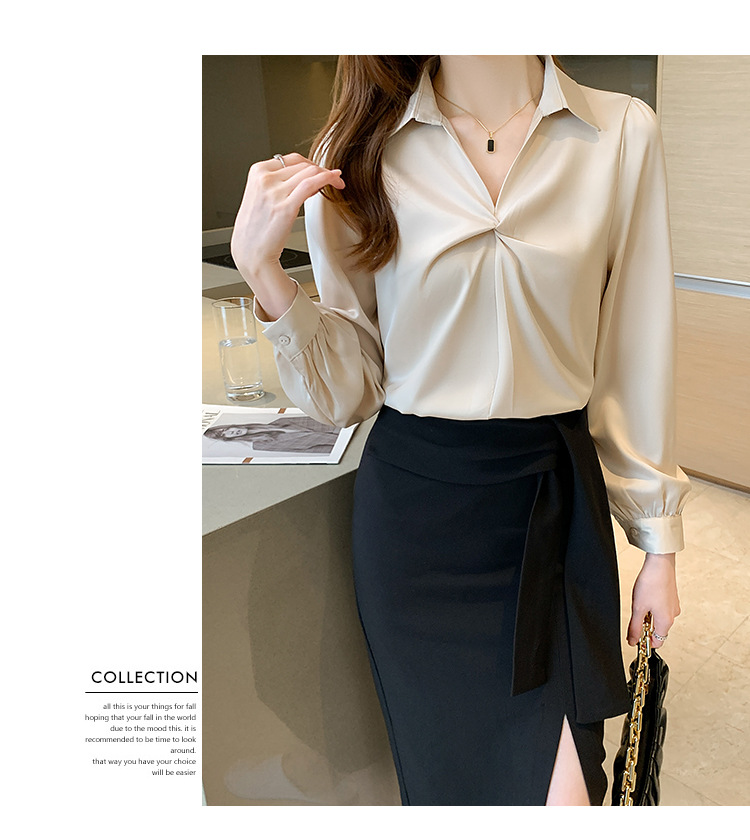2021 가을과 겨울 새로운 우아한 래핑 된 새틴 긴 소매 셔츠 패션 디자인 올 매치 여성스토어 가기