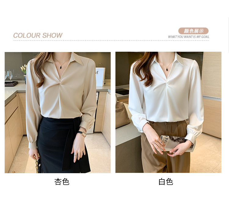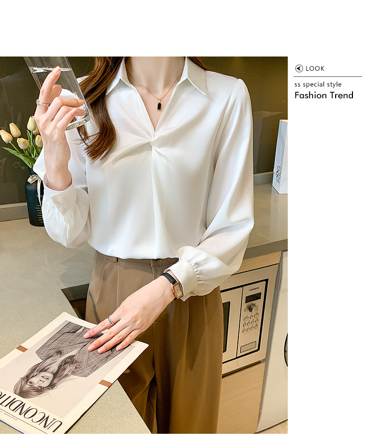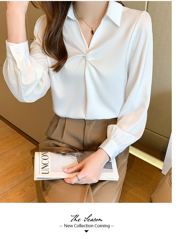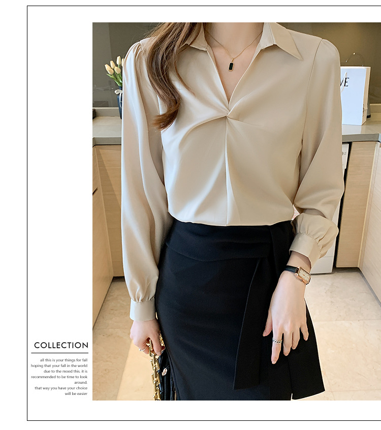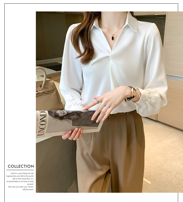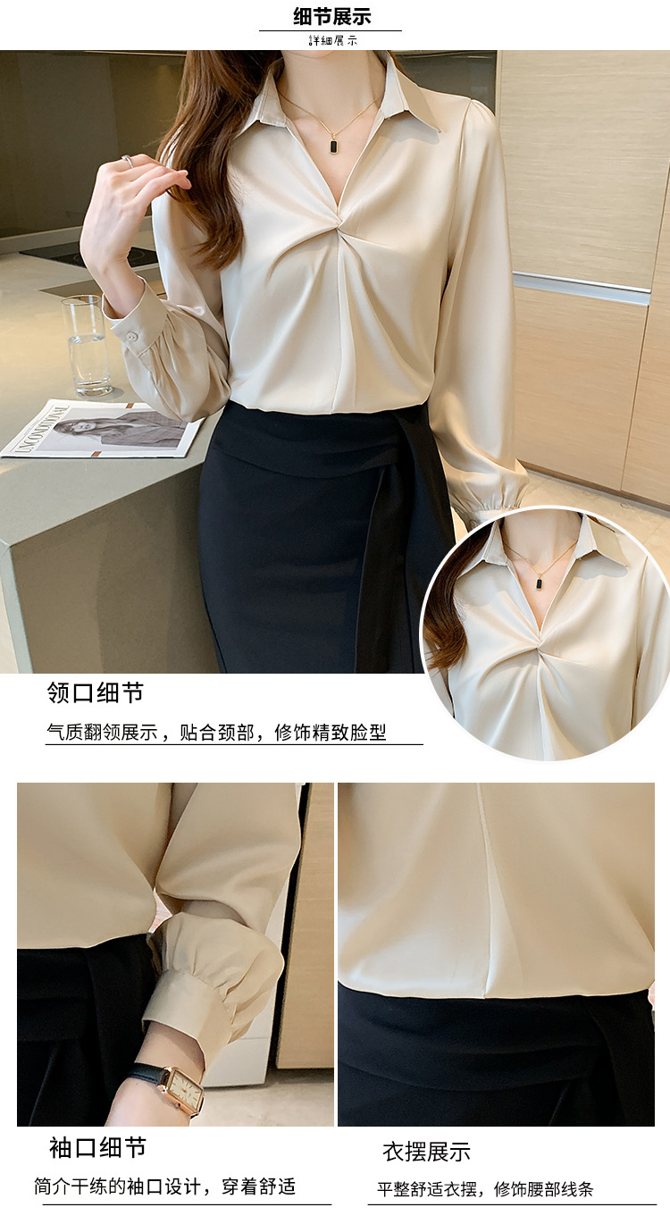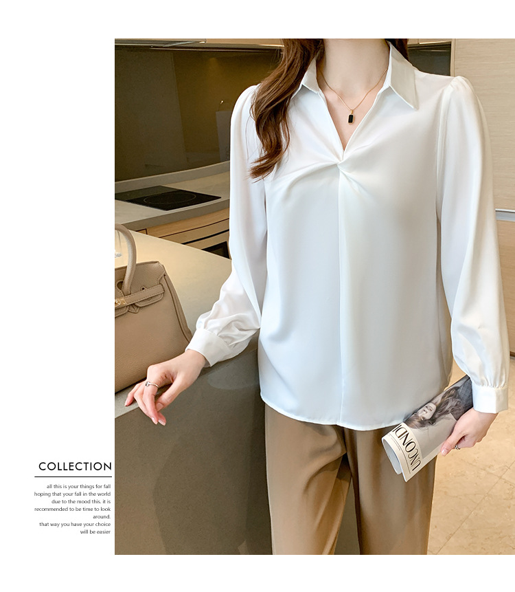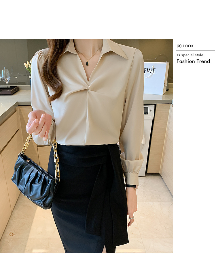 2021 가을과 겨울 새로운 우아한 래핑 된 새틴 긴 소매 셔츠 패션 디자인 올 매치 여성스토어 가기