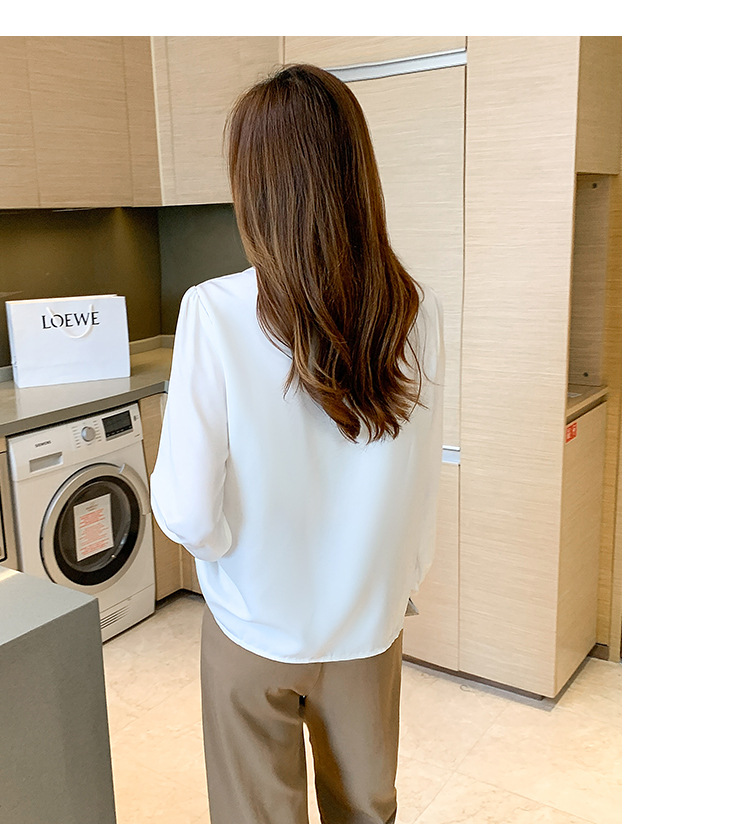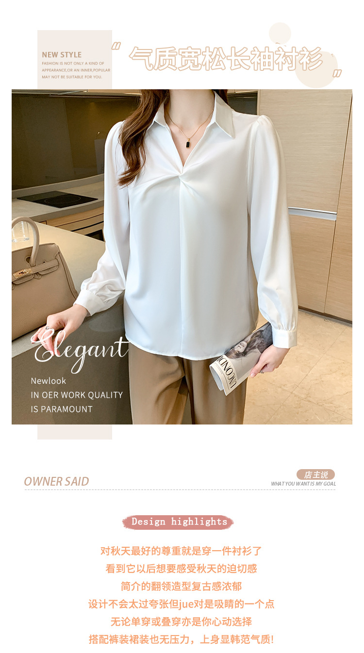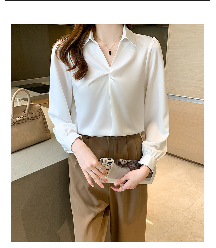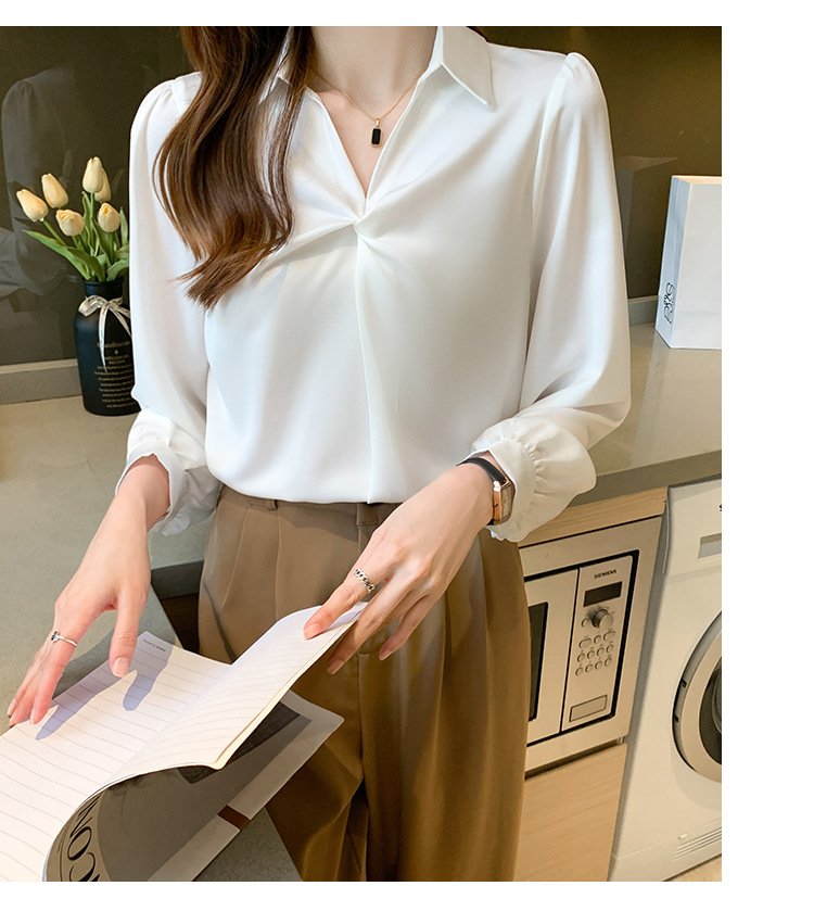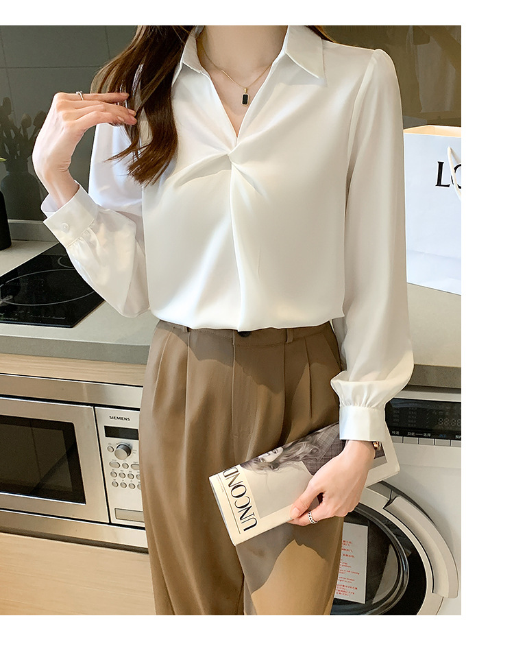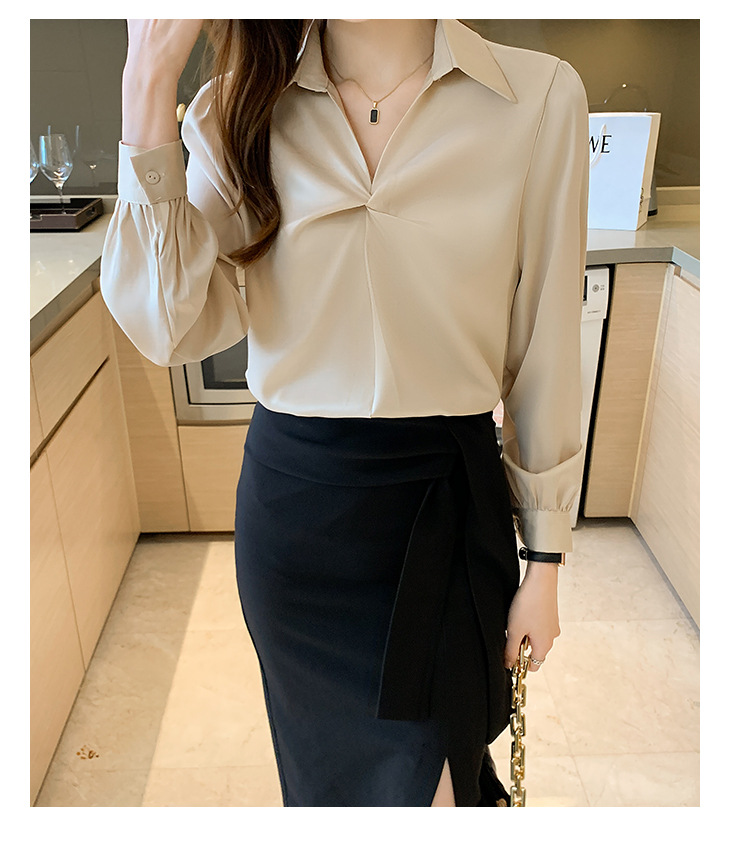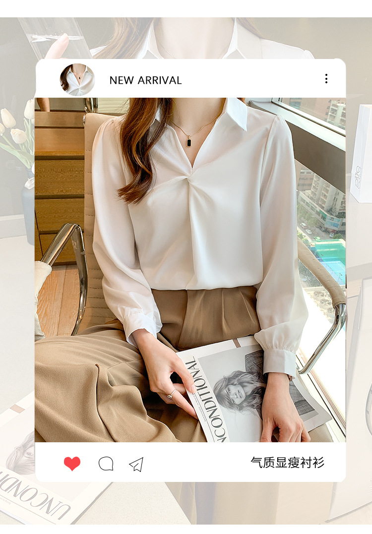 2021 가을과 겨울 새로운 우아한 래핑 된 새틴 긴 소매 셔츠 패션 디자인 올 매치 여성스토어 가기