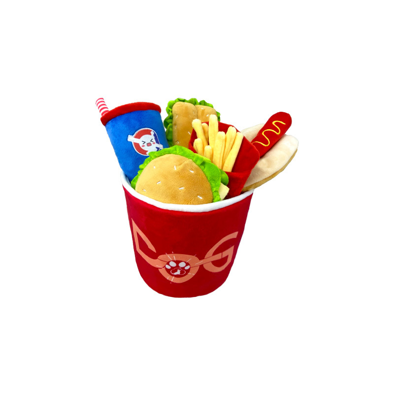 아마존의 새로운 가족 버킷 버거 세트 강아지 지루함 장난감 애완 동물 젖니가 남 방지 물린 소리 인형