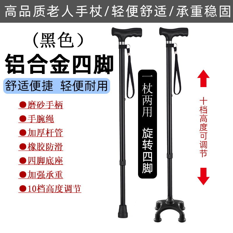 알루미늄 합금 접이식 지팡이, 노인 보행 보조기, 손잡이 지팡이, 등산용 지팡이, 미끄럼 방지 4발 디자인