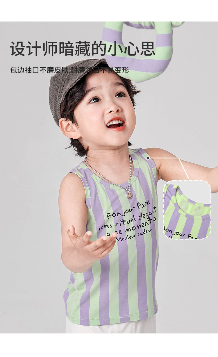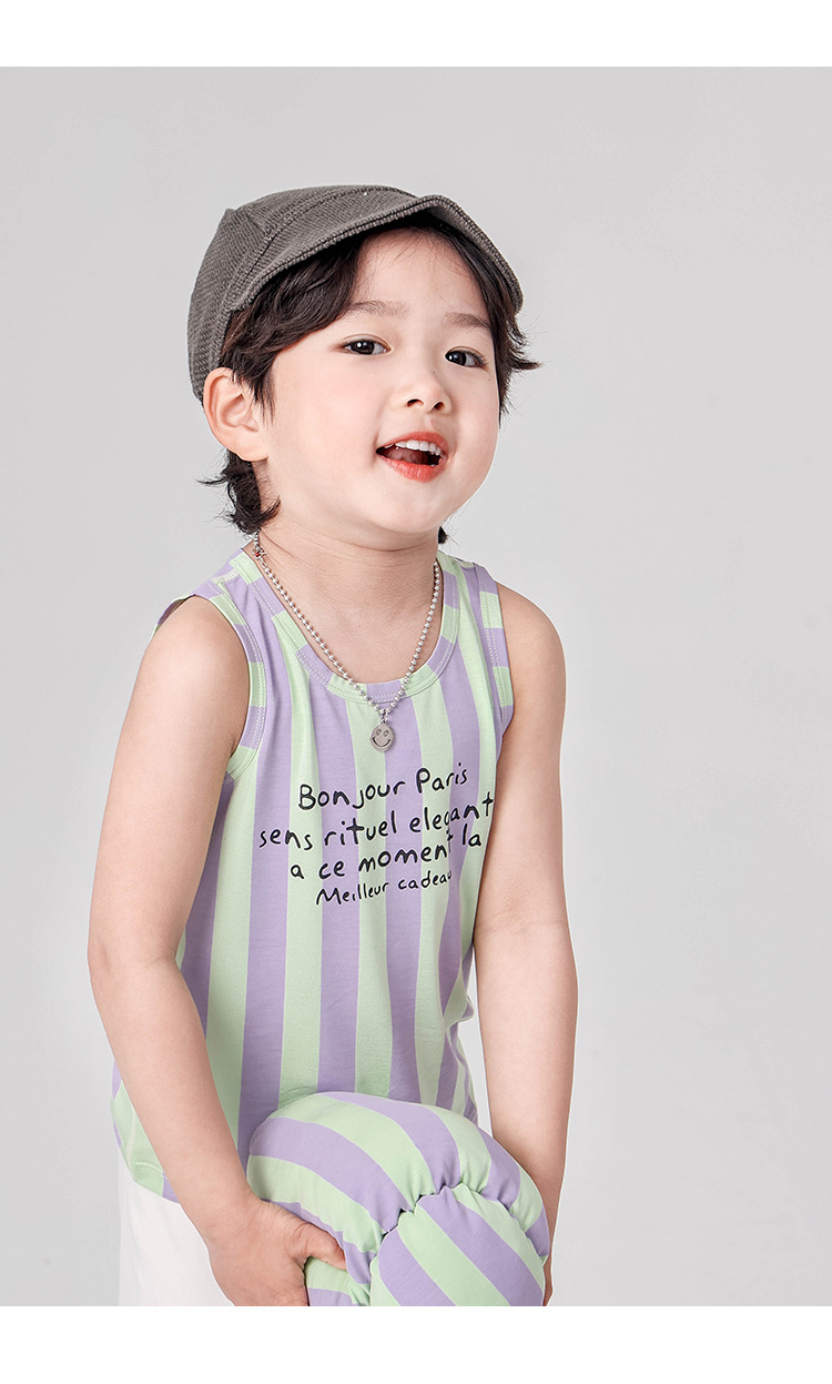 J142 디자이너 여름 어린이 조끼 수직 스트립 편지 기지 야세르 소년의 조끼 클래스 A 착용