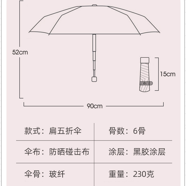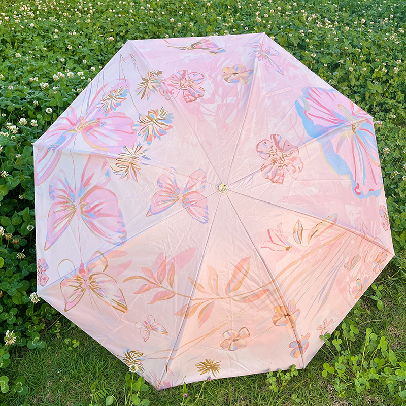 • 50% 폴드 그라디언트 카드 우산-한여름 분말 [단일 레이어 블랙 접착제]