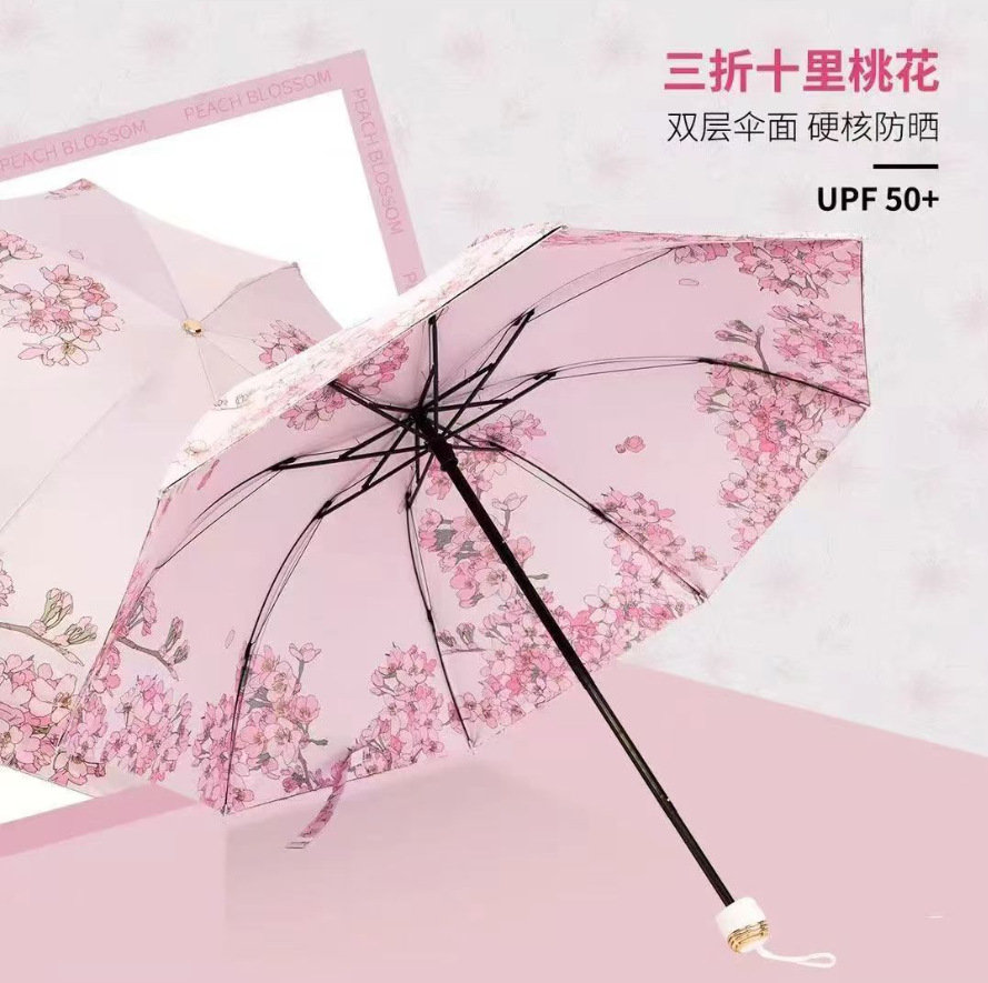 • 50% 접힌 인쇄 카드 우산-하오 하이 레드 사쿠라 [단일 레이어 블랙 접착제]