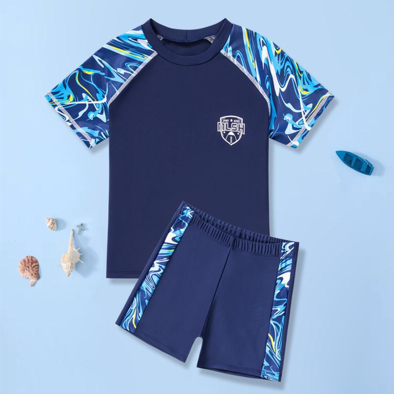 새로운 어린이 수영복 빅 보이 베이비 스플릿 세트 수영 트렁크 짧은 소매 비치 수영복 수영 세트