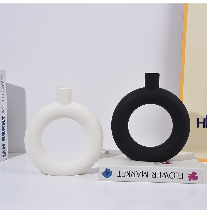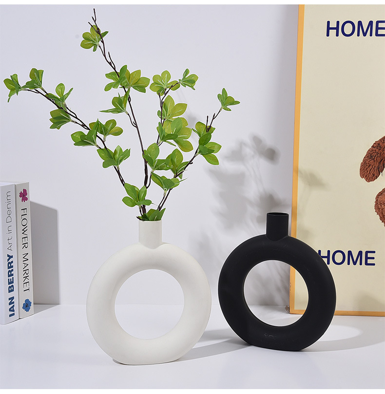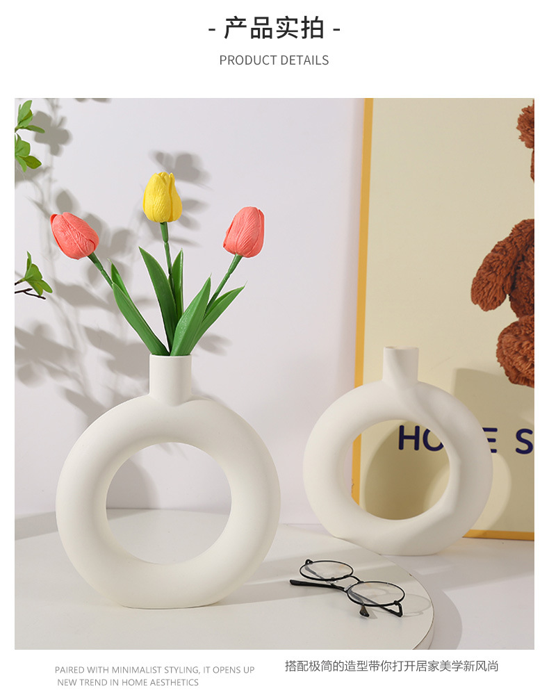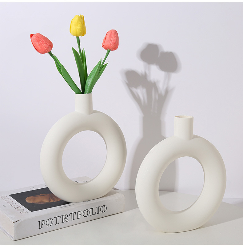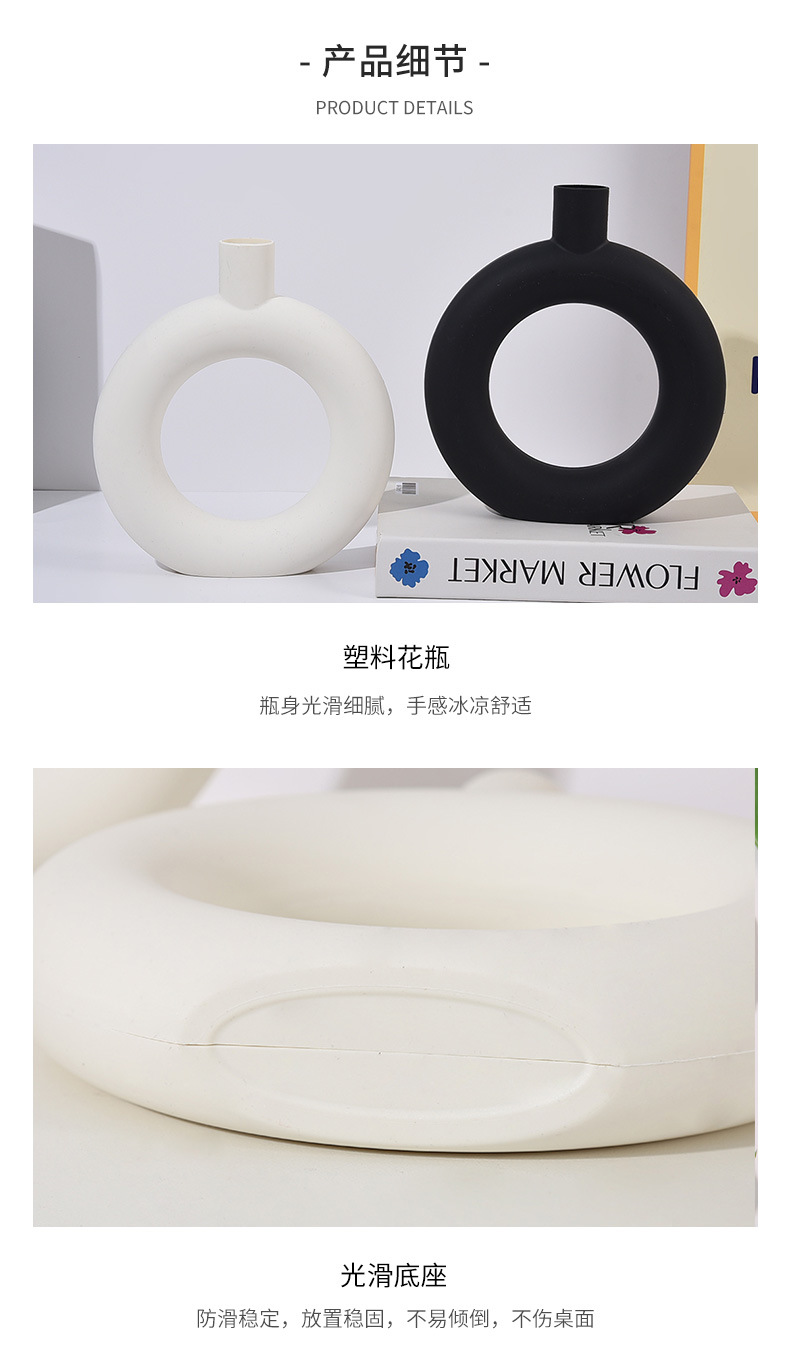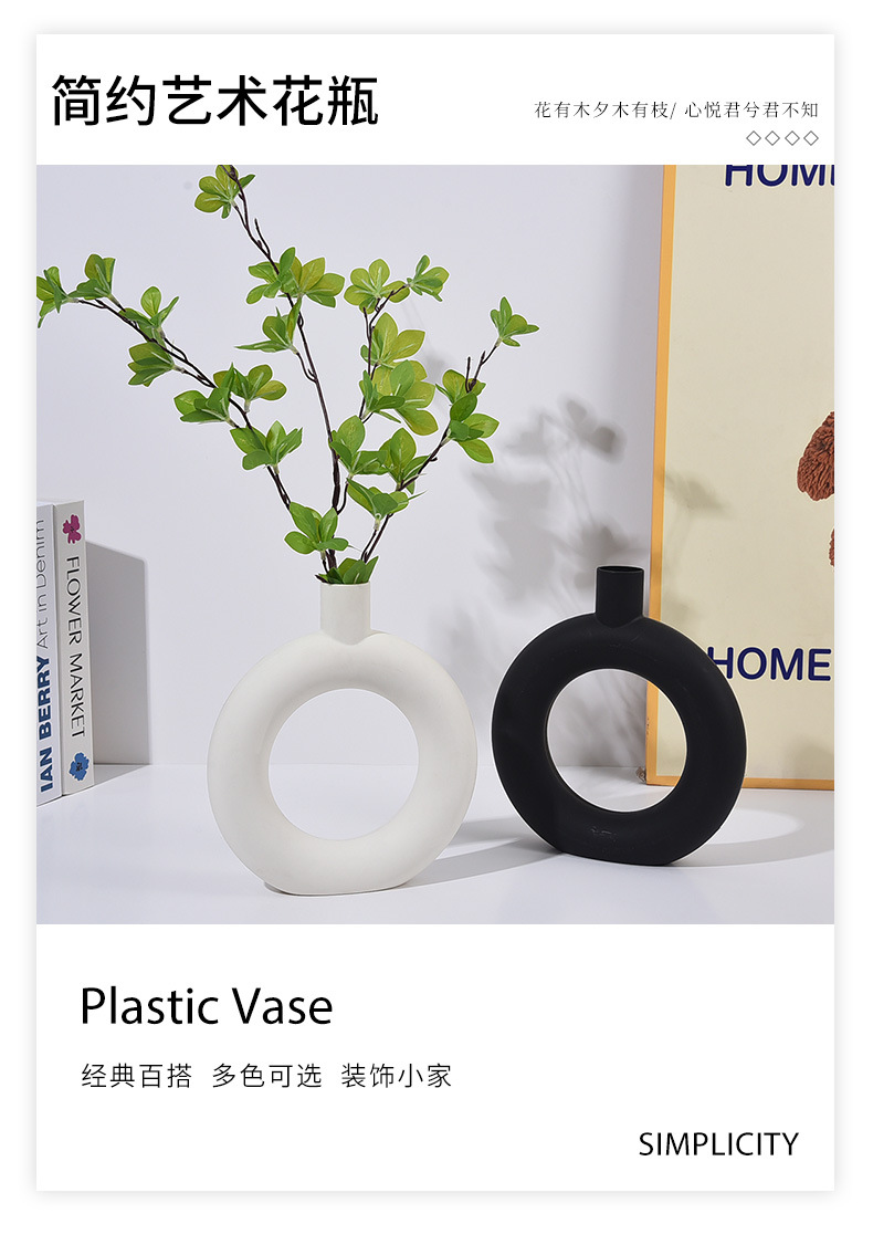 간단한 플라스틱 원형 모양의 꽃병 스타일 거실 꽃병 식탁 장식 병 말린 꽃 꽃병 장식품