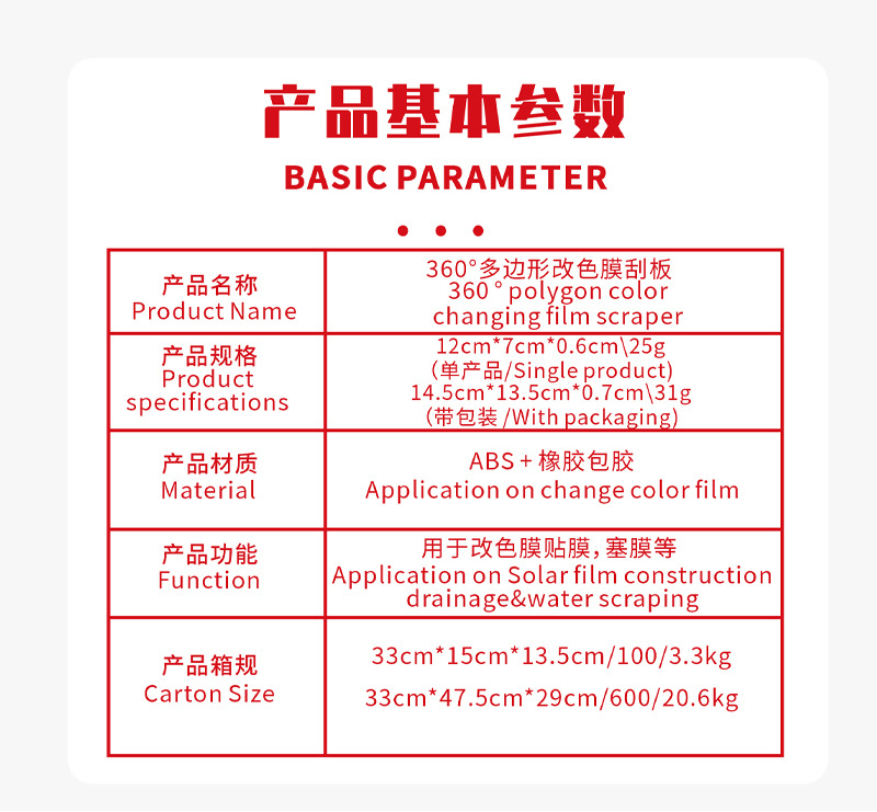 Qili 자동차 필름 적용 도구, 다각형 스크레이퍼, 색상 변경 필름, 가장자리 트리밍, 다기능 색상 변경 스크레이퍼