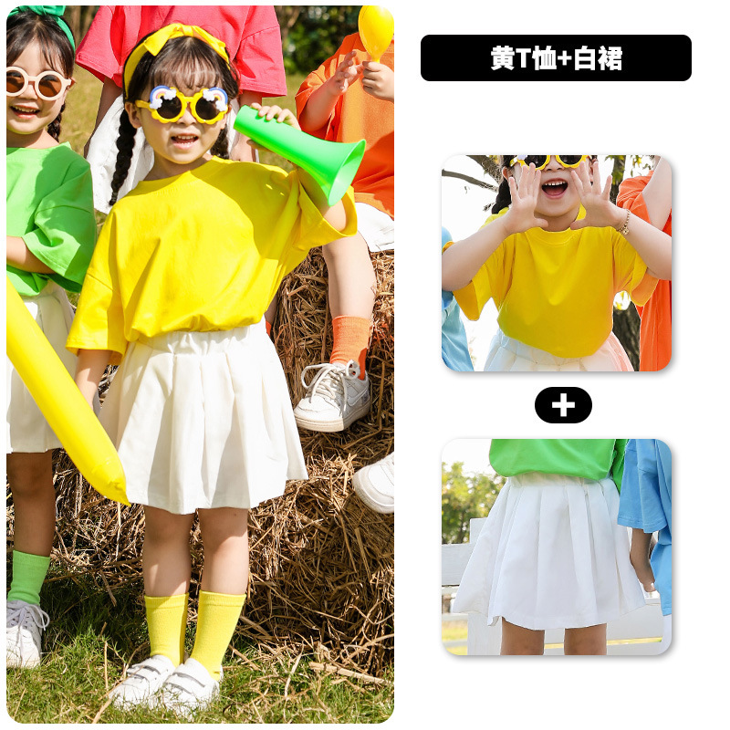 • 슈트 [003D 밝은 노란색 T+345D 흰색 7극 스커트] + 밝은 노란색 양말 + 밝은 노란색 머리 스카프