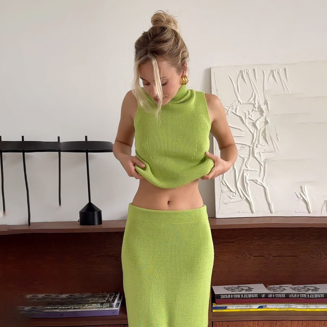 跨境法式无袖高领棉毛织上衣女春季套装裙气质温柔低腰半身裙套装