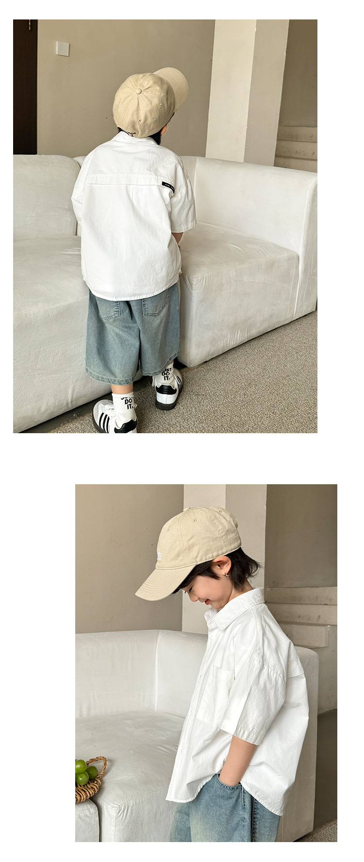 소년 순면 흰색 셔츠 유행 반팔 셔츠 2025 여름 새로운 스타일 Haima 가족 어린이 한국 스타일 아동복스토어 가기