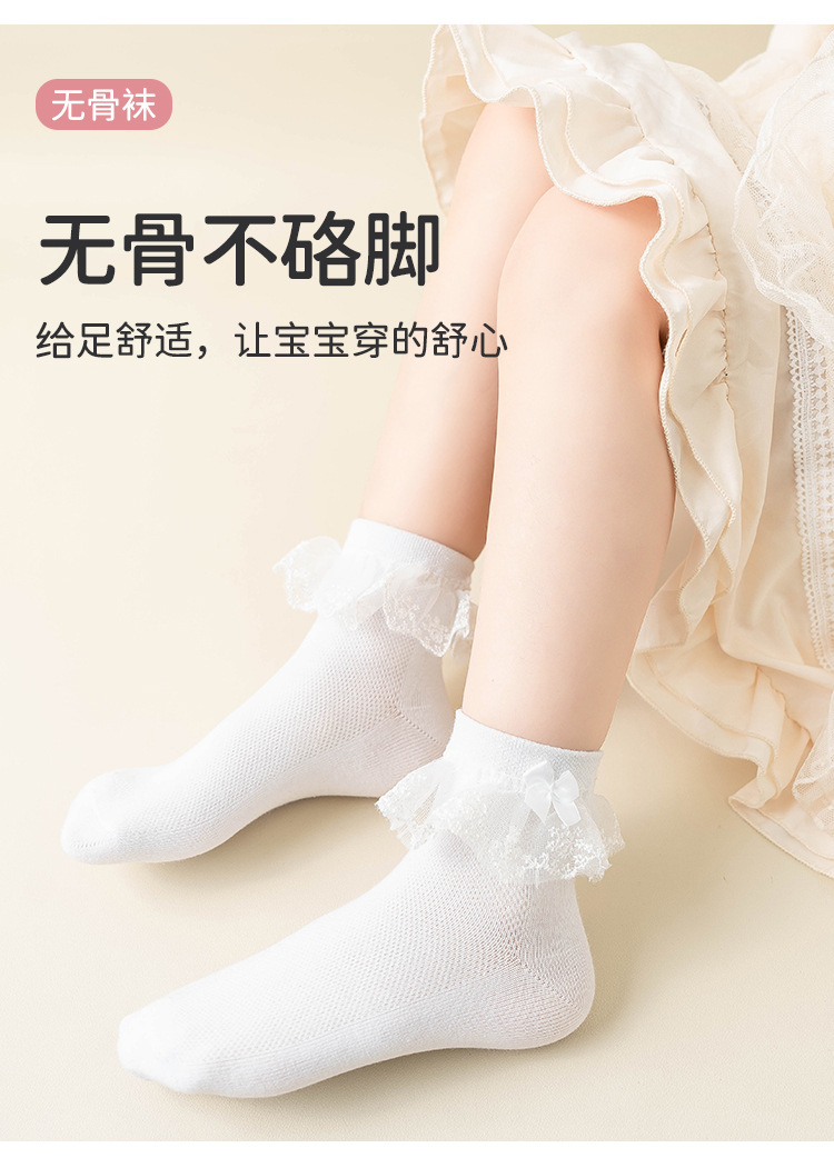 여름 얇은 여자 레이스 양말 아기 귀여운 공주 양말 어린이 면 항균 느슨한 짧은 양말