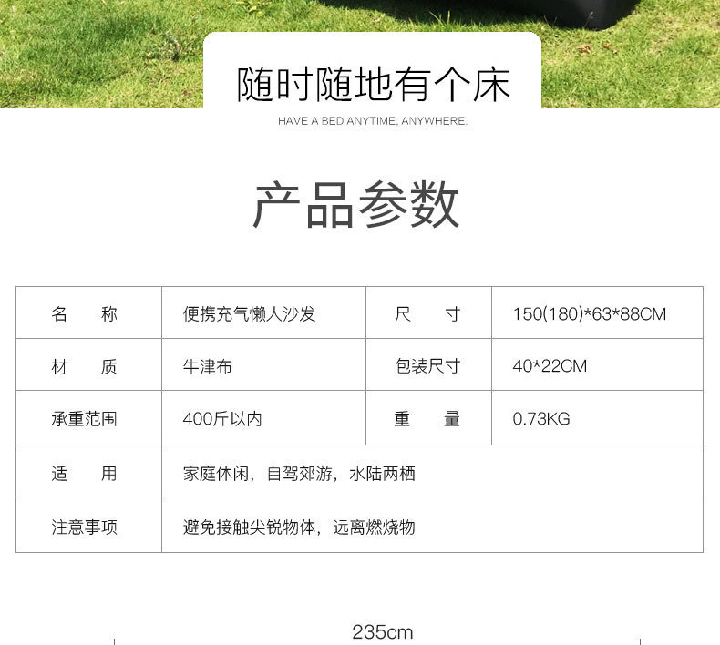 국경 간 팽창식 소파 야외 게으른 접는 소파 음악 축제 휴대용 점심 침대 쉬운 저장 공원 결합기