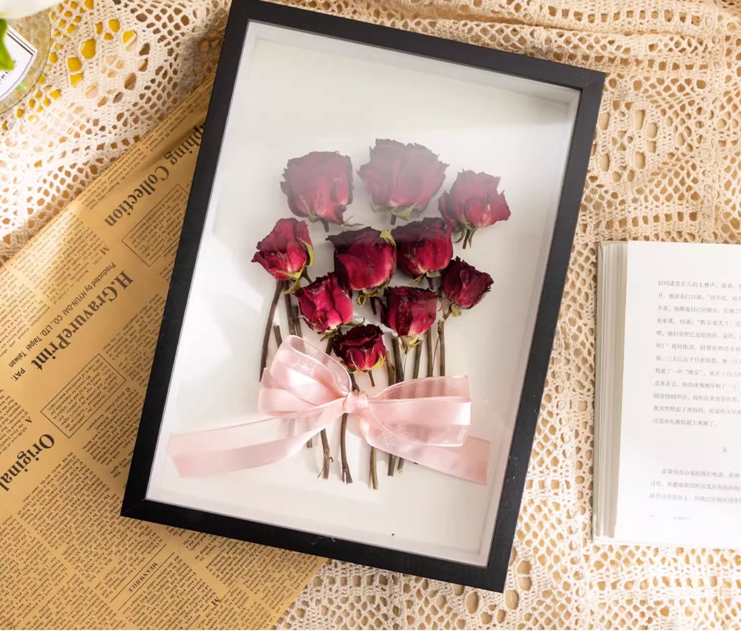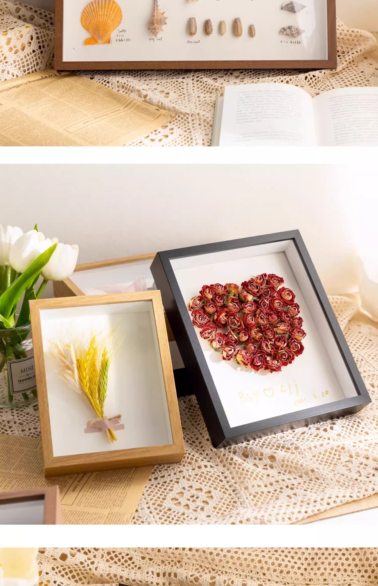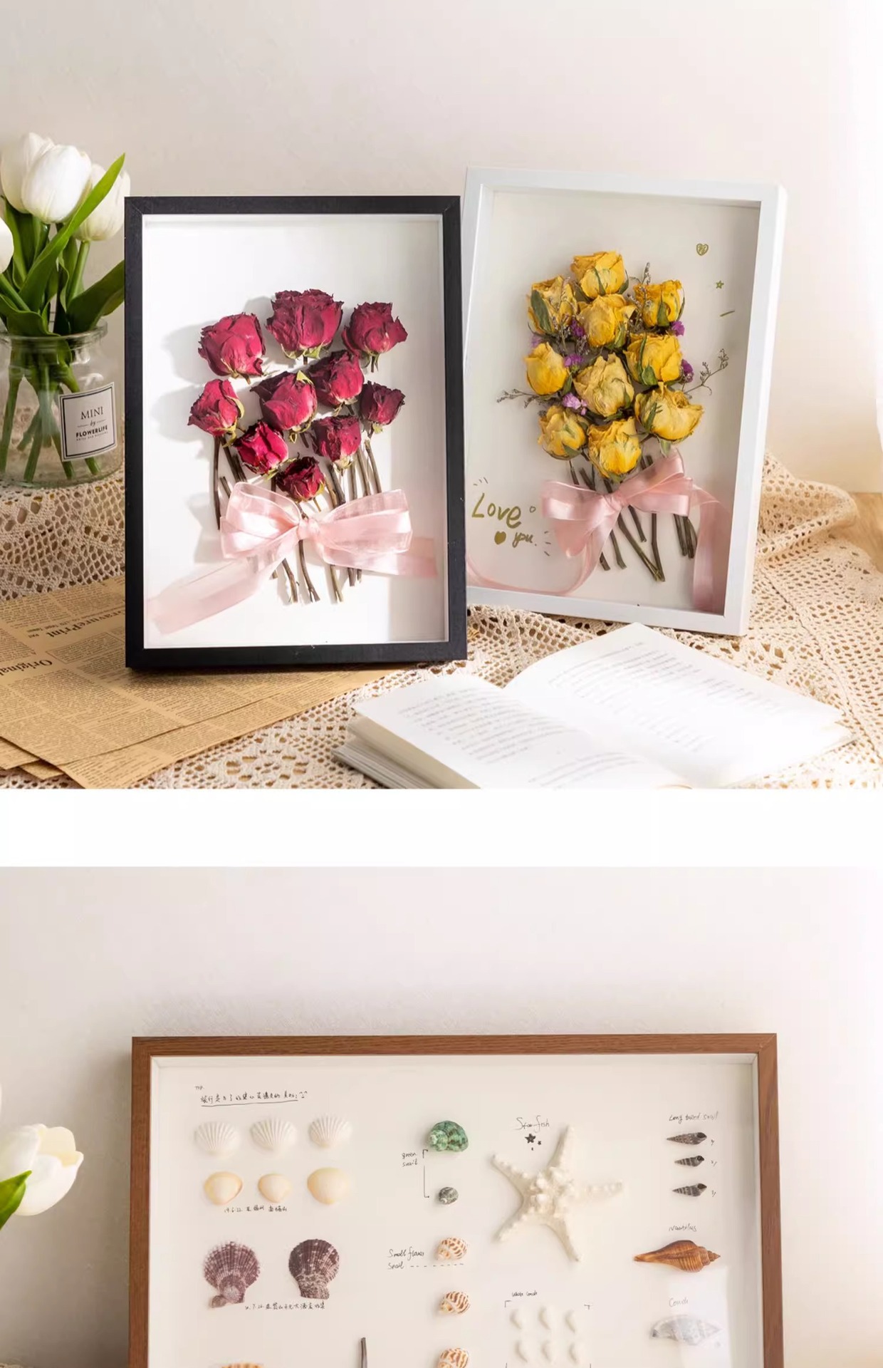 스테레오 할로우 표본 프레임 8 인치 수제 나비 곤충 점토 말린 꽃 사진 프레임 세트 테이블 그림 프레임 장착