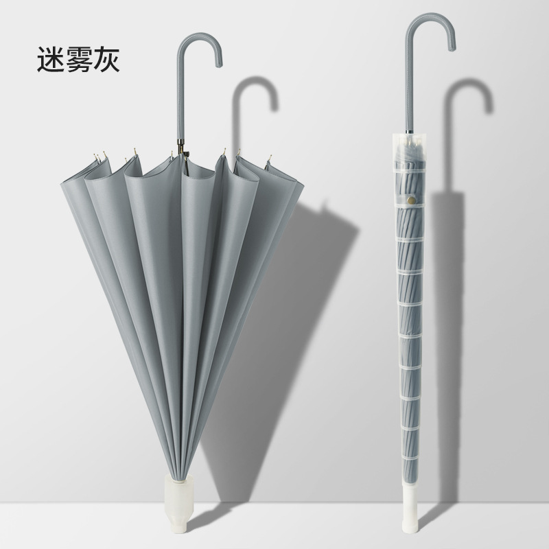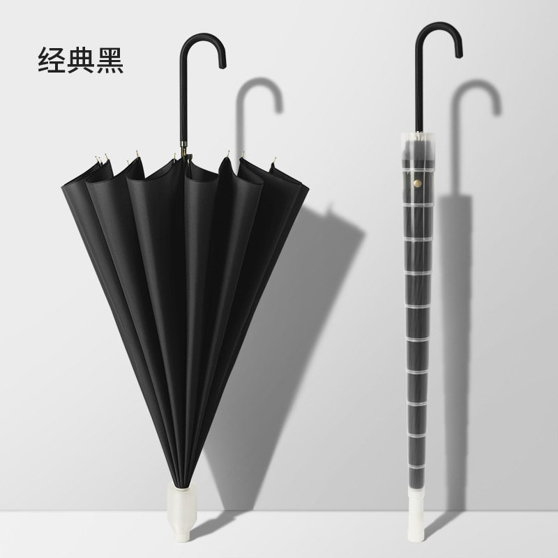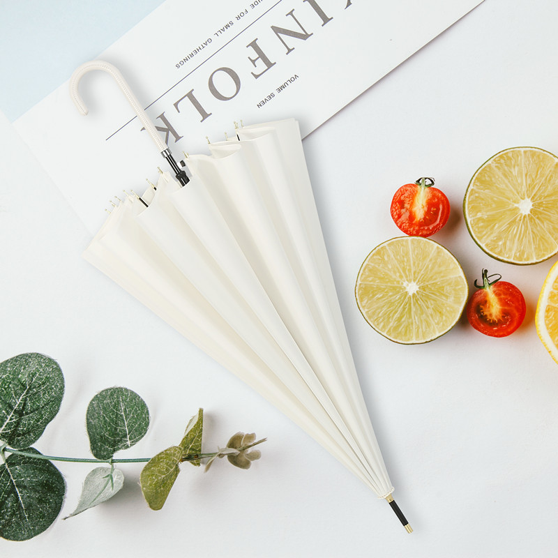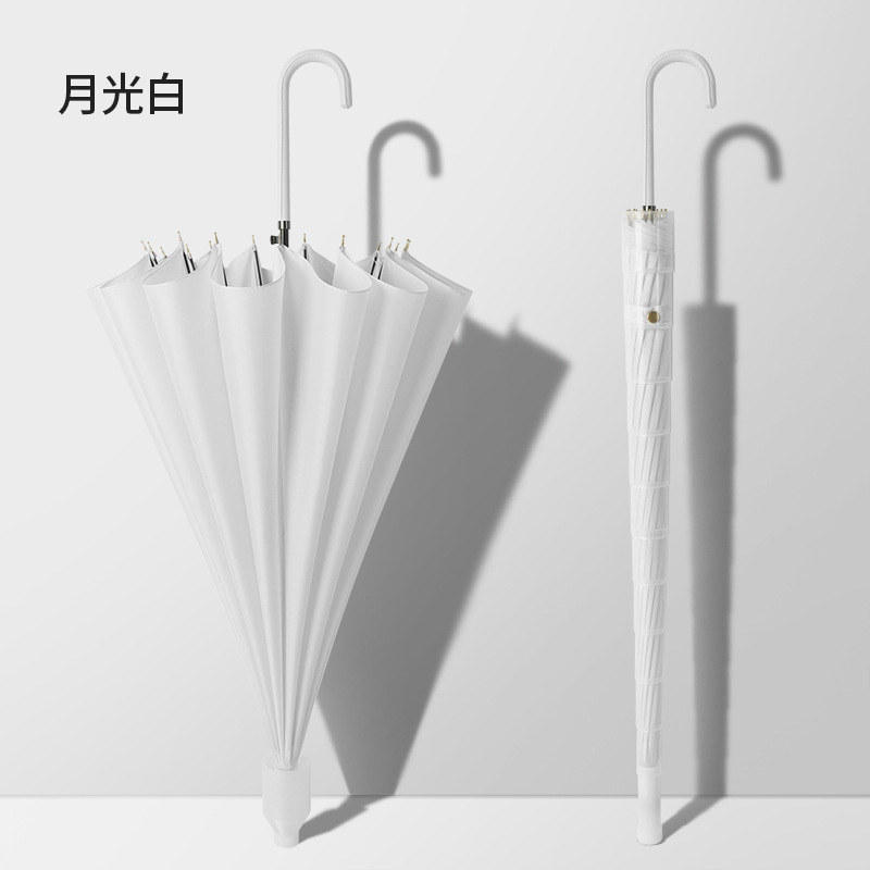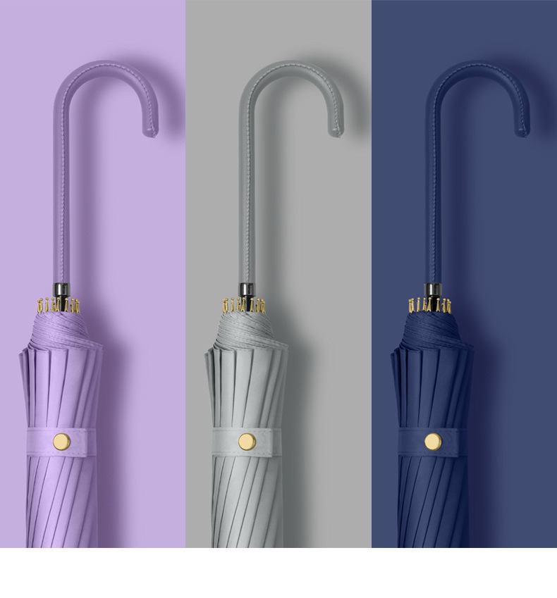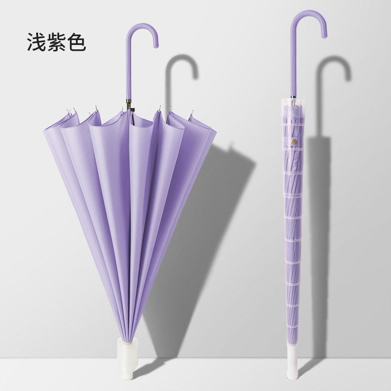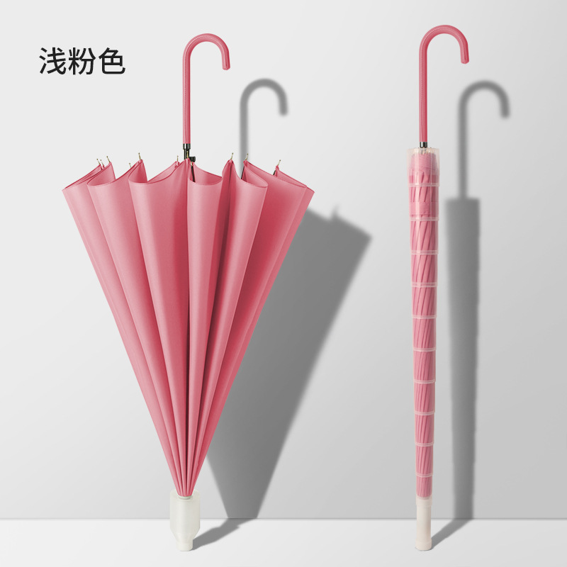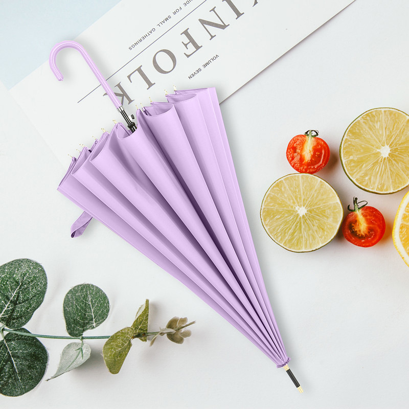 16본의 상큼한 색상의 곡선형 손잡이 직선형 우산, 자동 개폐식 대형 이인용 긴 손잡이 광고용 선물 우산, 맞춤형 로고 가능