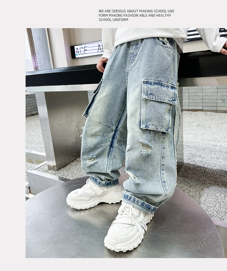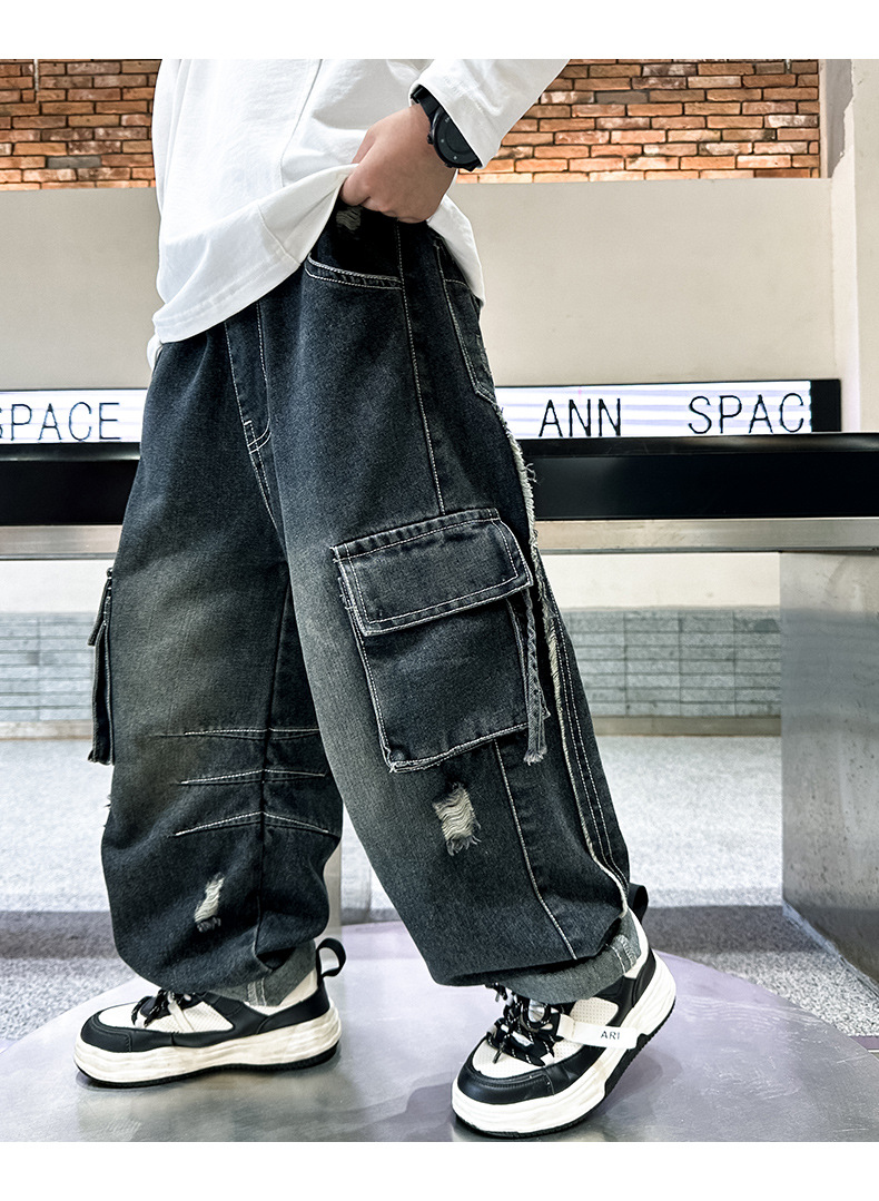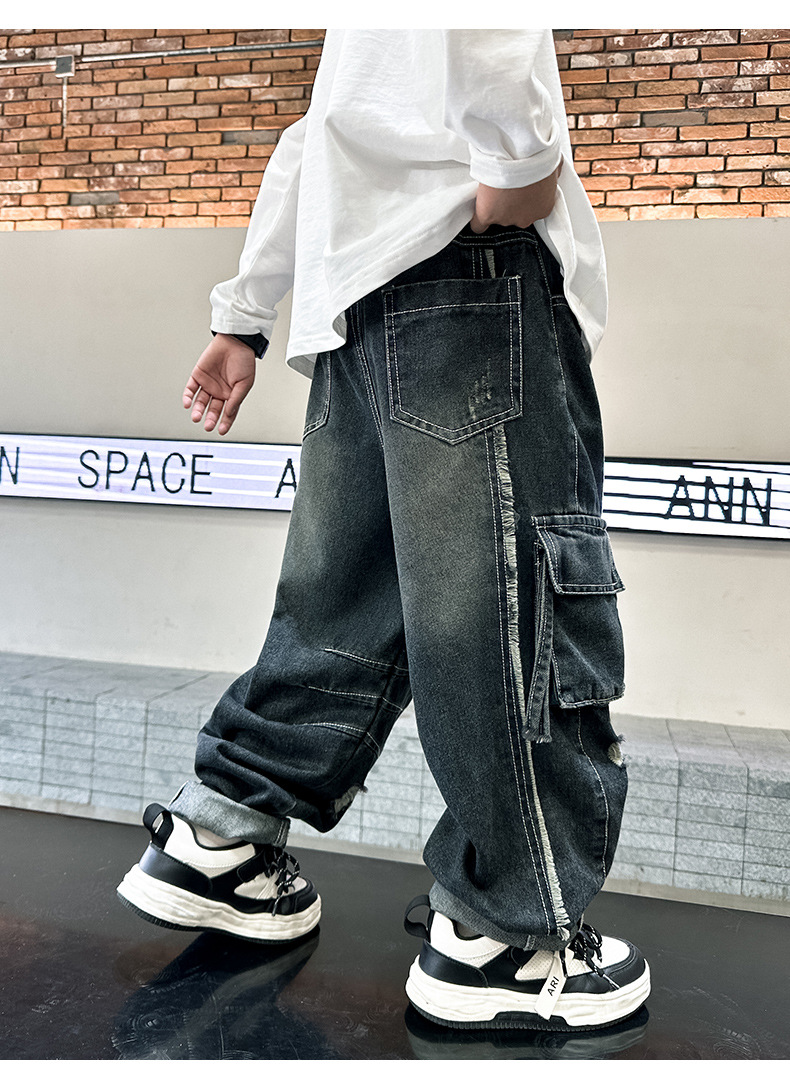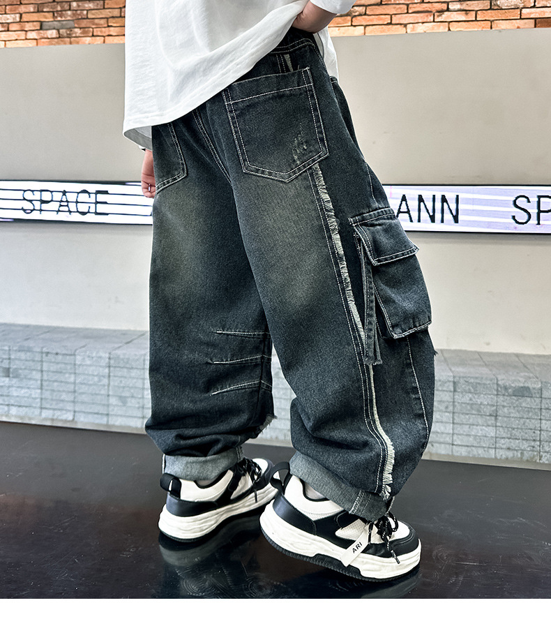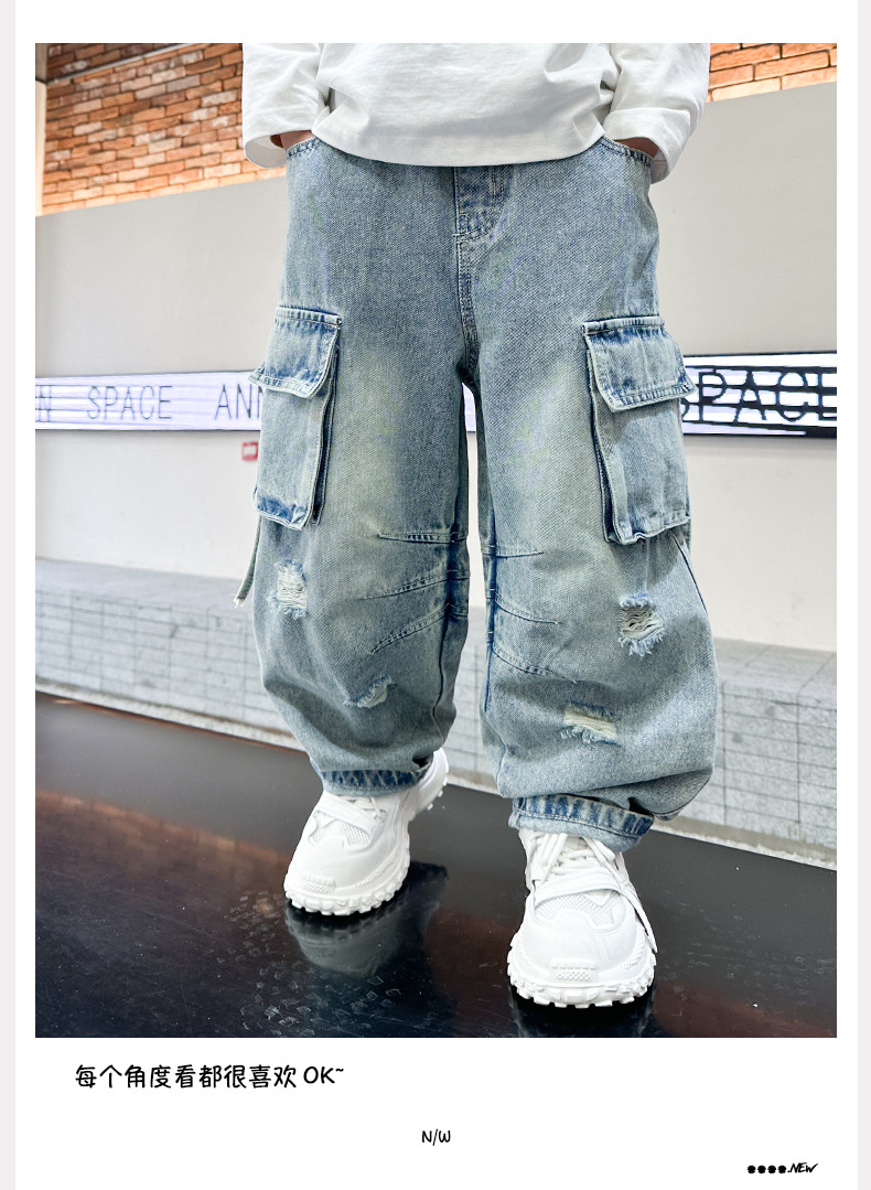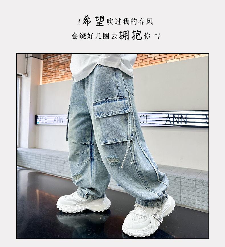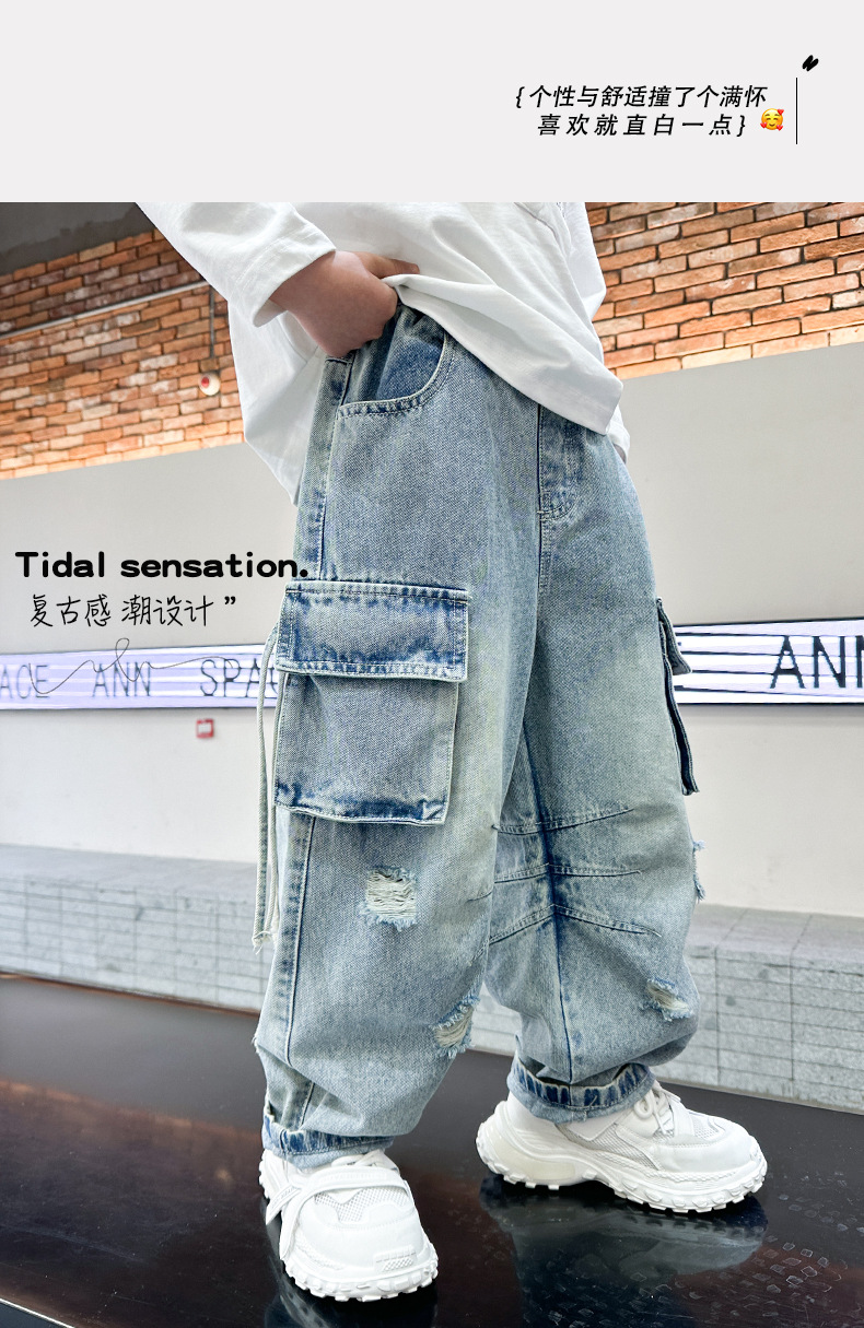 소년 청바지 봄, 가을 2025 새로운 중대형 어린이 봄 작업복 소년 가을 캐주얼 바지 유행스토어 가기