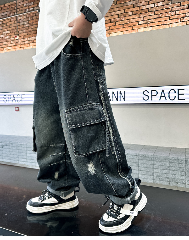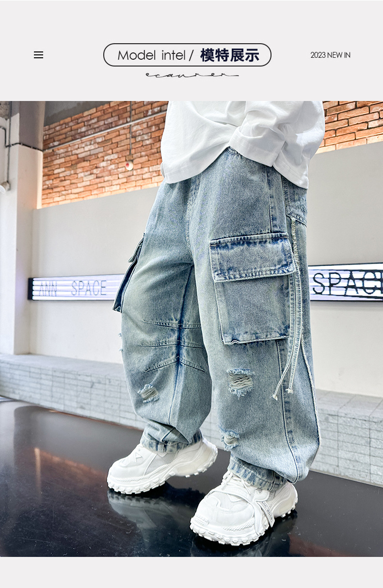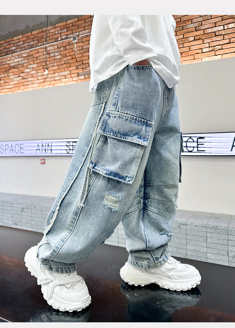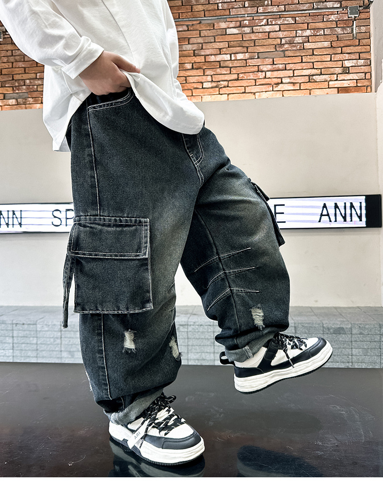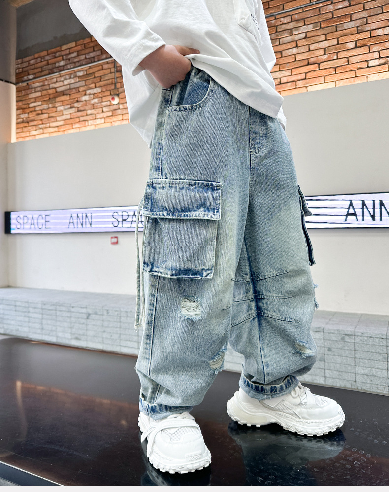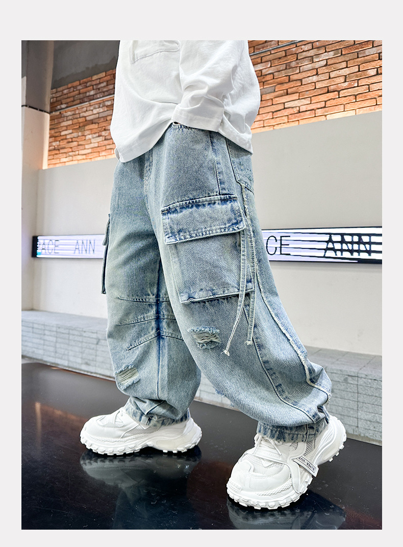 소년 청바지 봄, 가을 2025 새로운 중대형 어린이 봄 작업복 소년 가을 캐주얼 바지 유행스토어 가기