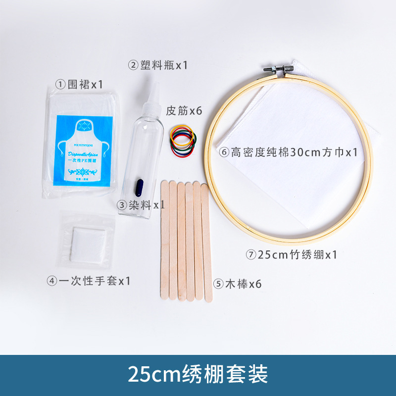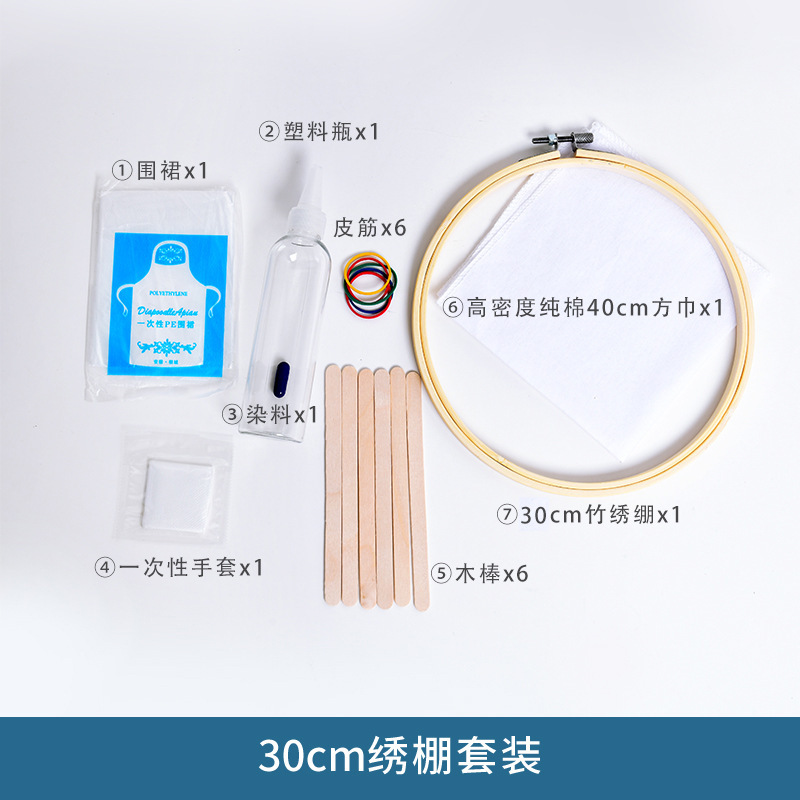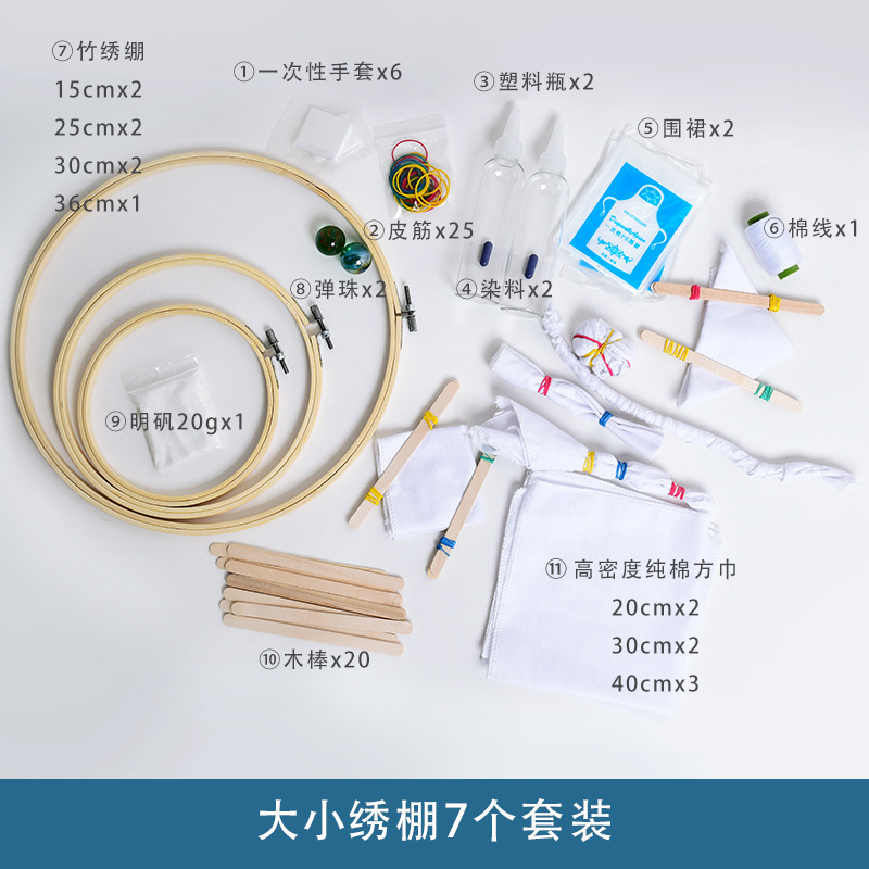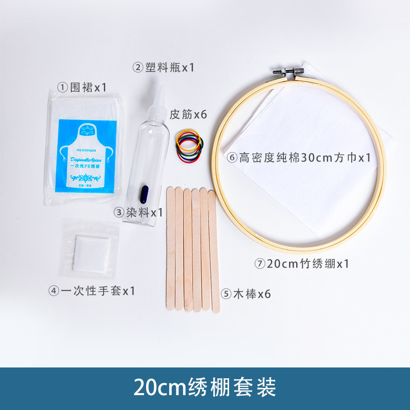 어린이 수제 넥타이 염색 자수 스트레치 장식 페인팅 도구 소재 가방 수제 대나무 자수 스트레치 링 블루 염색 벽 장식 펜던트 완전한 세트
