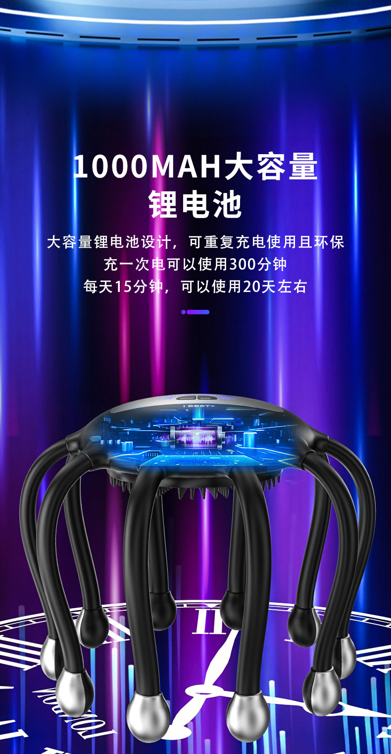 문어 머리 마사지 진동 반죽 머리 치료 기계 자오선 지능형 전기 두피 마사지 제조 업체 도매