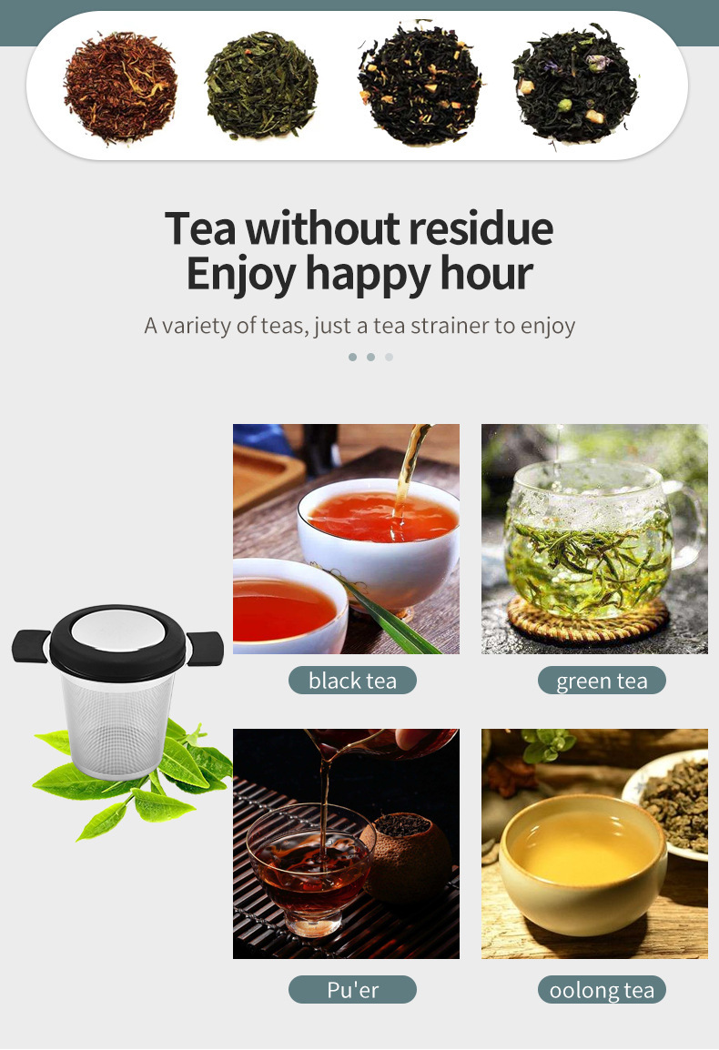공장 직접 간단한 binaural 뚜껑 차 드레인 스테인레스 스틸 차 스트레이너 사무실 차 메이커 실리콘 핸들 차