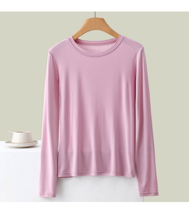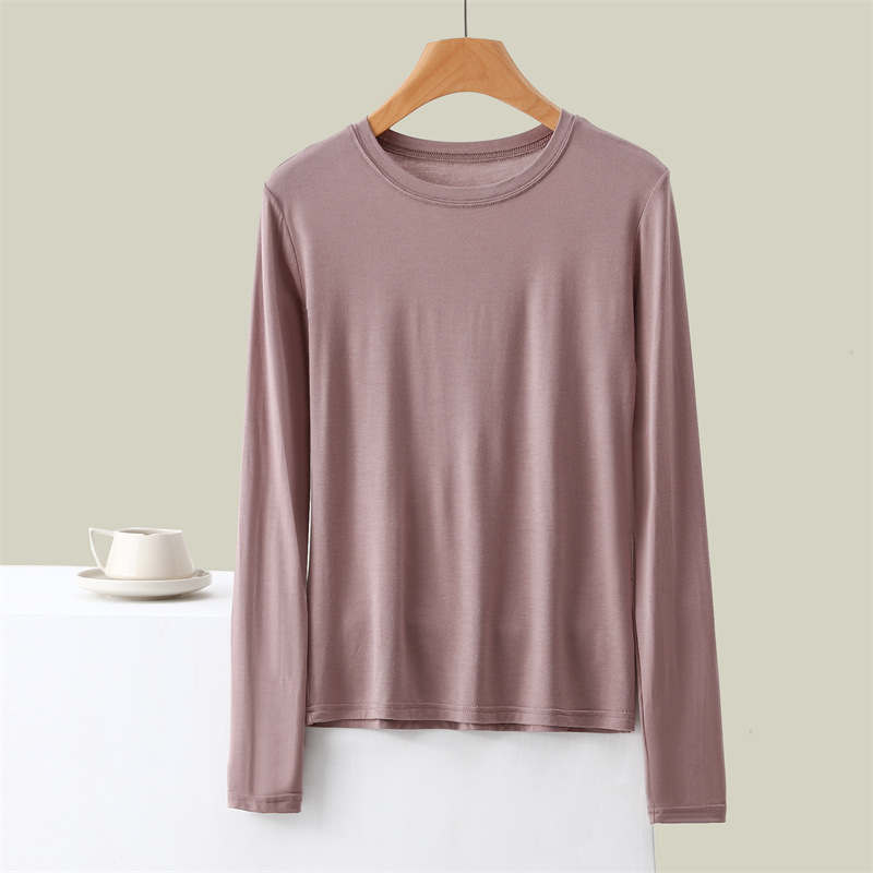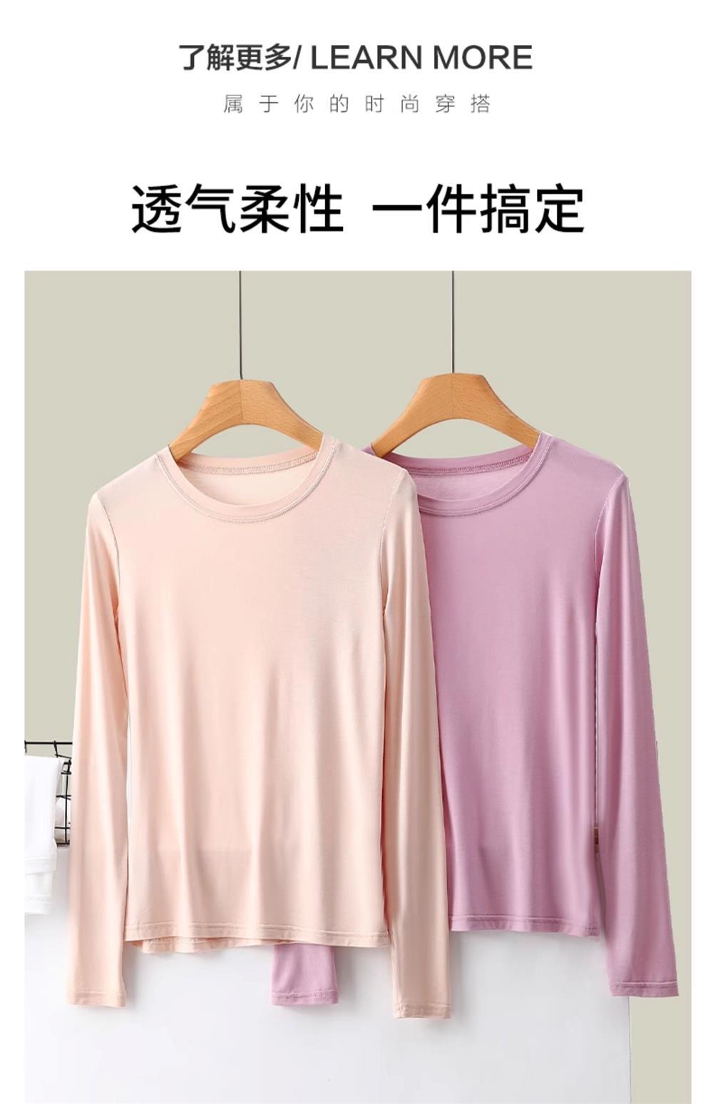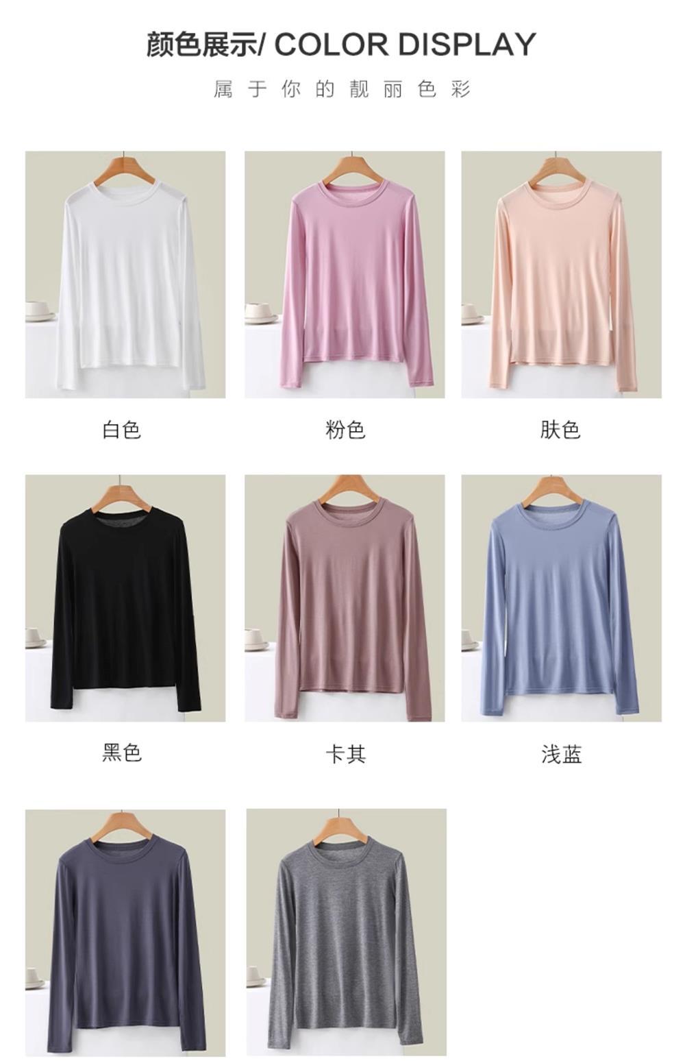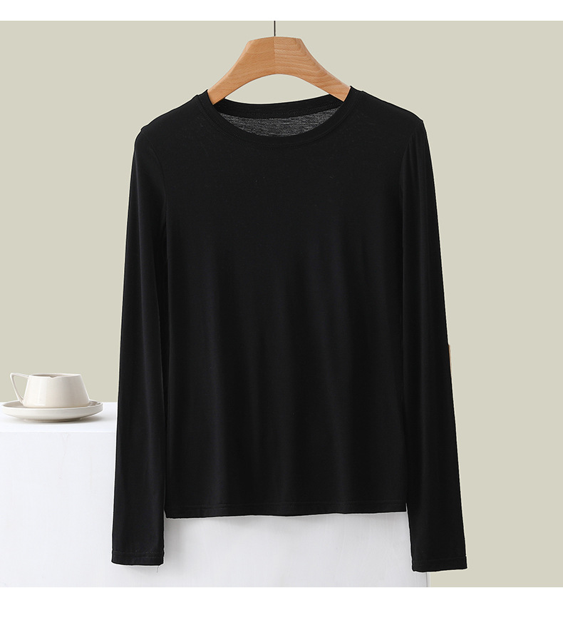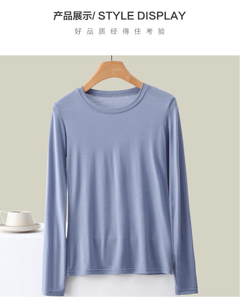 莫代尔圆领长袖T恤衫女薄款春新款纯色内搭修身显瘦百搭上衣外穿