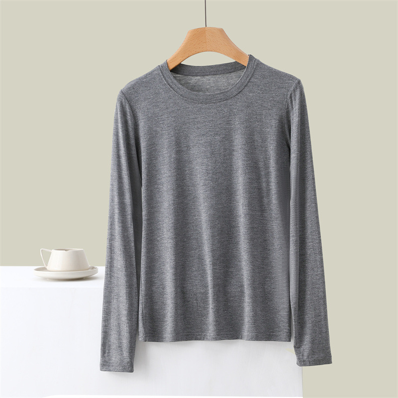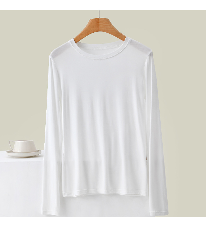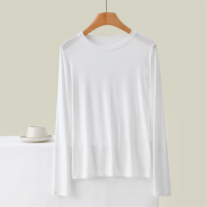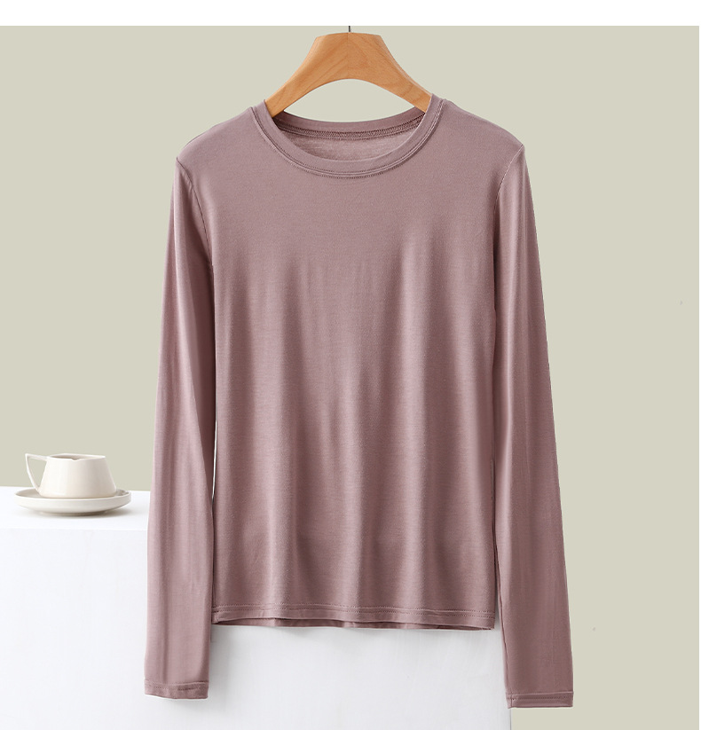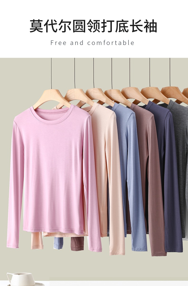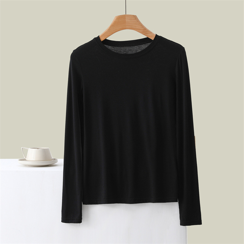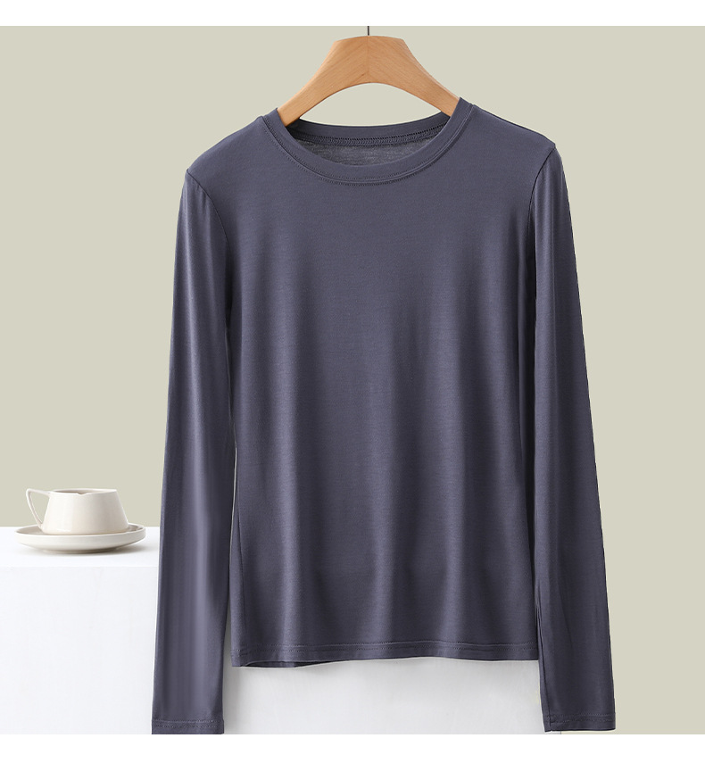 莫代尔圆领长袖T恤衫女薄款春新款纯色内搭修身显瘦百搭上衣外穿