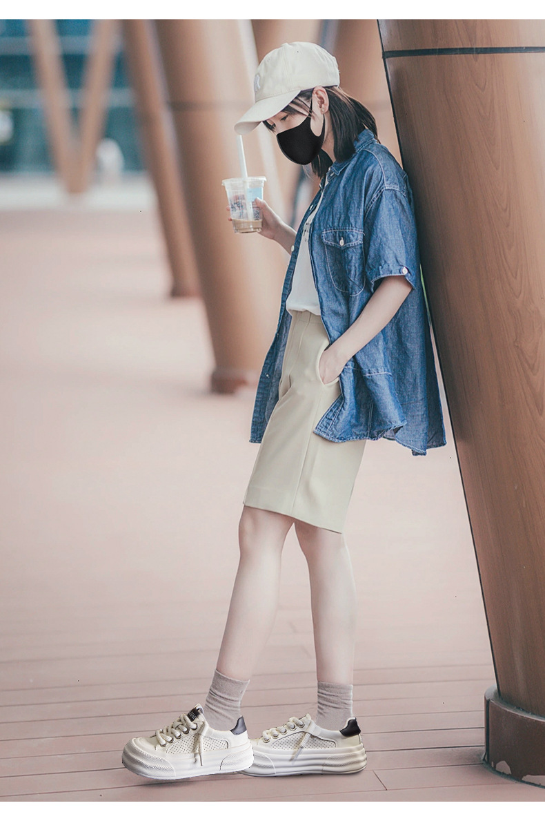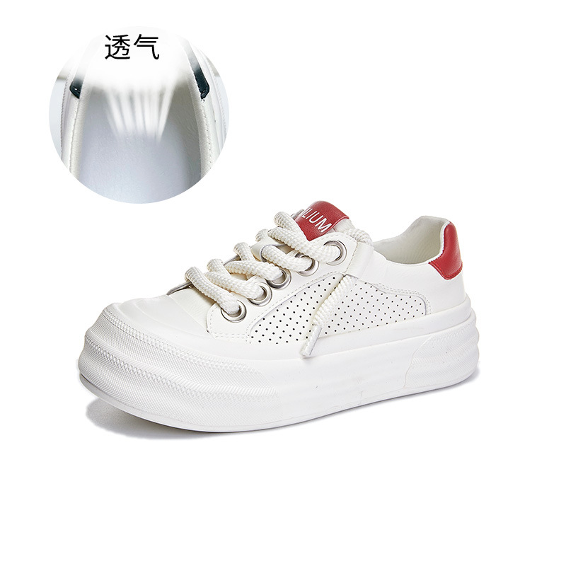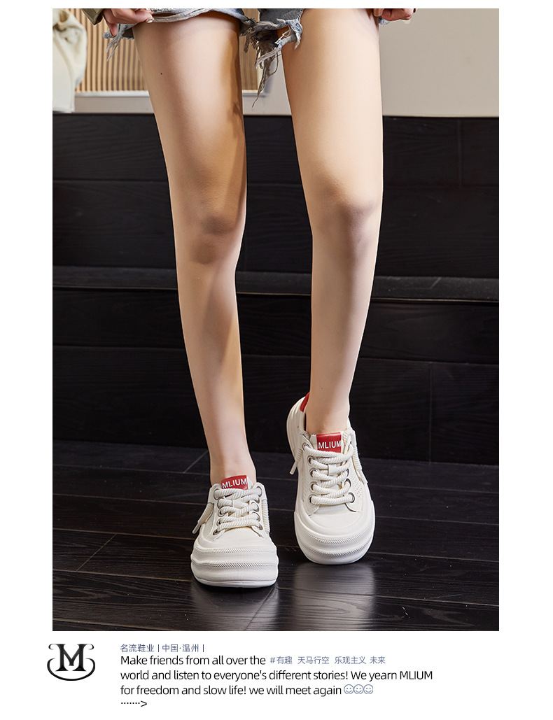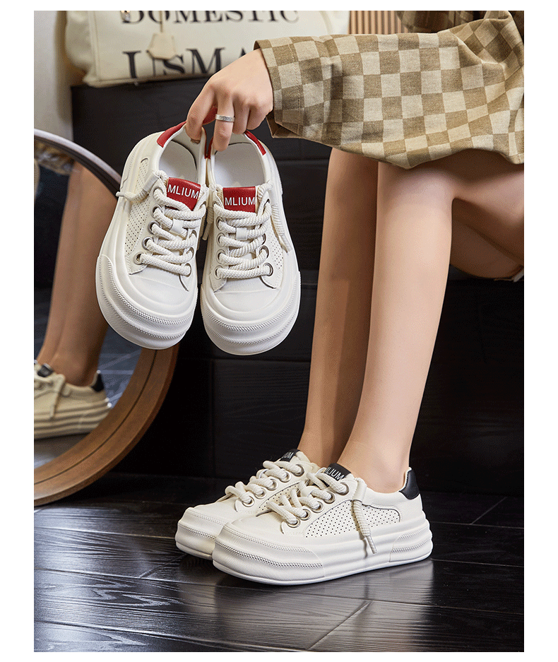 2025년 여름 신상 천연 가죽 화이트 슈즈, 여성용 두꺼운 밑창 슬립온 운동화, 캐주얼 스니커즈스토어 가기
