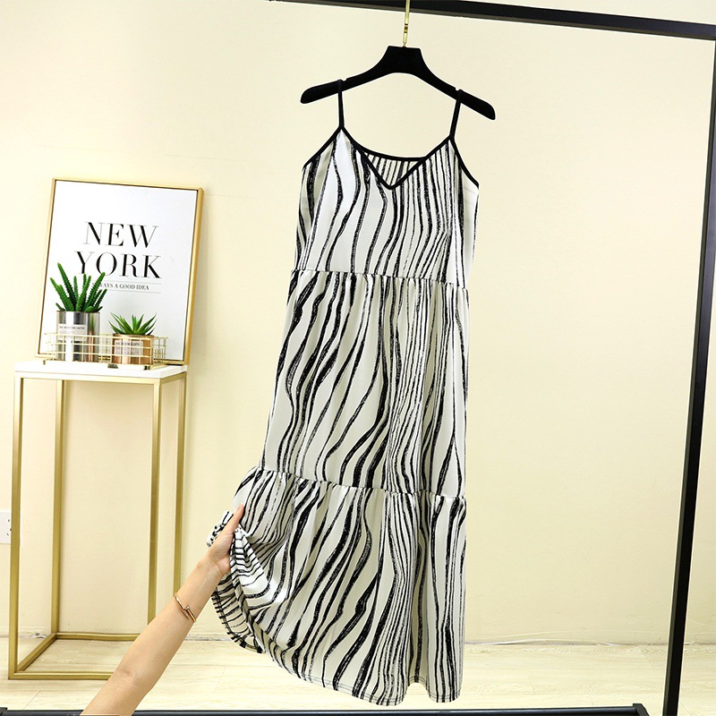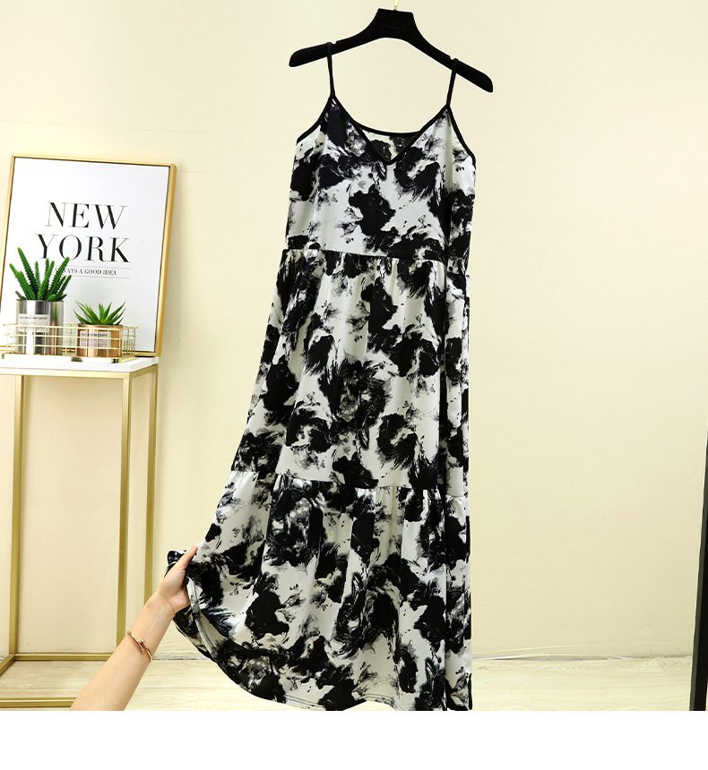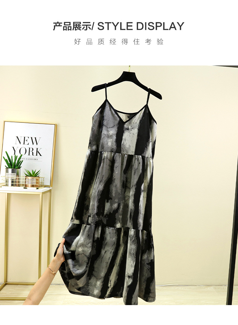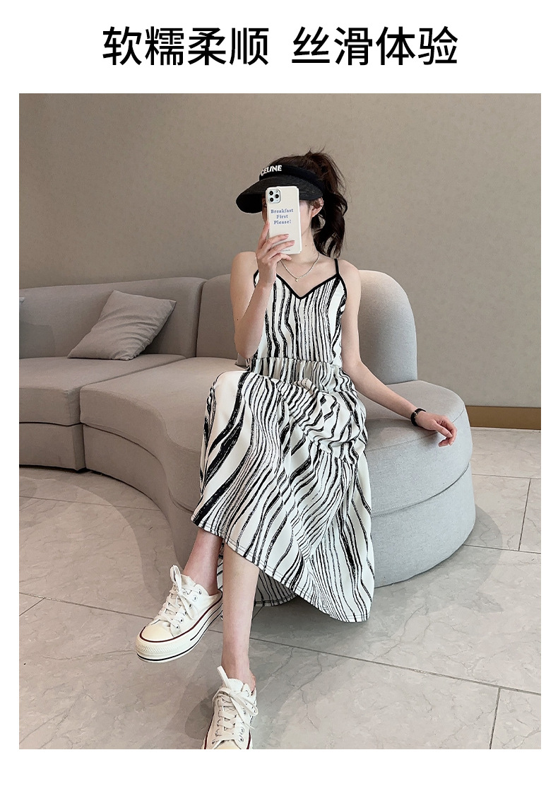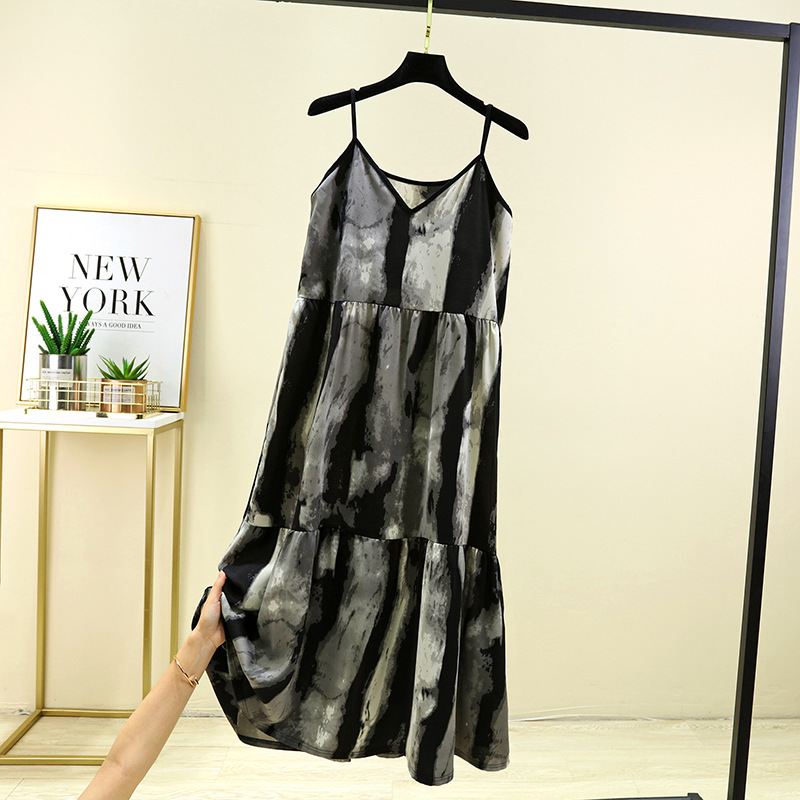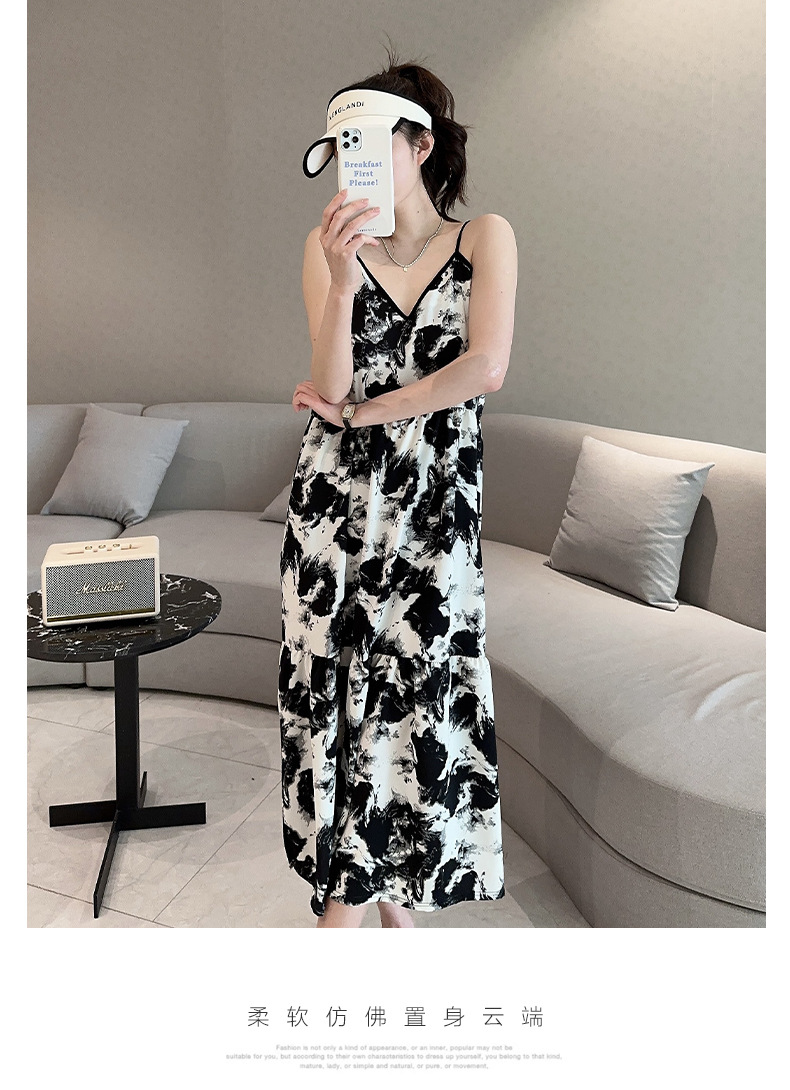 带胸垫吊带裙女夏季宽松拼接a字裙外穿薄款长裙v领家居睡裙连衣裙