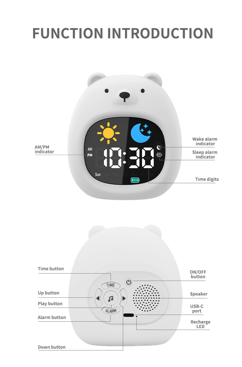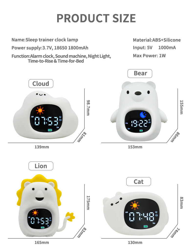 신제품 라이트 스트립 만화 동물 사자 알람시계 야간등 충전식 USB 어린이 선물 스트레스 해소 분위기 조명