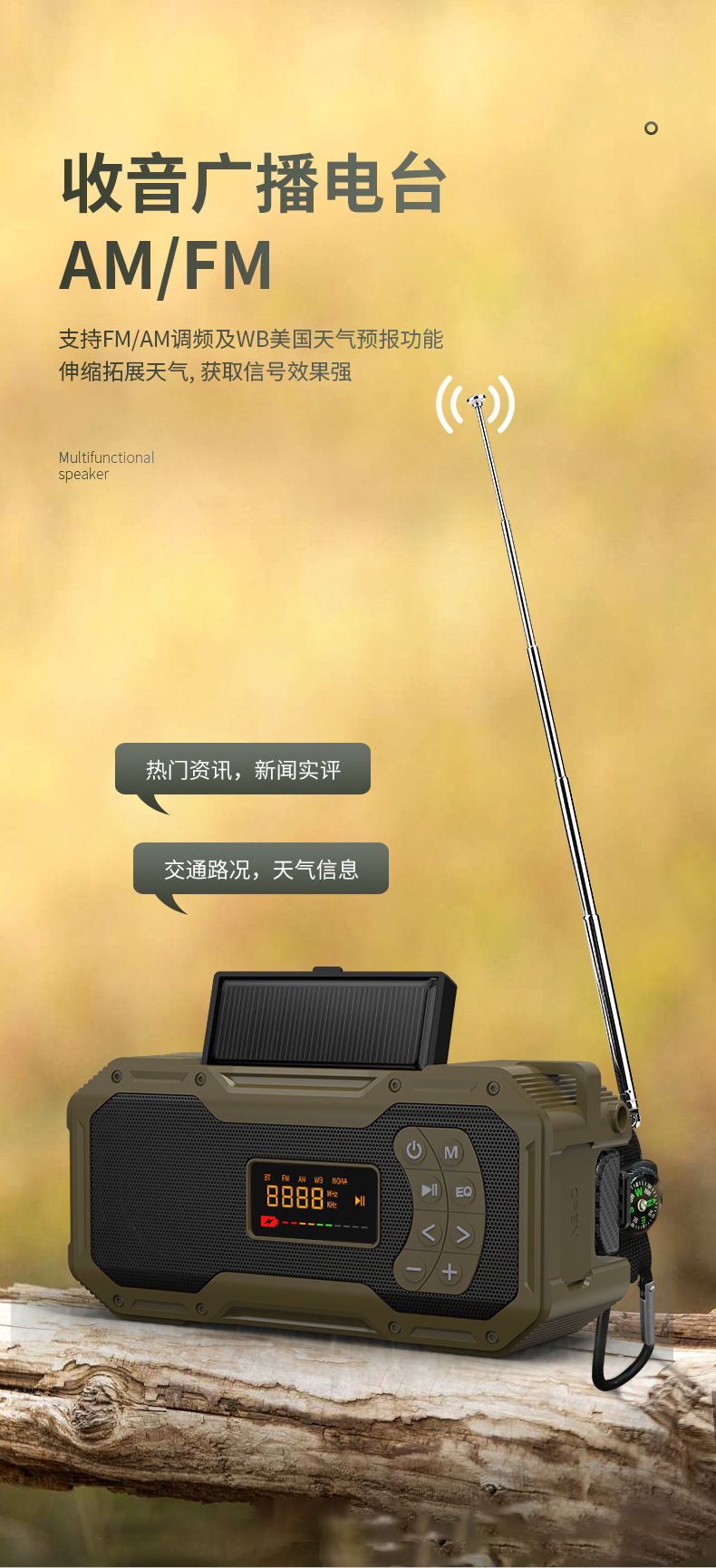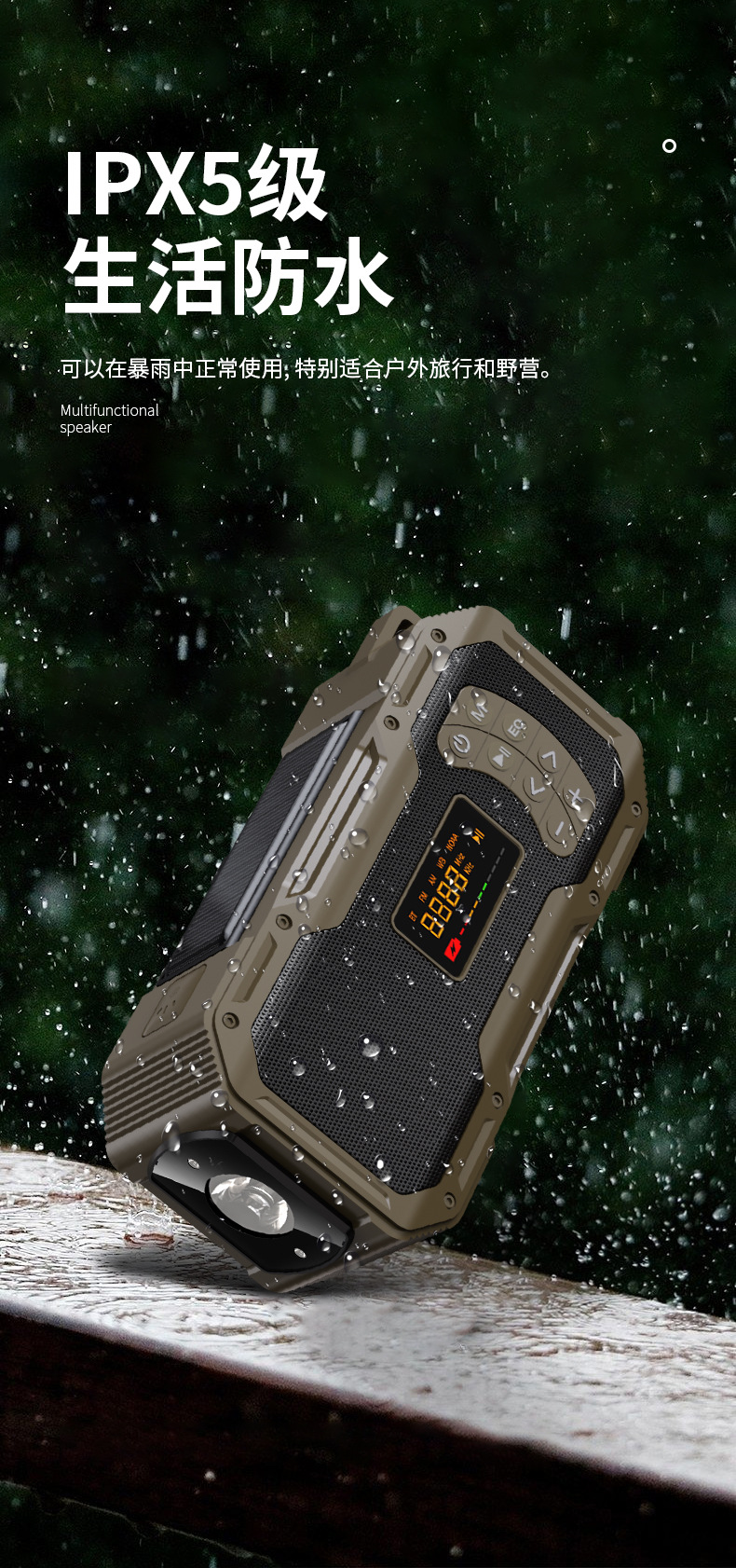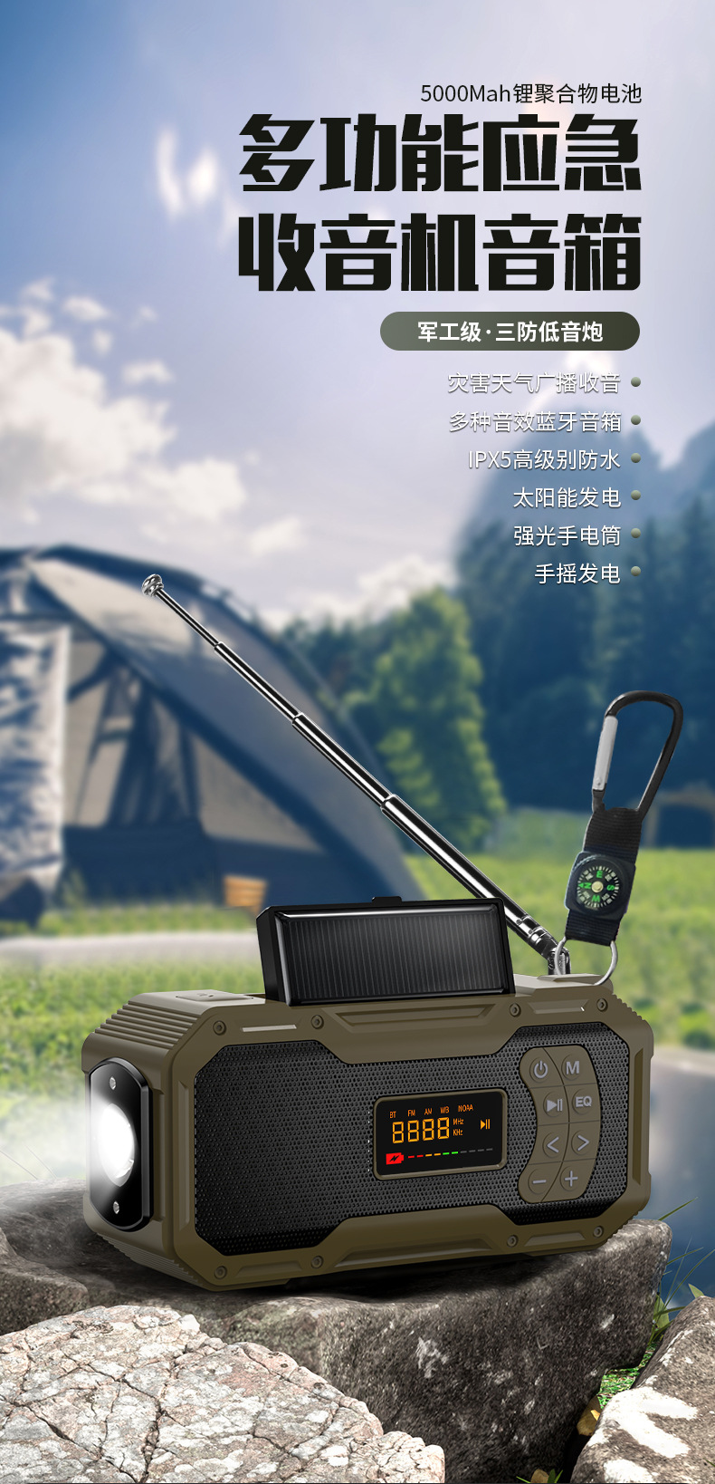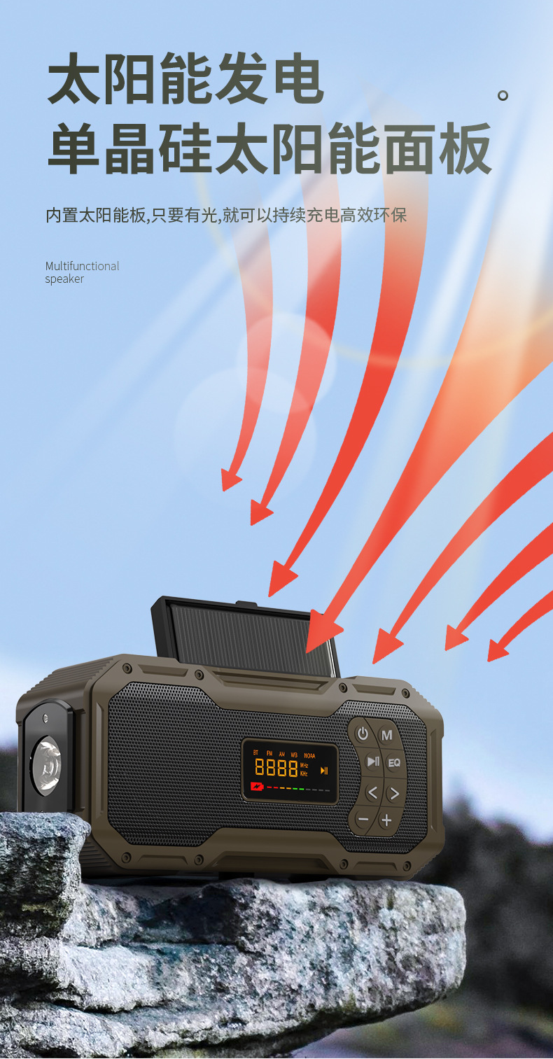 태양광 블루투스 스피커 다기능 야외 휴대용 캠핑 라이트 라디오 비상 충전식 손전등 오디오스토어 가기