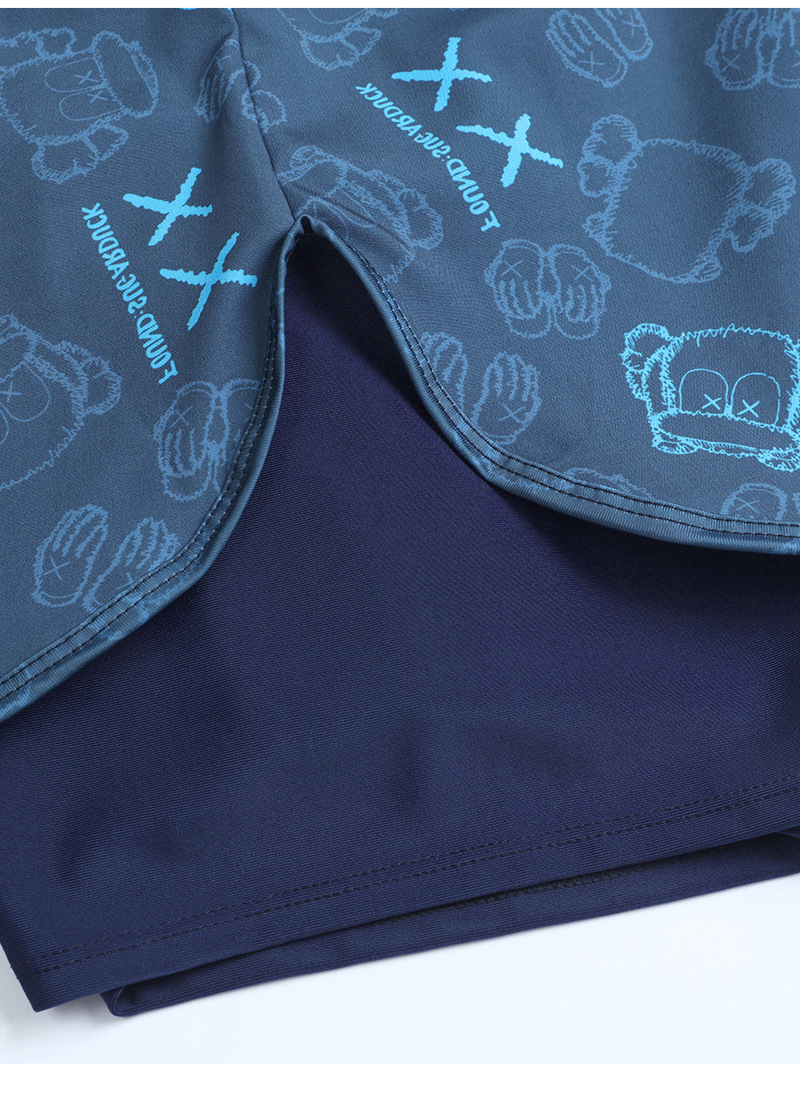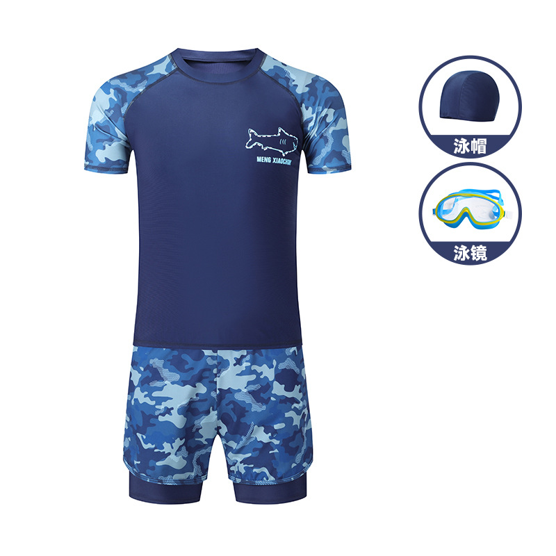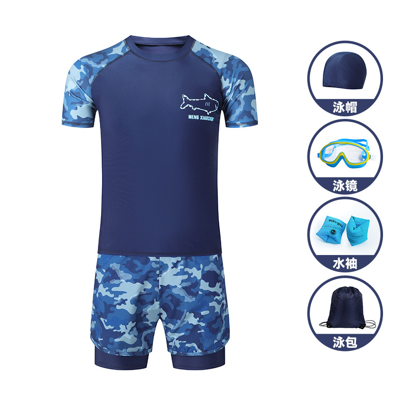 어린이 수영복 소년 해변 분할 신식 소년 수영복 미중 및 빅 키즈 10 대 더블 레이어 수영 트렁크 세트