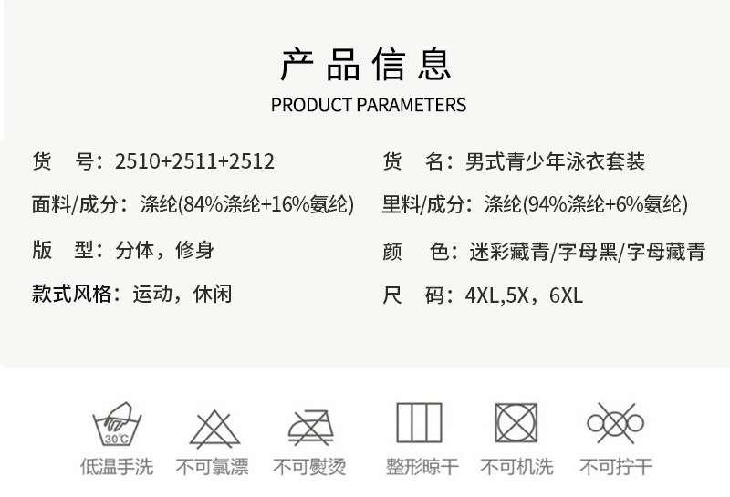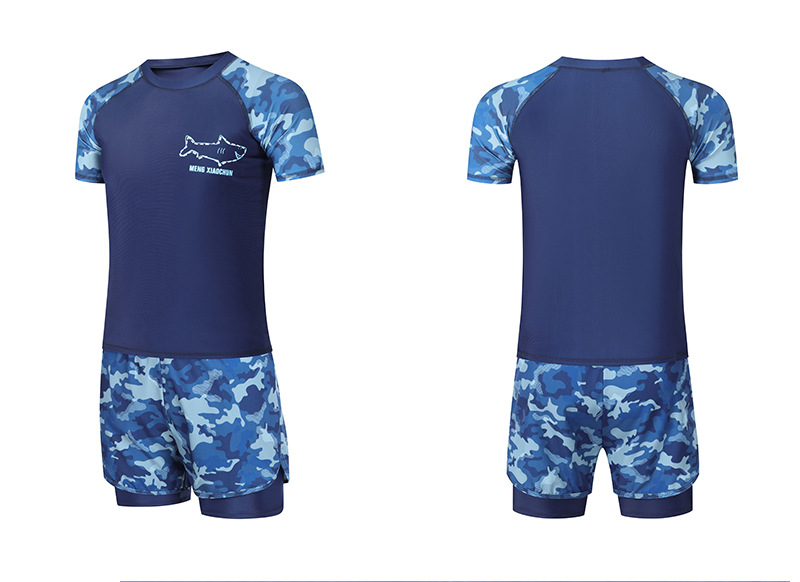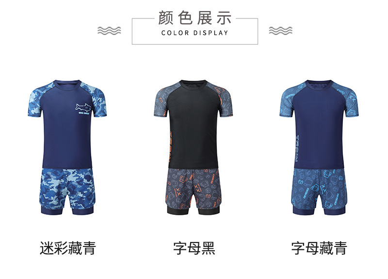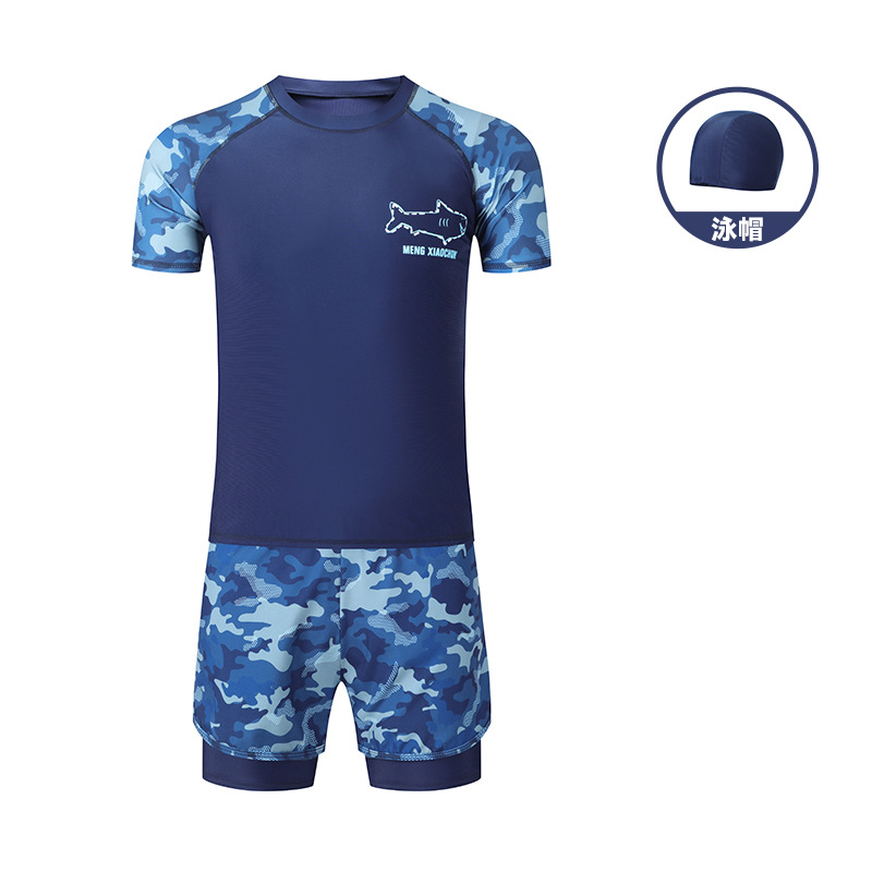 新款中大童分体儿童泳衣 青少年学生迷彩长袖防晒速干男童游泳衣