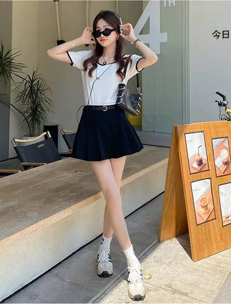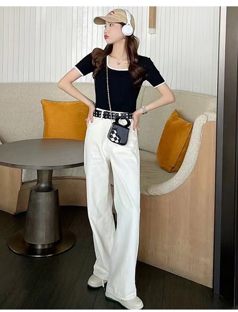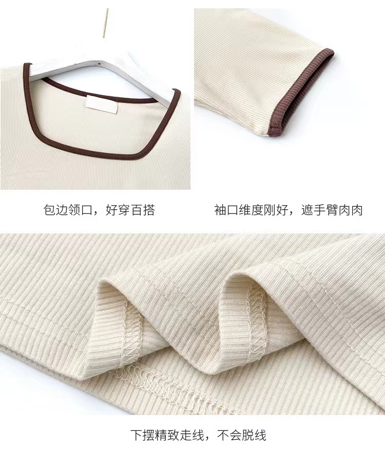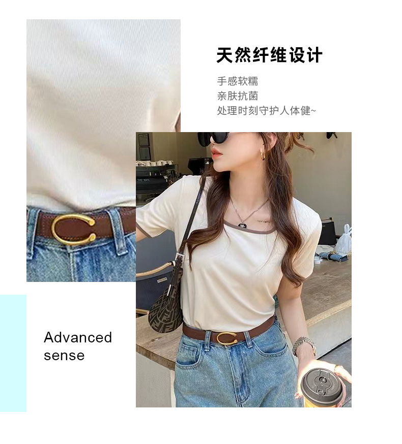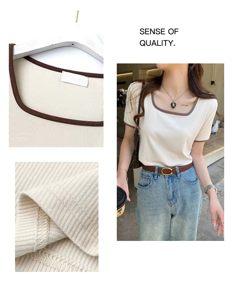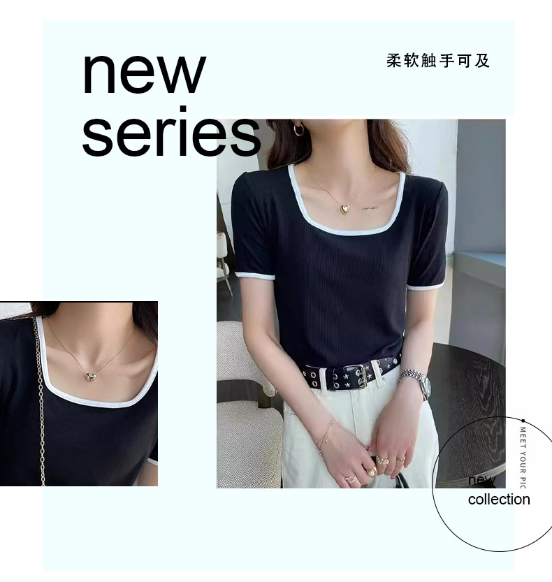 새로운 대비 색상 사각형 칼라 반팔 여성 티셔츠 대형 슬림 슬림 바닥 셔츠 탑 여성 여름 하이 엔드 감각