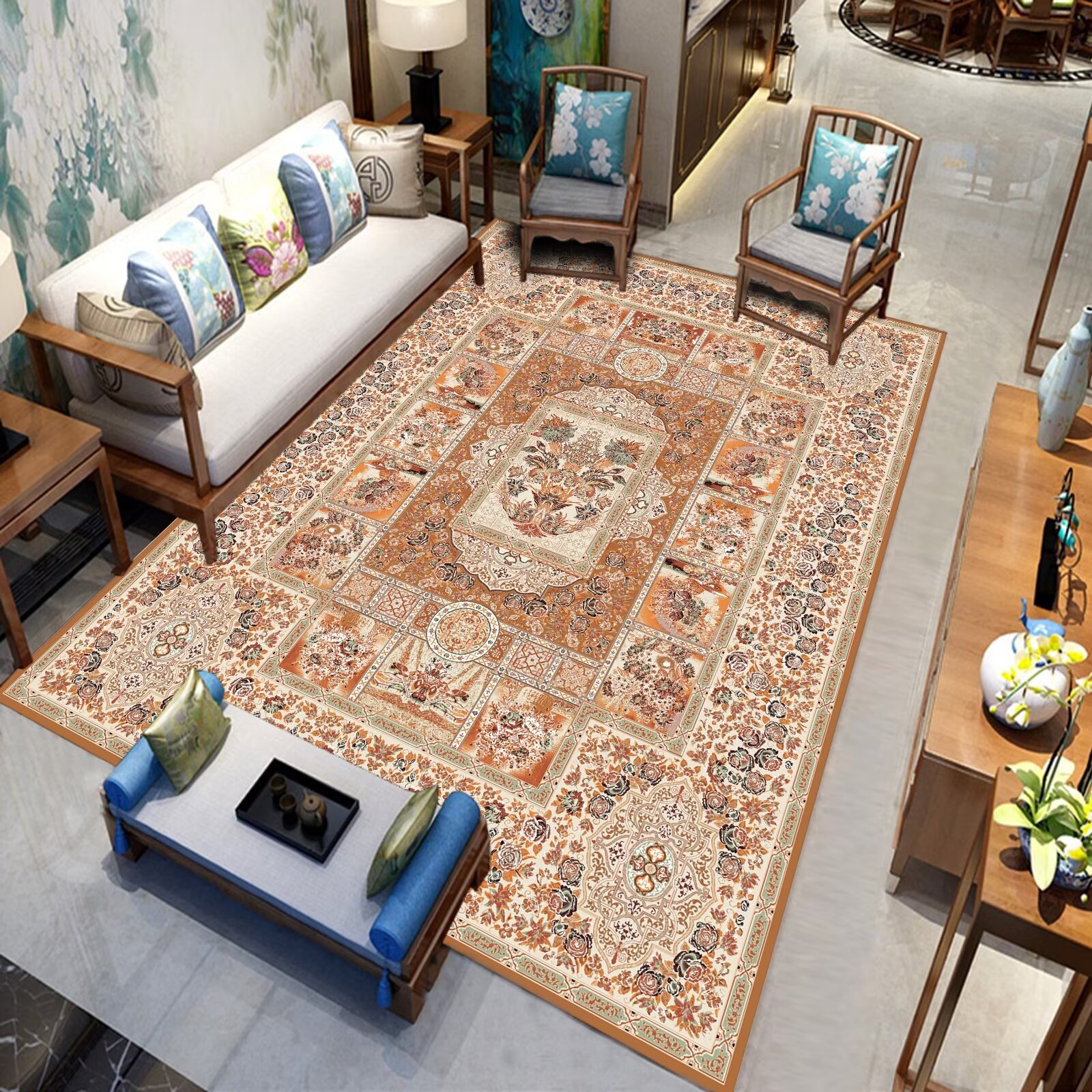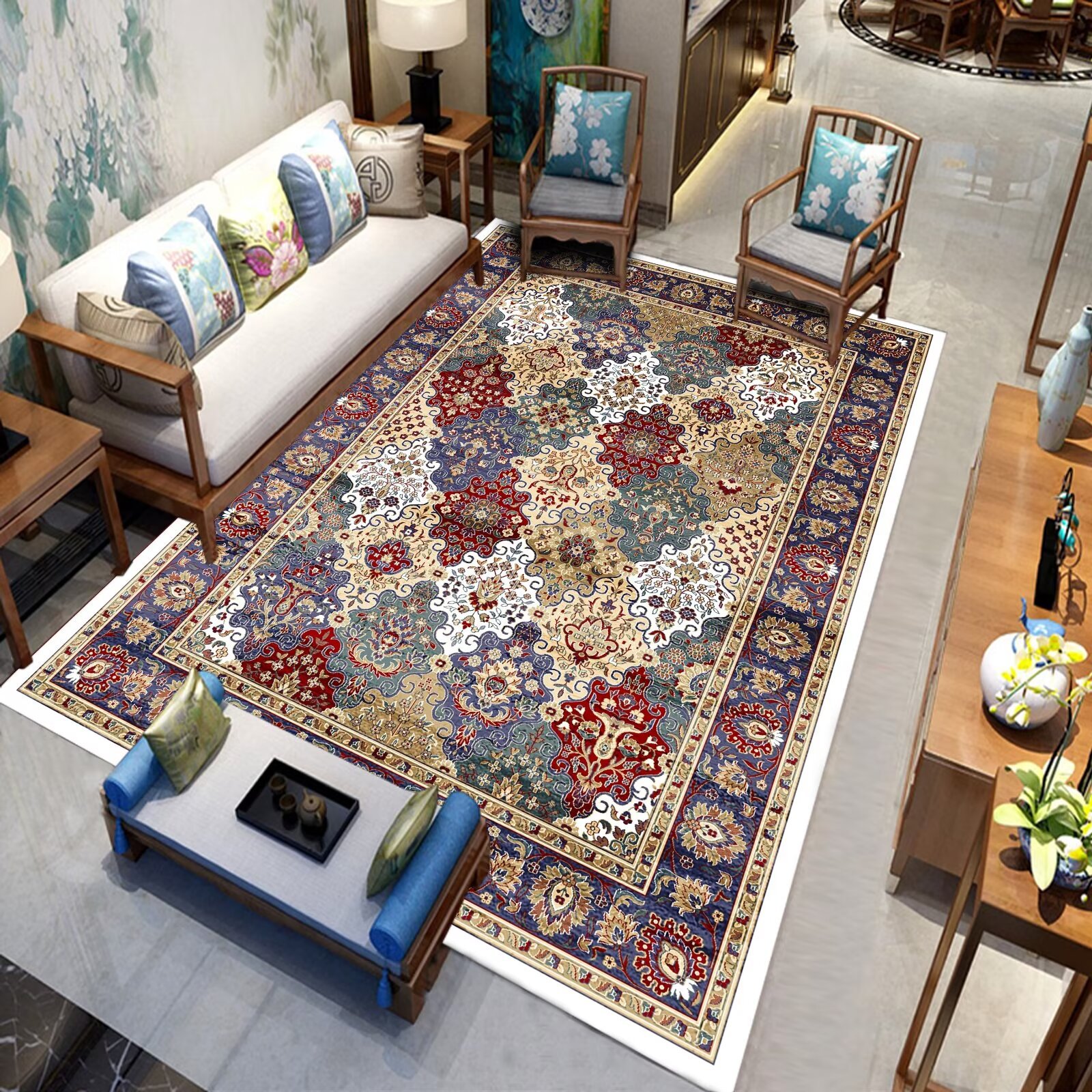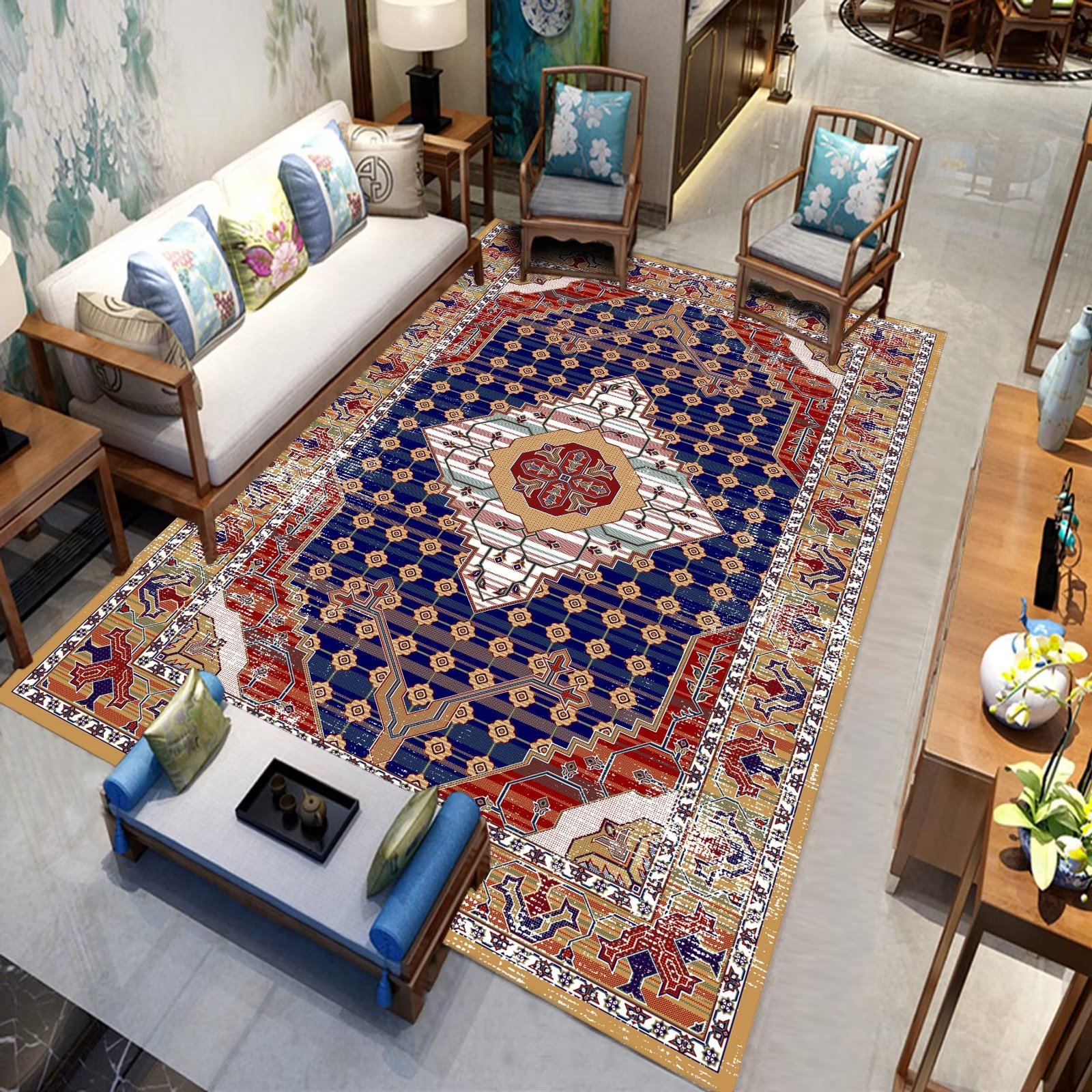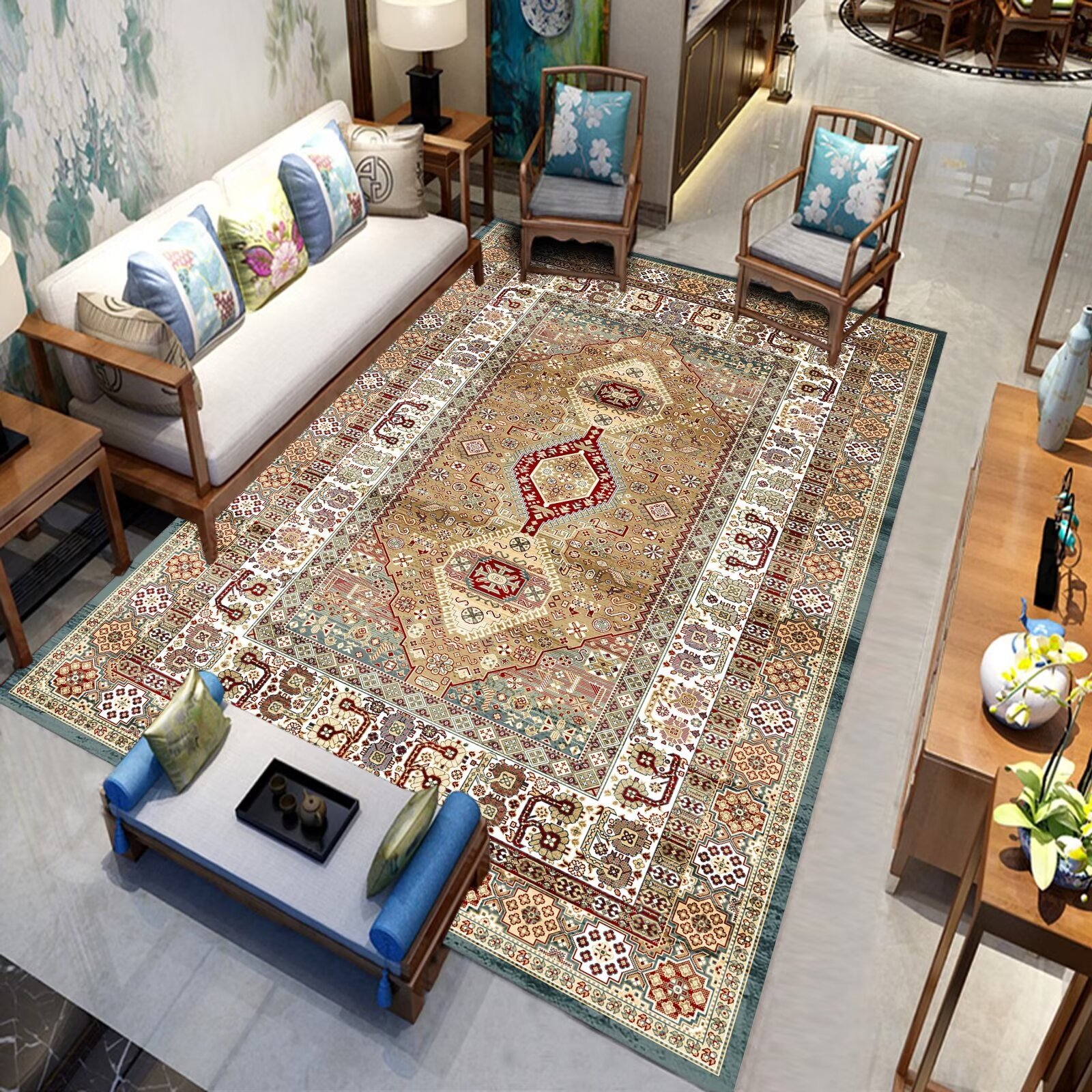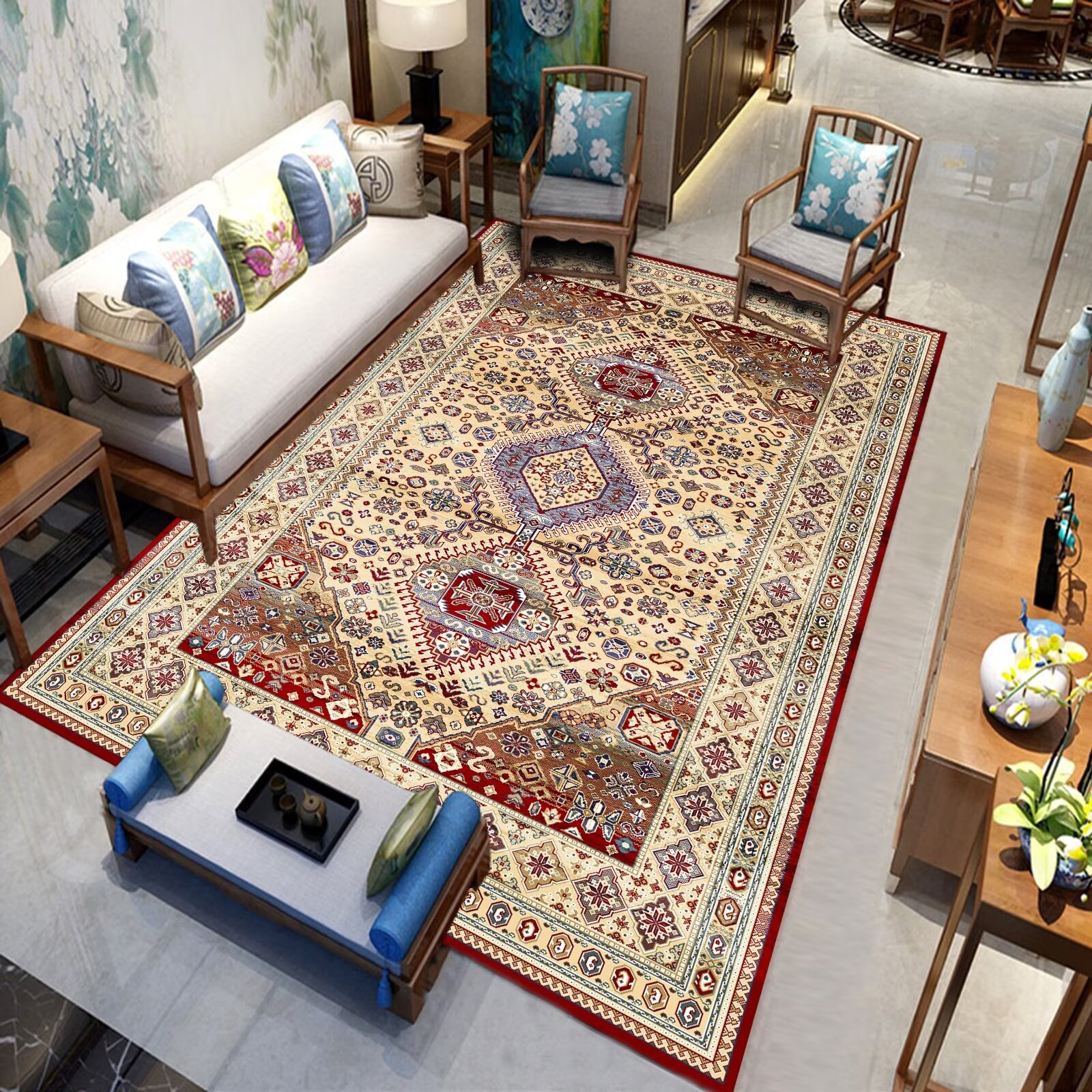 국경 간 미국 복고풍 거실 카펫 민족 페르시아 소파 커피 테이블 바닥 매트 침실 옆 담요 원피스 맞춤스토어 가기
