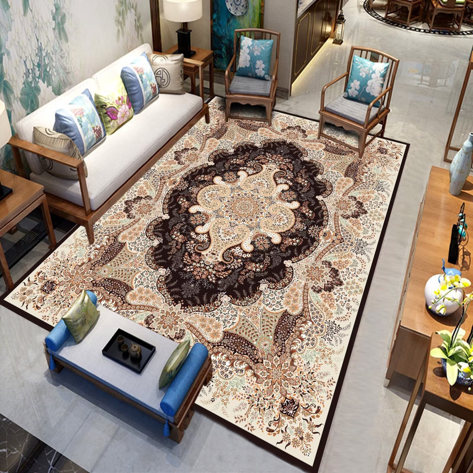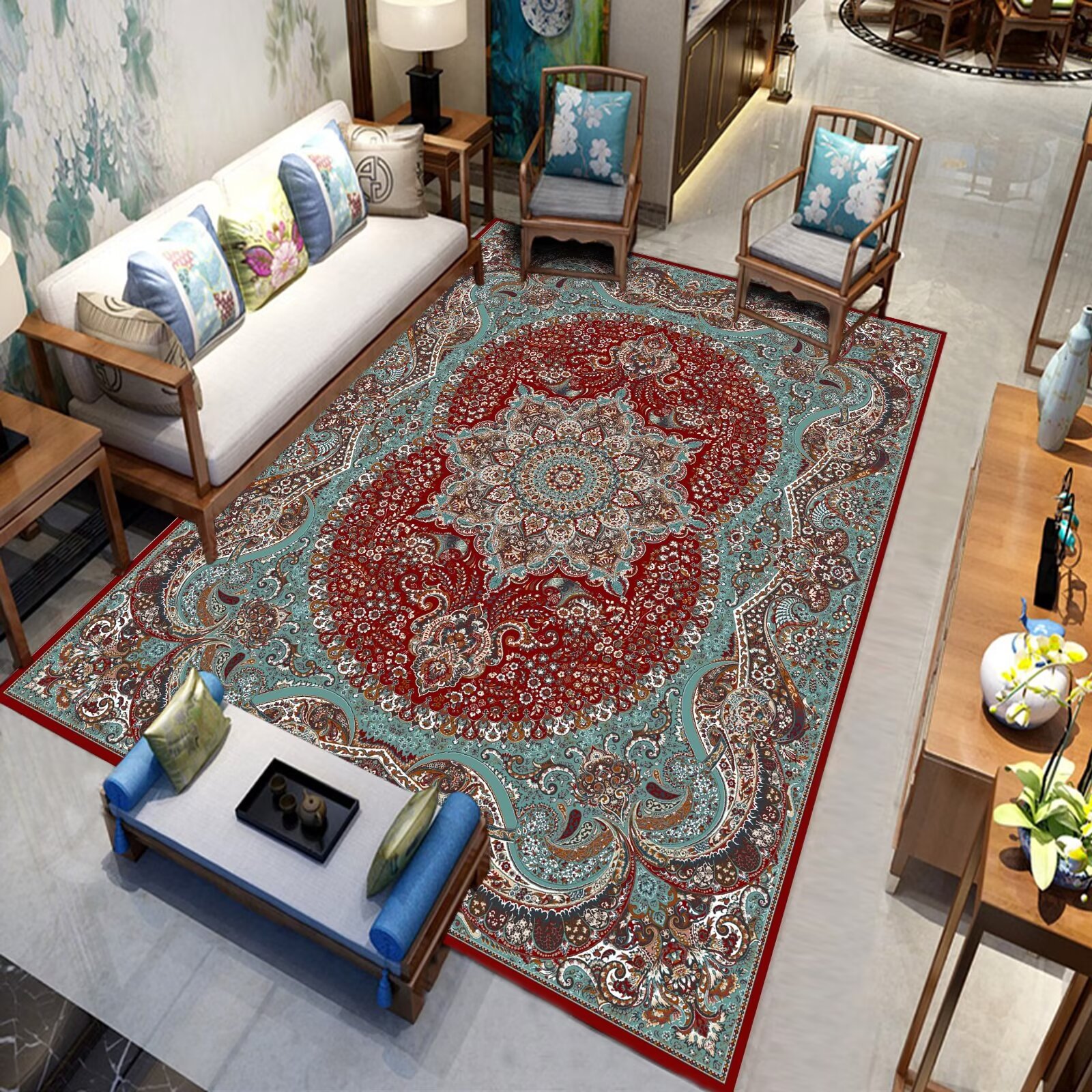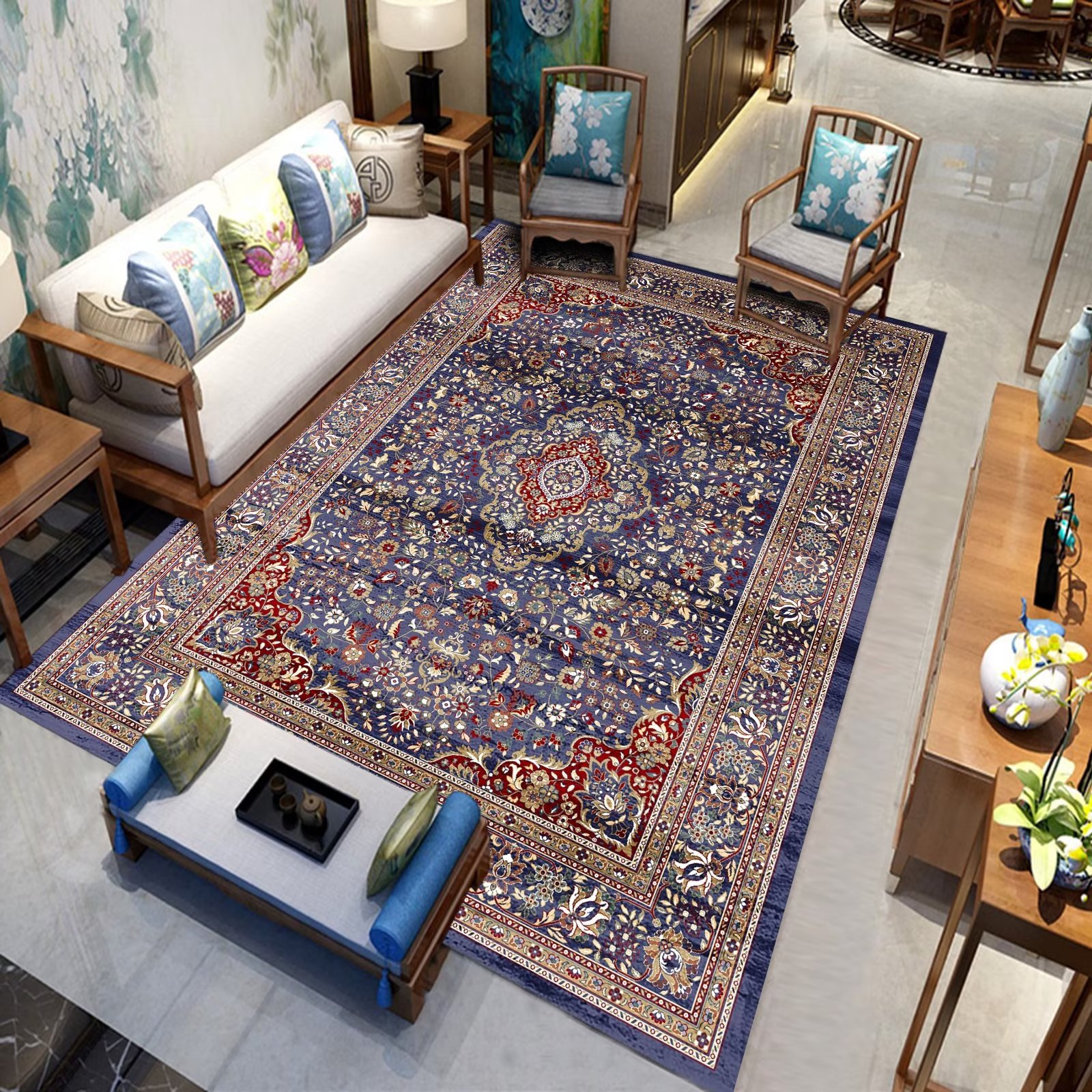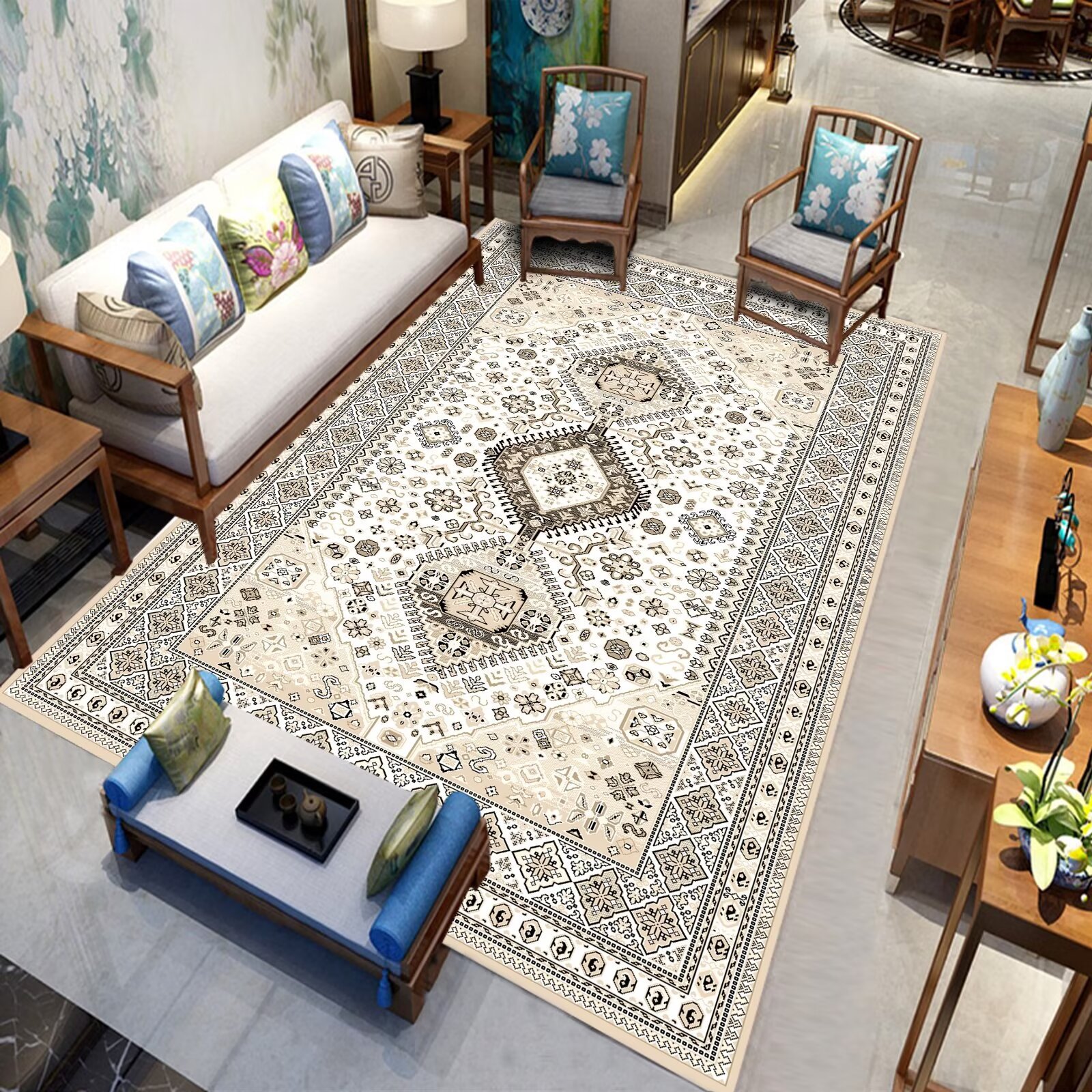 국경 간 미국 복고풍 거실 카펫 민족 페르시아 소파 커피 테이블 바닥 매트 침실 옆 담요 원피스 맞춤스토어 가기