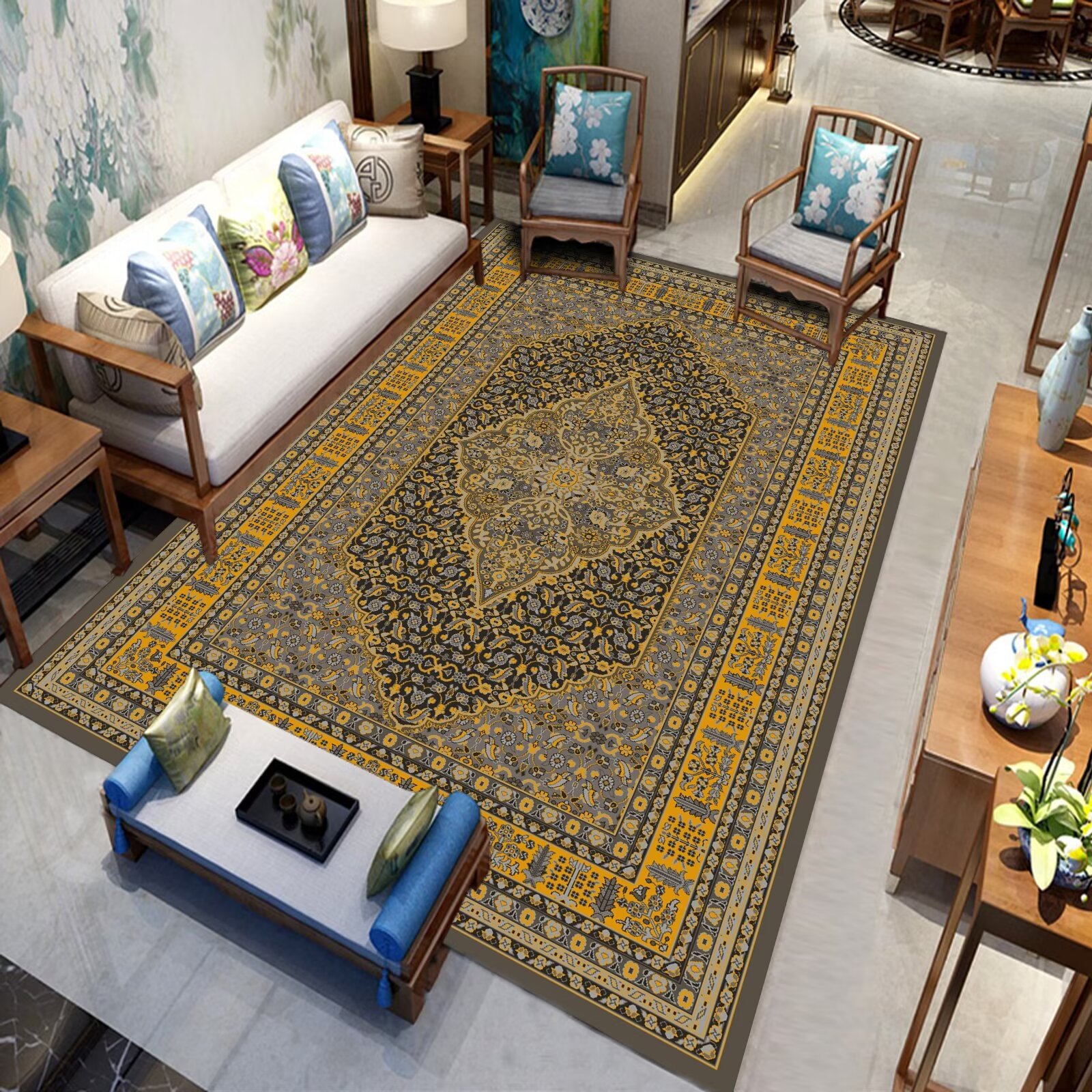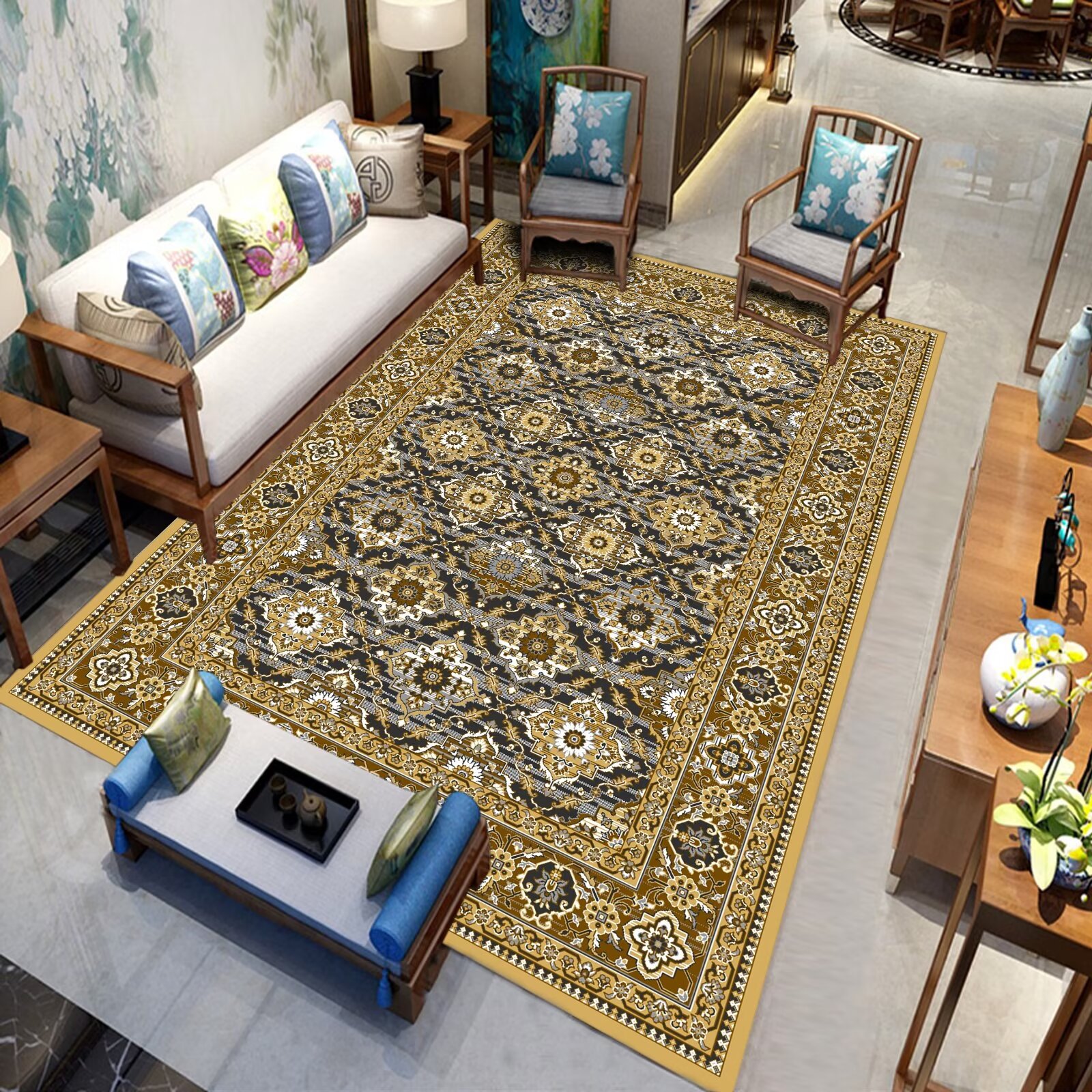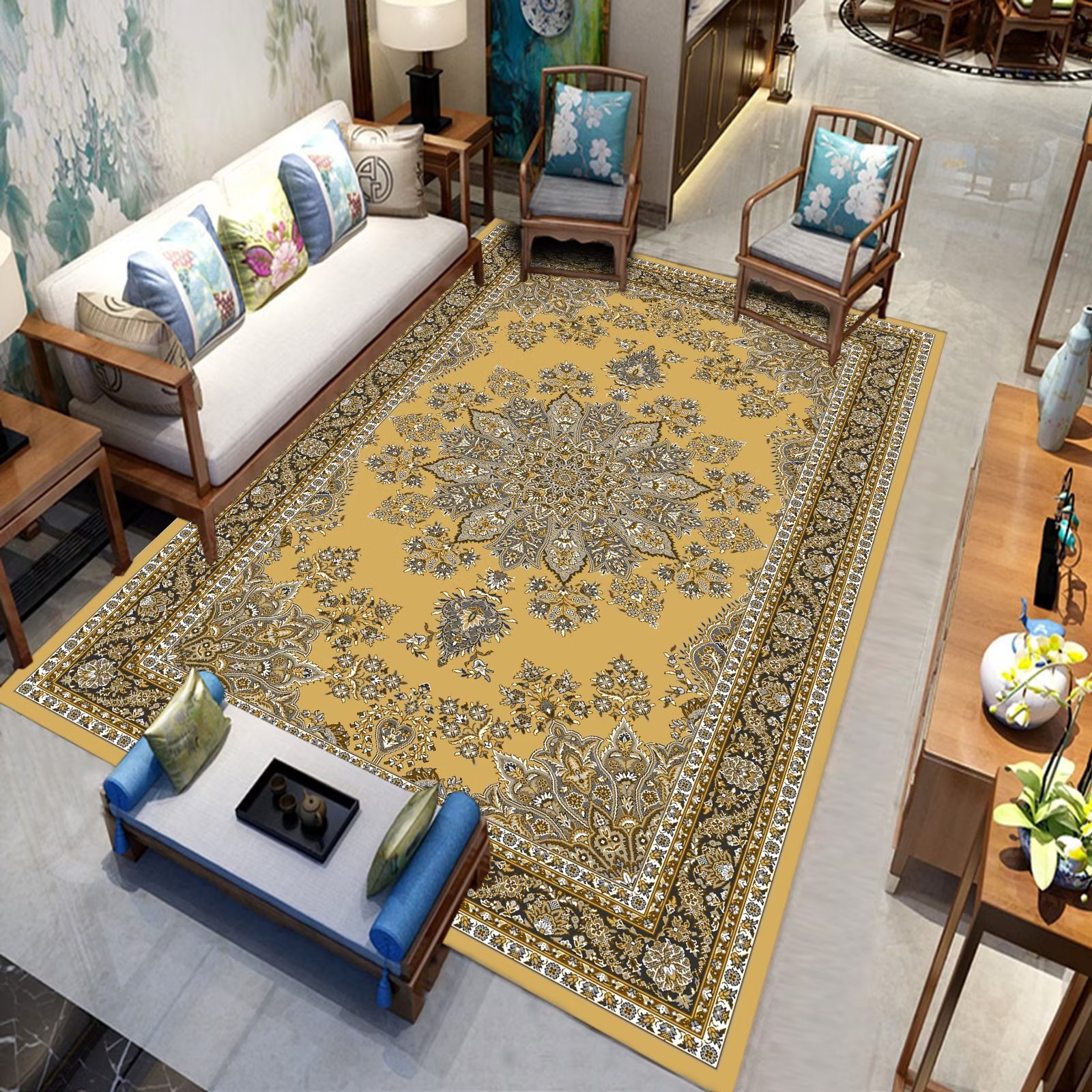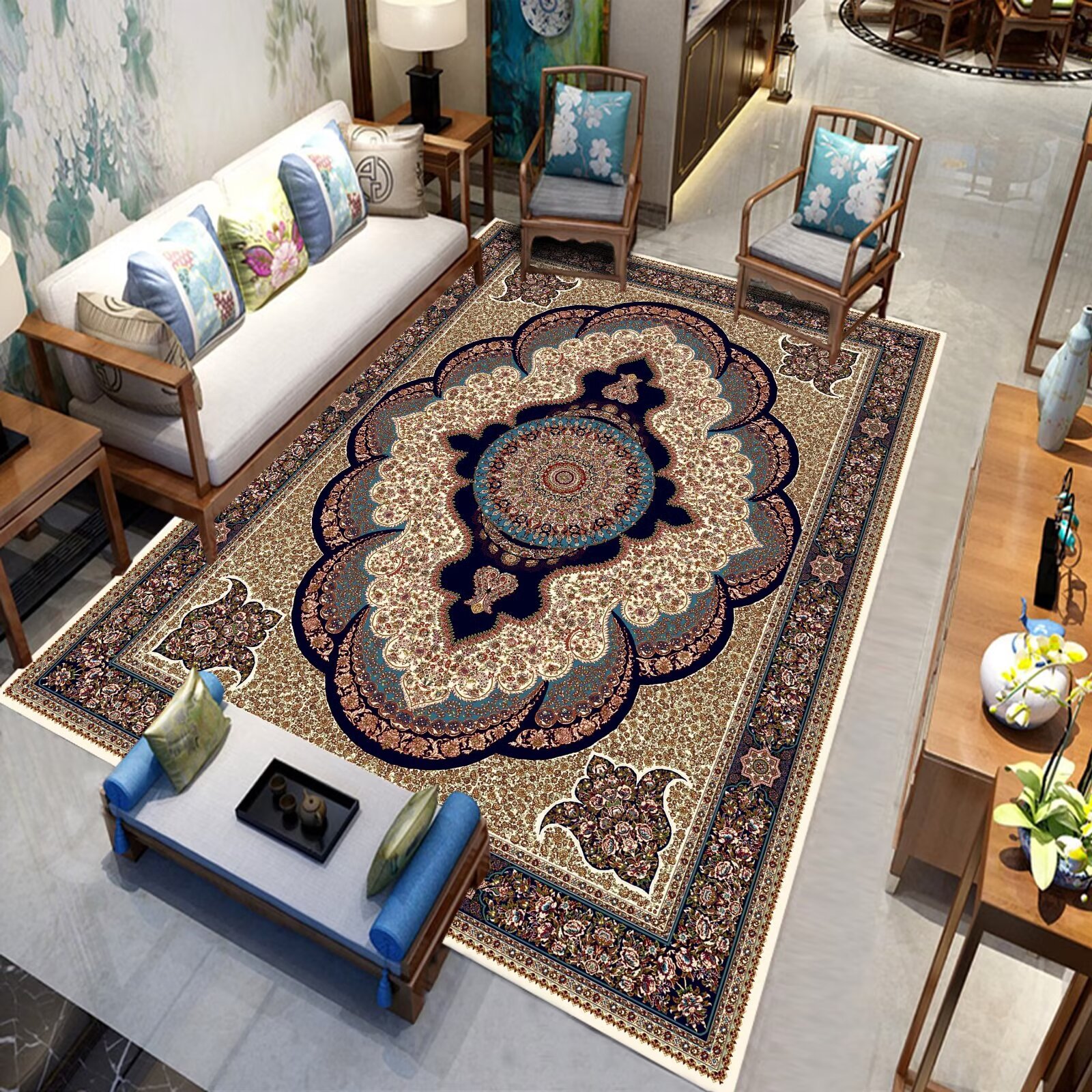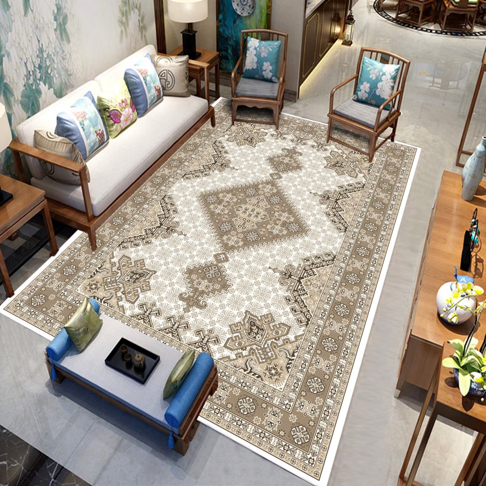 국경 간 미국 복고풍 거실 카펫 민족 페르시아 소파 커피 테이블 바닥 매트 침실 옆 담요 원피스 맞춤스토어 가기