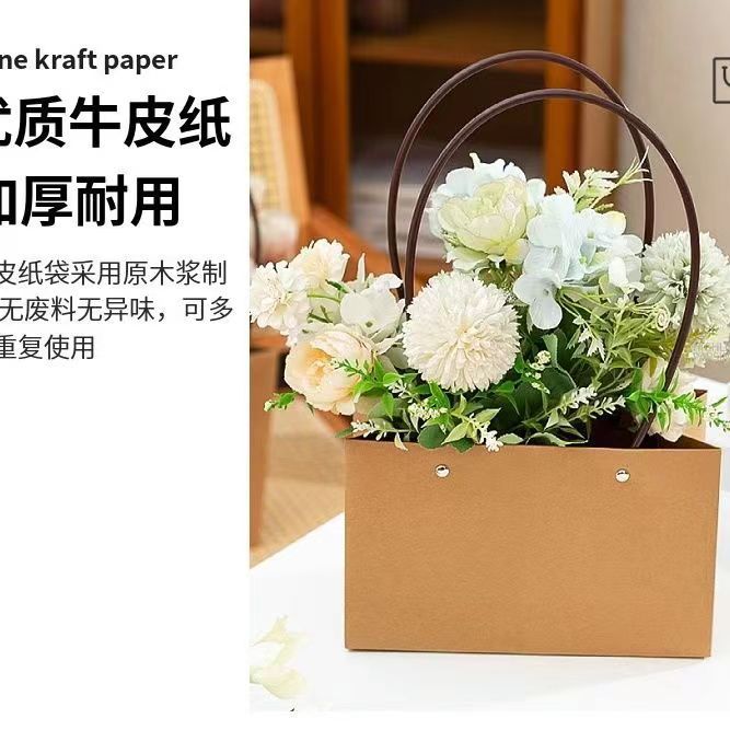 크라프트 종이 핸드백 방수 포장 꽃꽂이 가방 기념품 선물 가방 대용량 크라프트 종이 꽃 핸드백스토어 가기