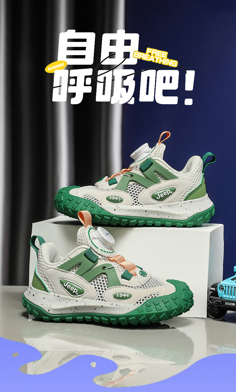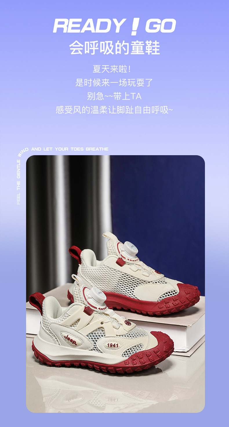 지프 어린이 신발 여름 새 소년 스위블 버클 운동화 2024 메쉬 통기성 여성 신발 라이트 소프트 솔스토어 가기